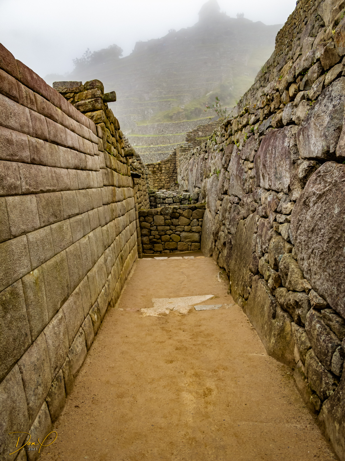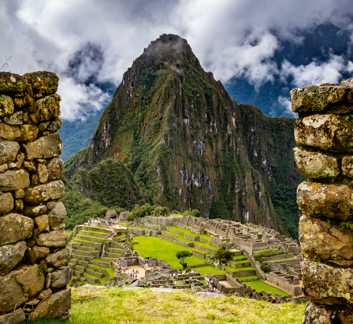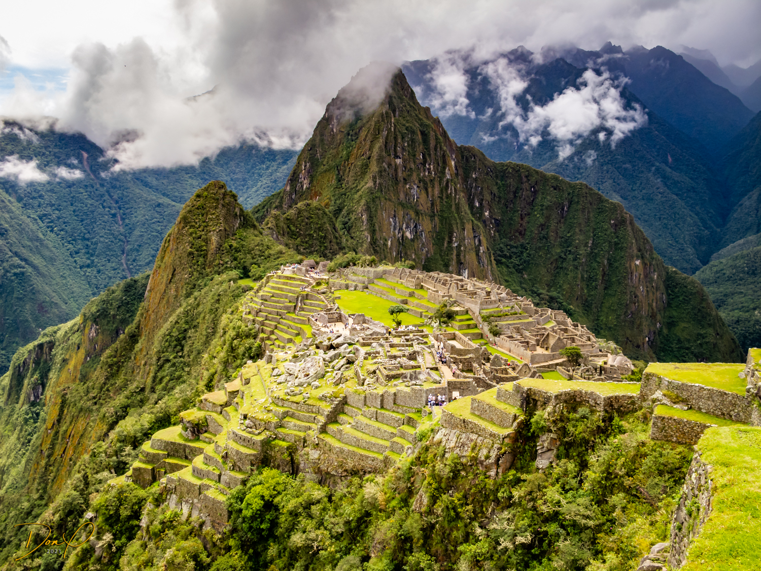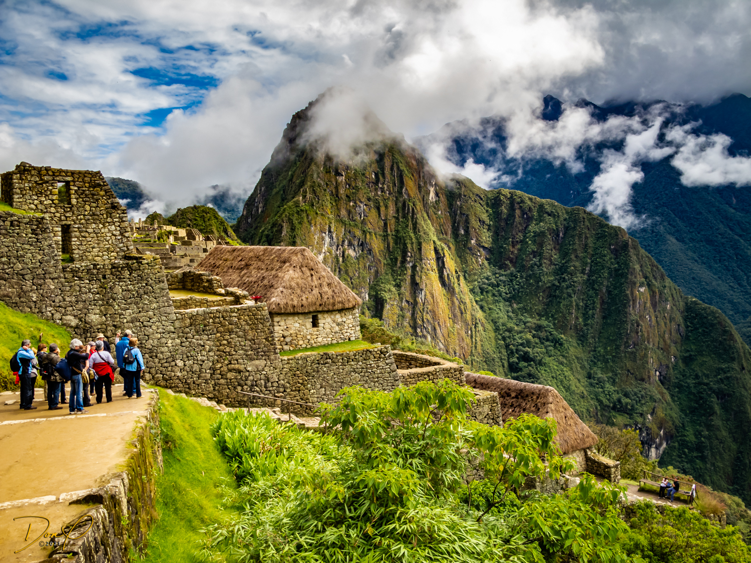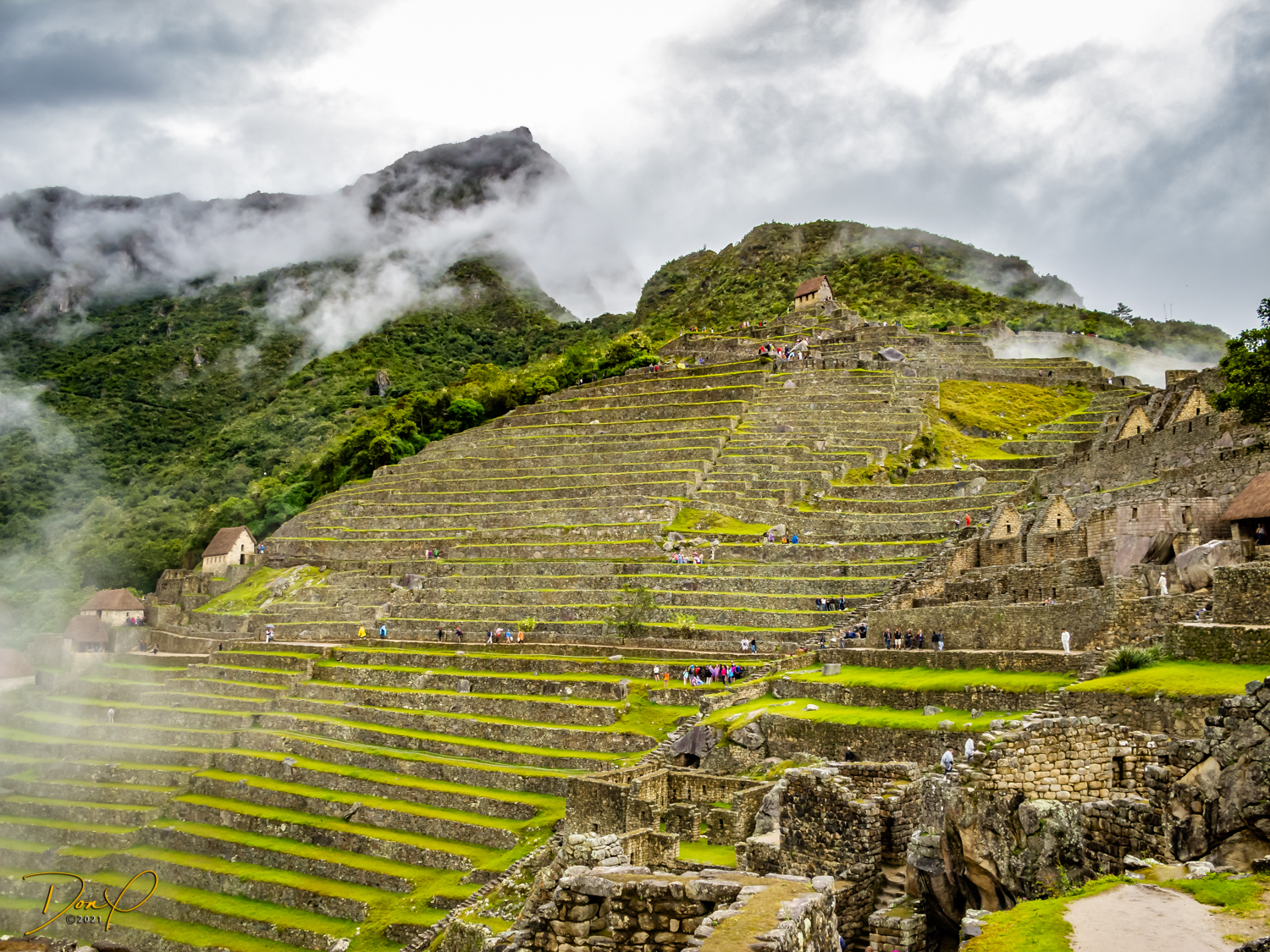 So we get into Machu Picchu about 9 AM, take a few sunlit photos of the place and head for the back where there is a shelter with a roof on it where you wait to enter. Waynu Picchu has two entry times. 10 AM and 2 PM. We have tickets for 10 AM. Only 200 people can enter at each time slot and we had to buy these special passes 6 months ago. They sell out.