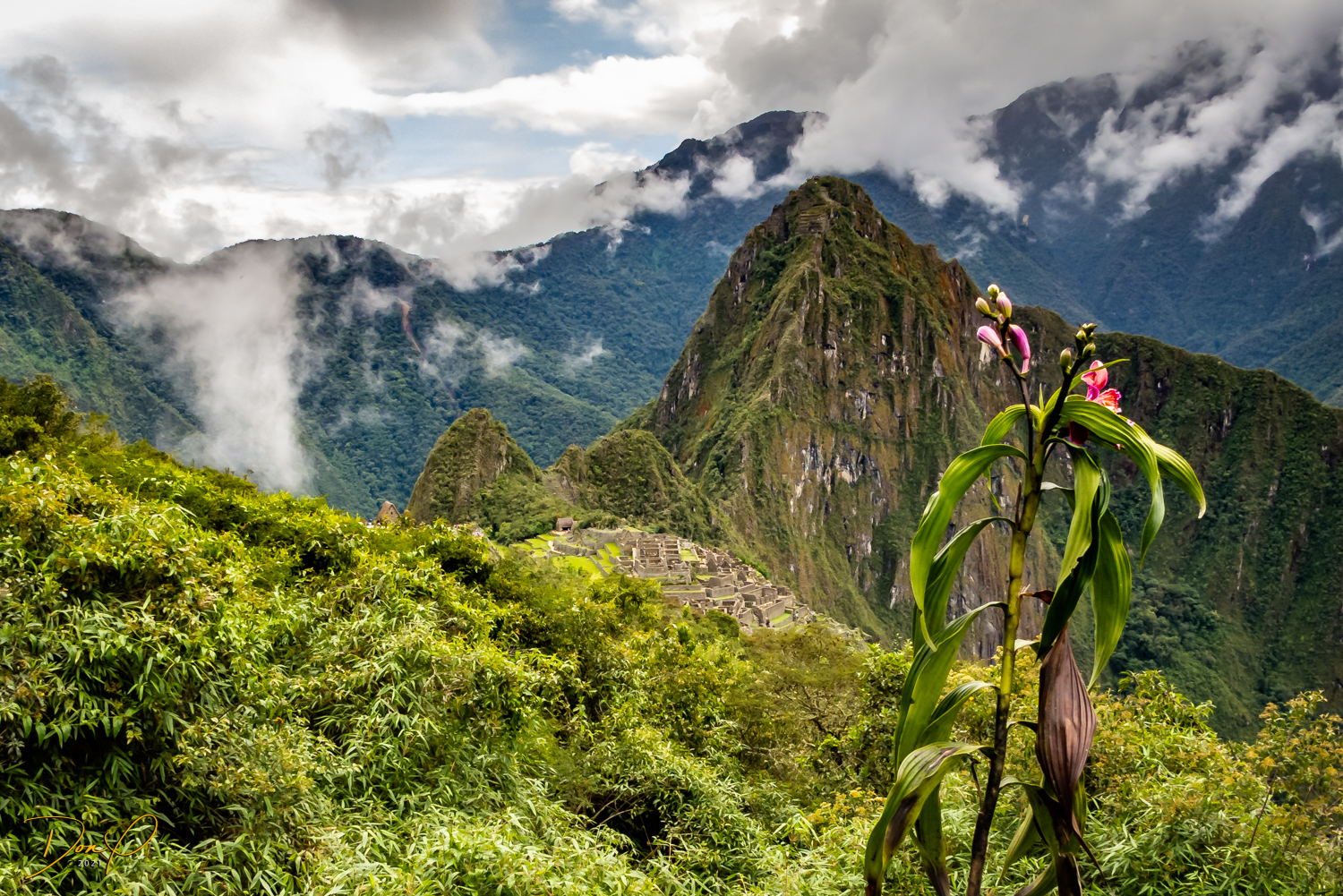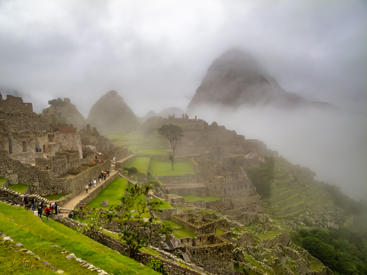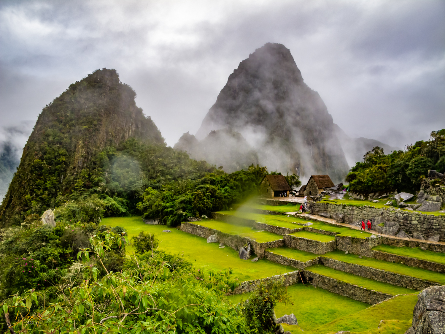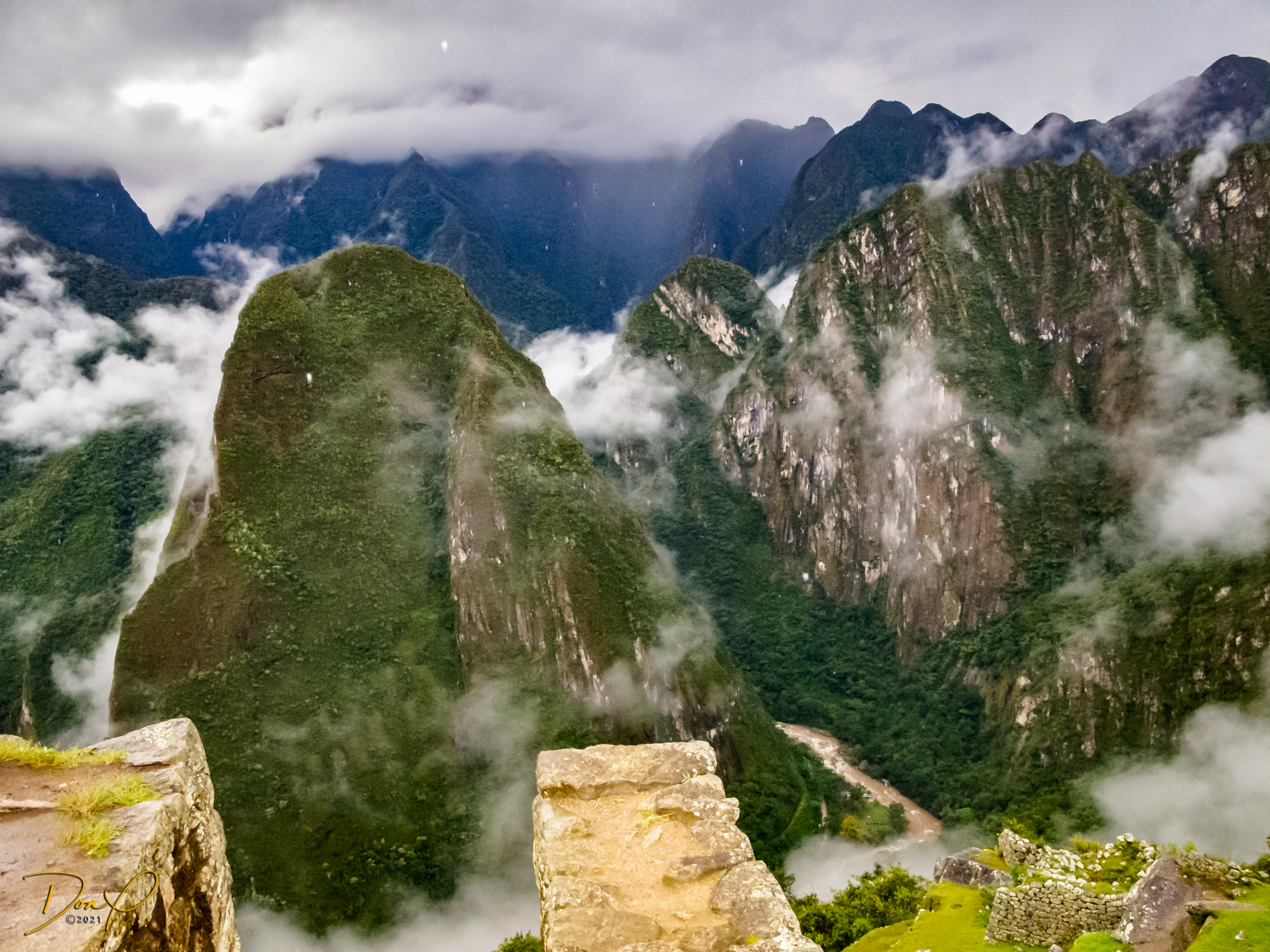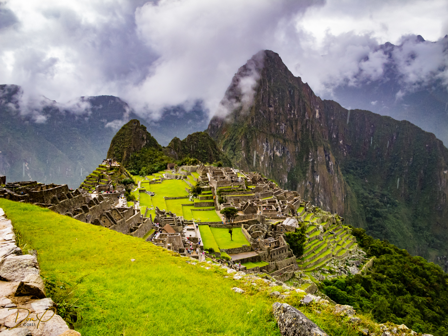 So we get into Machu Picchu about 9 AM, take a few sunlit photos of the place and head for the back where there is a shelter with a roof on it where you wait to enter. Waynu Picchu has two entry times. 10 AM and 2 PM. We have tickets for 10 AM. Only 200 people can enter at each time slot and we had to buy these special passes 6 months ago. They sell out.