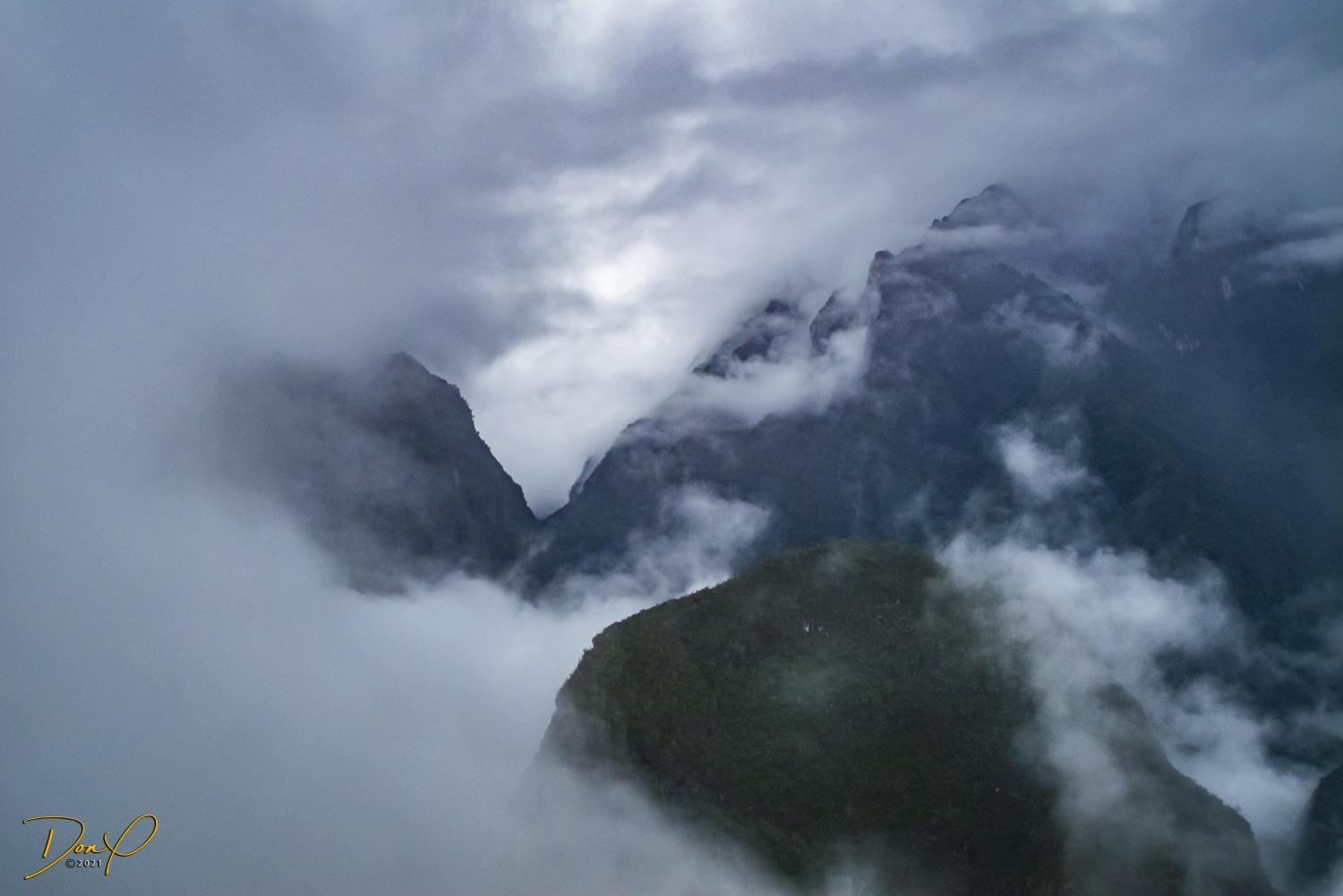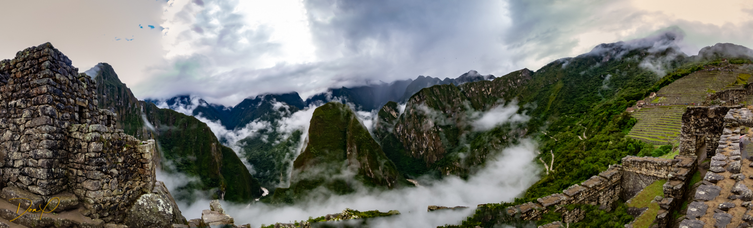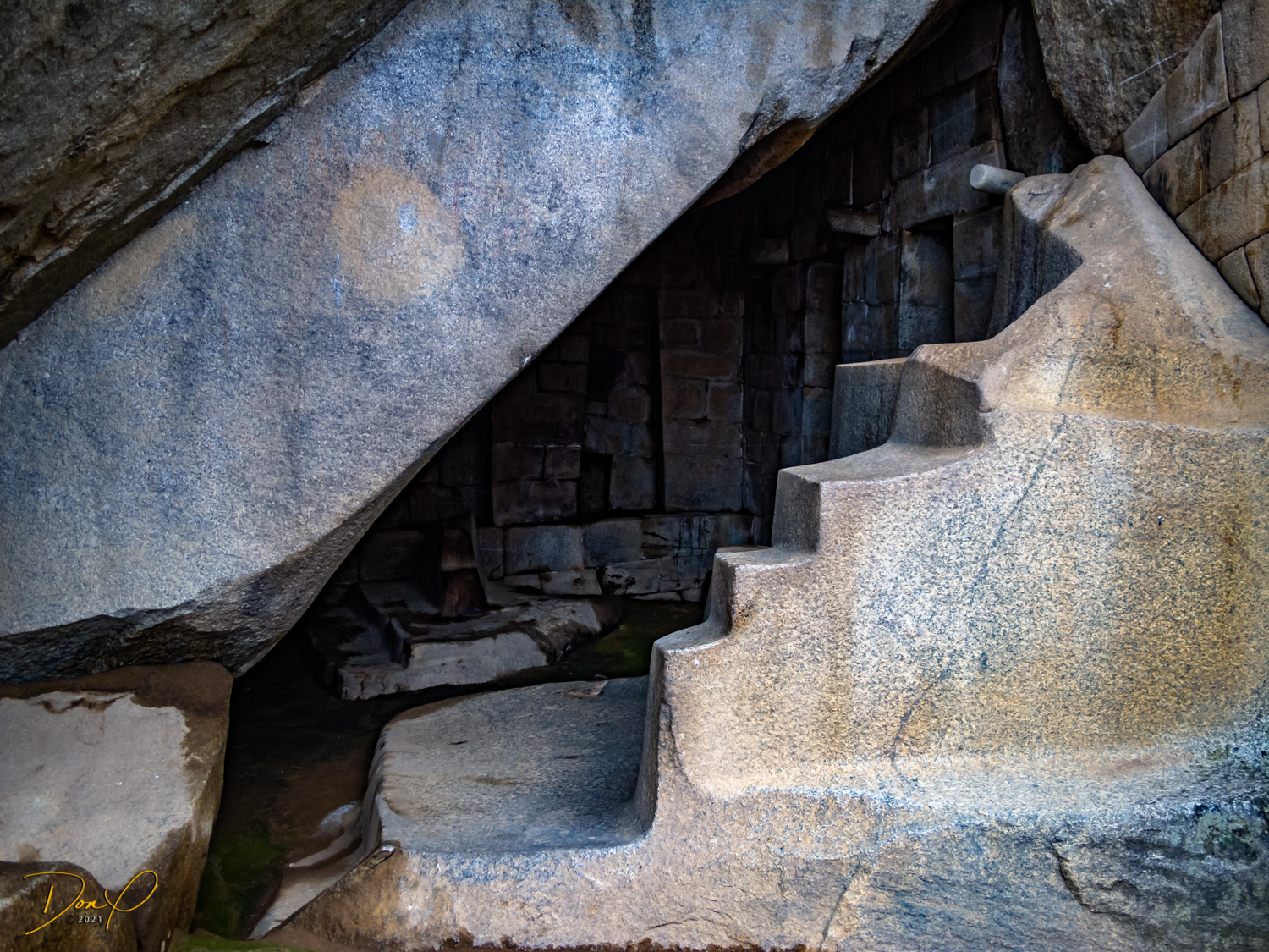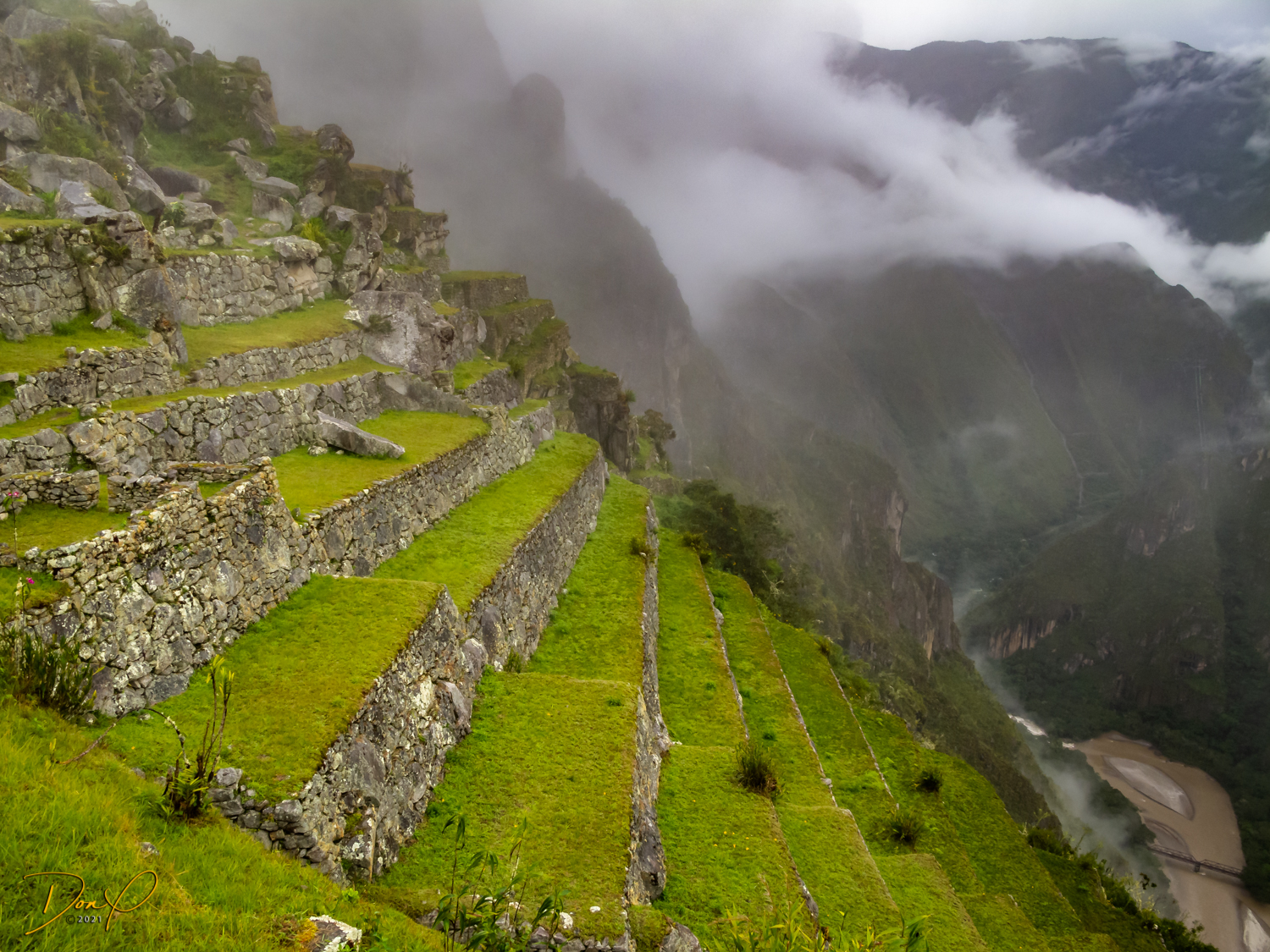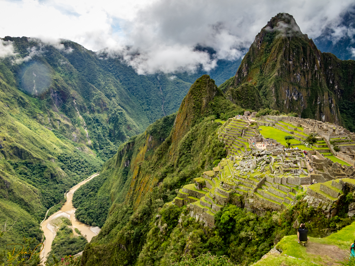 So we get into Machu Picchu about 9 AM, take a few sunlit photos of the place and head for the back where there is a shelter with a roof on it where you wait to enter. Waynu Picchu has two entry times. 10 AM and 2 PM. We have tickets for 10 AM. Only 200 people can enter at each time slot and we had to buy these special passes 6 months ago. They sell out.