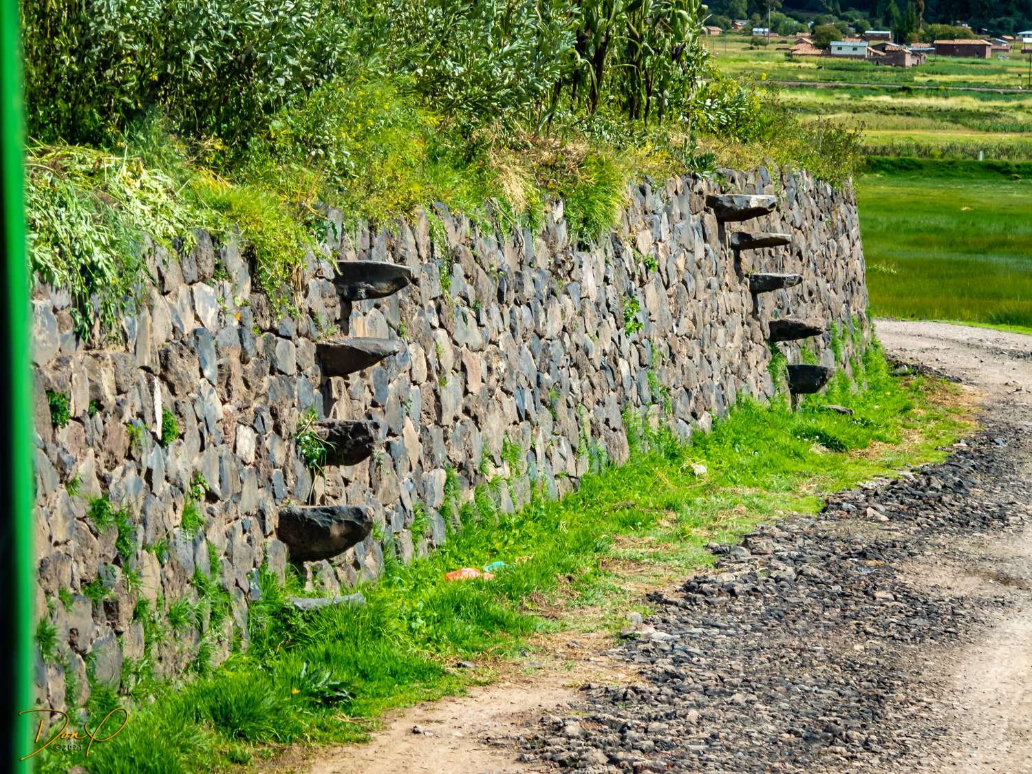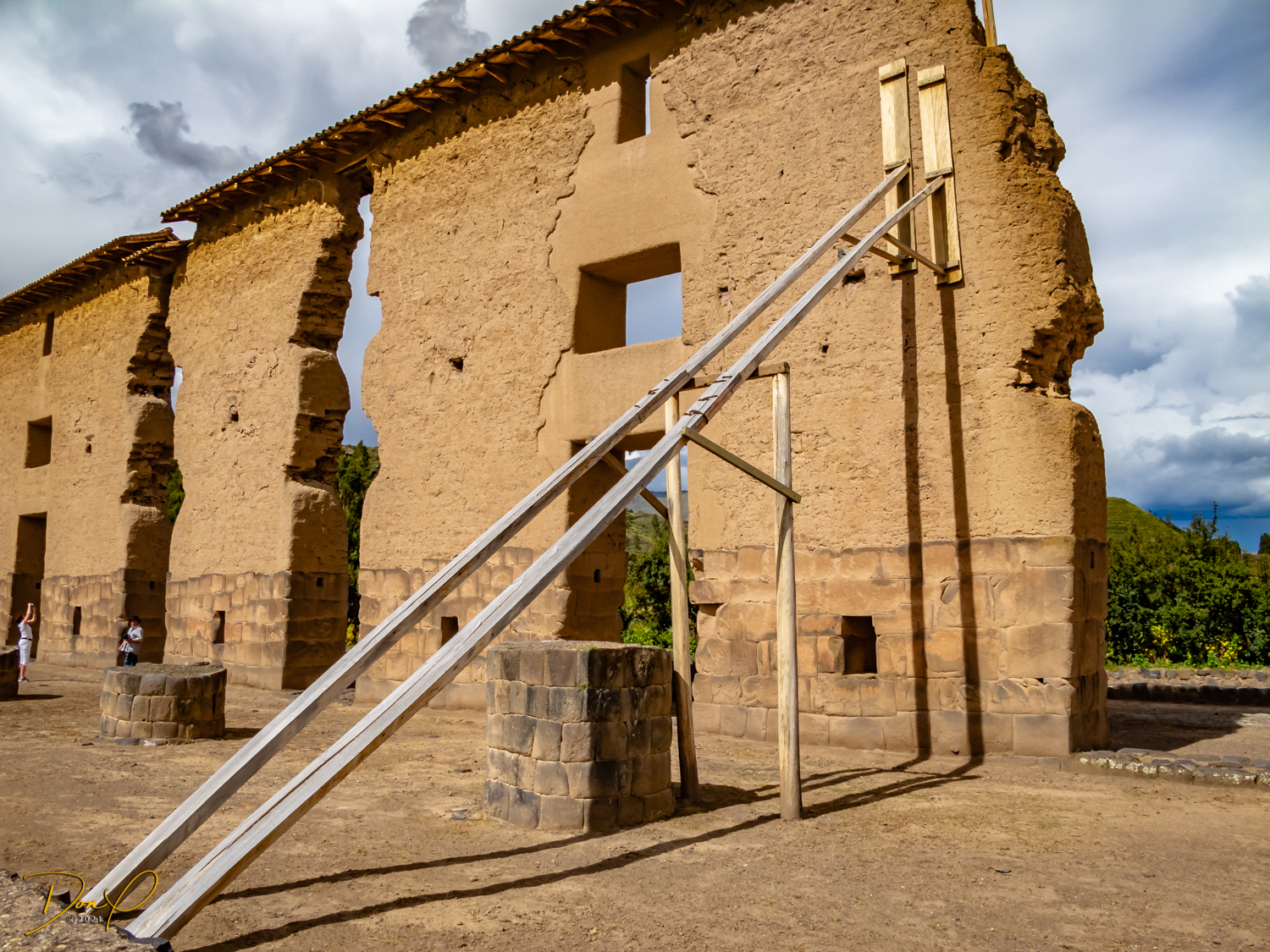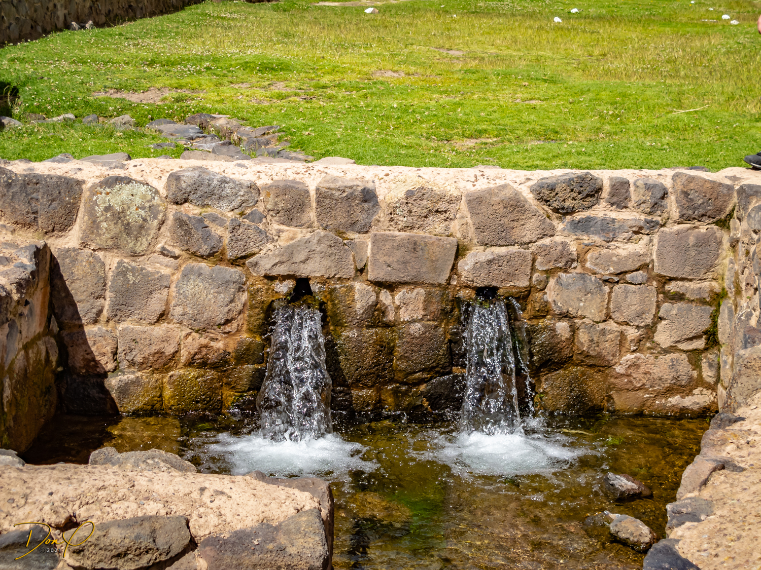 We arrive at the Temple of Wiracoccha in Raqchi. This is one of the largest archaeological sites in Peru. The Spaniards destroyed most of it and built their own Catholic Church on the site. It is not known the full reasons for this site but it is speculated it was a barracks for the Inca soldiers. The Temple was the largest roof in the Inca empire. It was 302 feet by 84 feet. (92 meters by 25.5 meters). Some ingenious designs such as stair steps as depicted in the first photo were just an example of Inca brilliance. Custom water systems were an Inca staple.