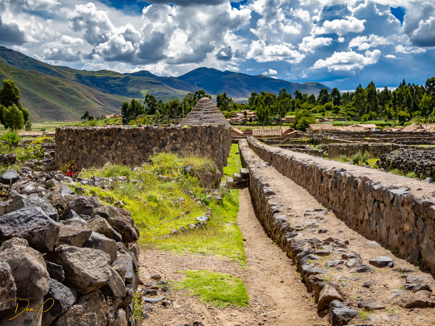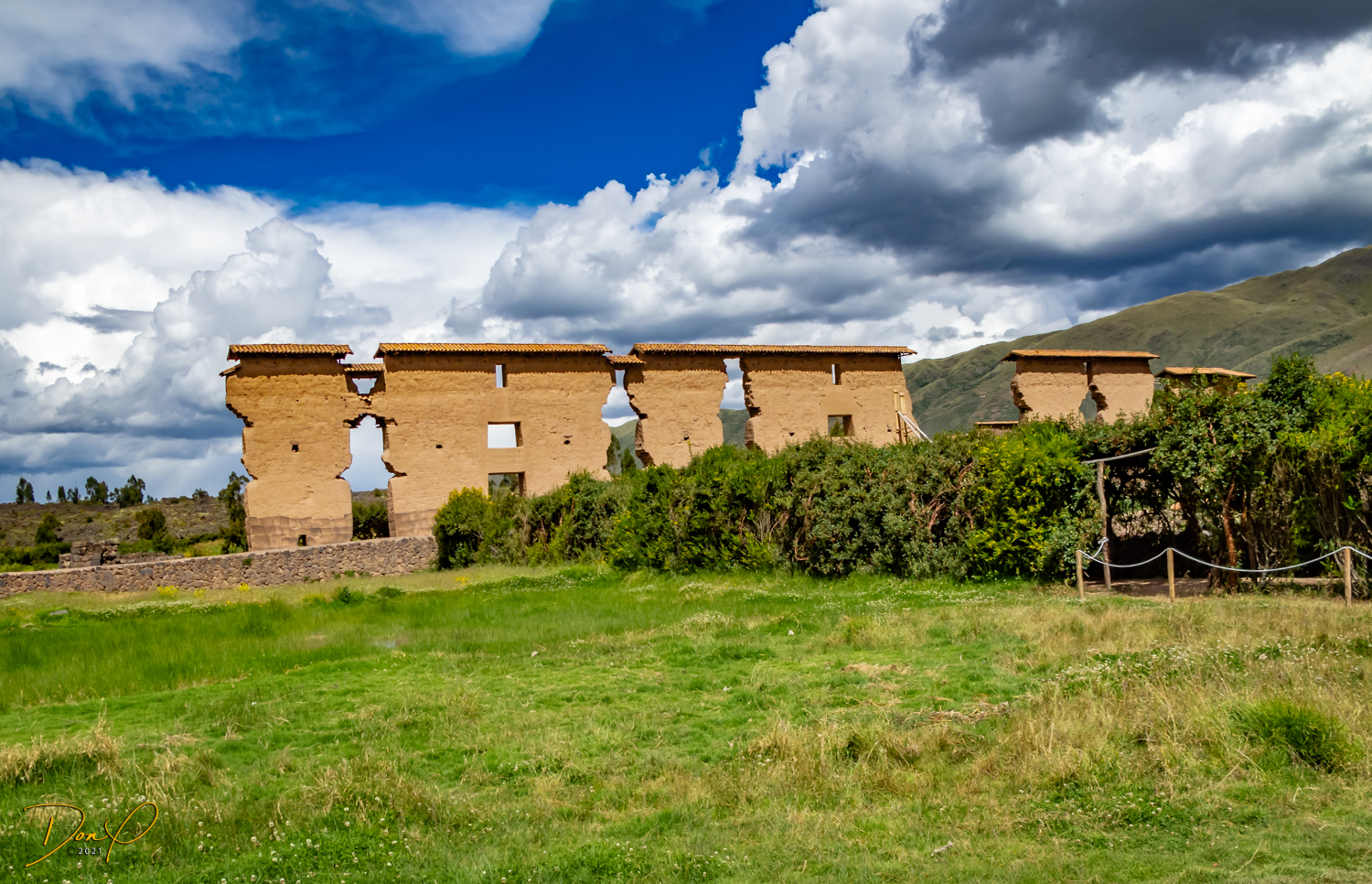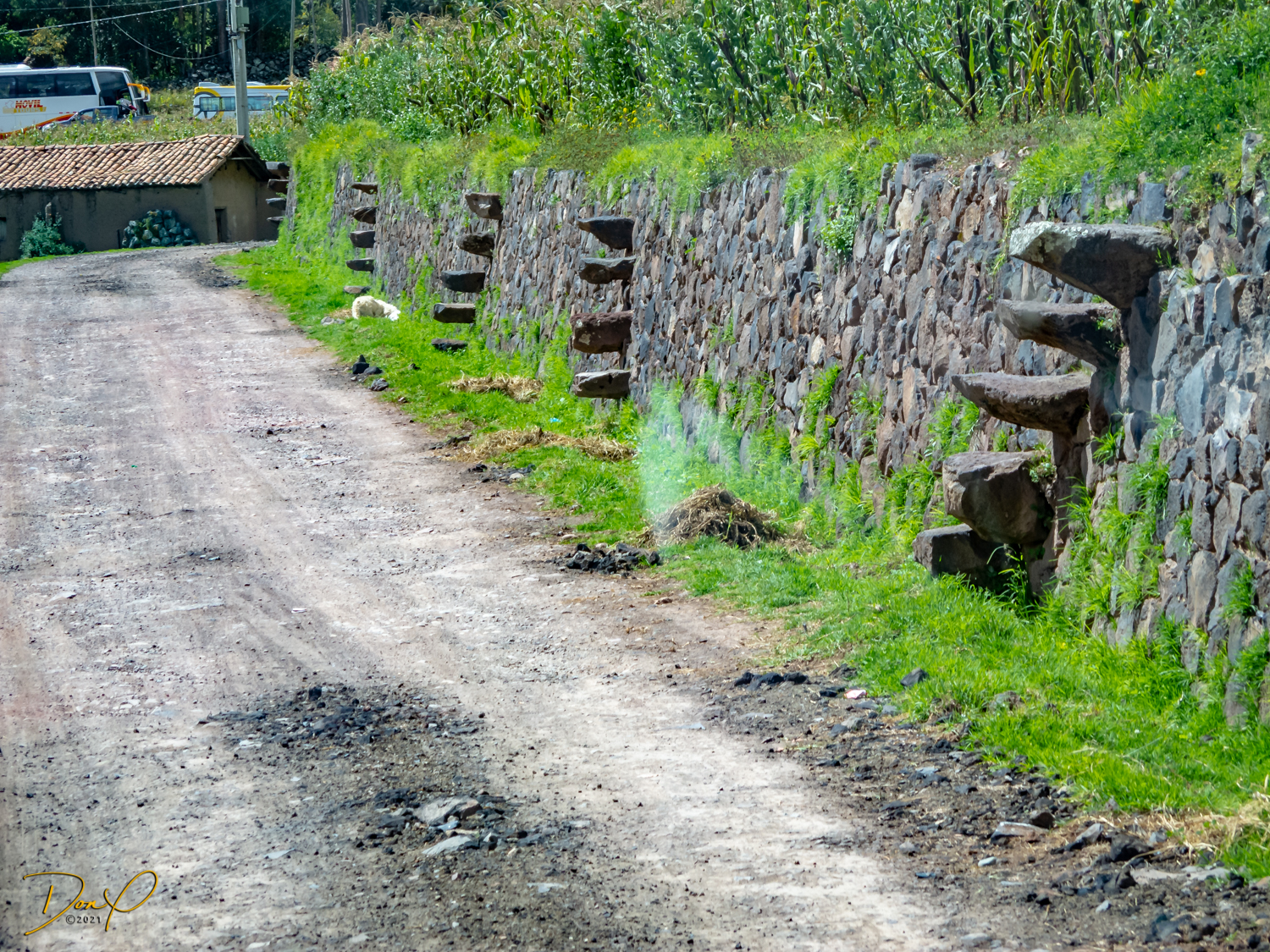 We arrive at the Temple of Wiracoccha in Raqchi. This is one of the largest archaeological sites in Peru. The Spaniards destroyed most of it and built their own Catholic Church on the site. It is not known the full reasons for this site but it is speculated it was a barracks for the Inca soldiers. The Temple was the largest roof in the Inca empire. It was 302 feet by 84 feet. (92 meters by 25.5 meters). Some ingenious designs such as stair steps as depicted in the first photo were just an example of Inca brilliance. Custom water systems were an Inca staple.