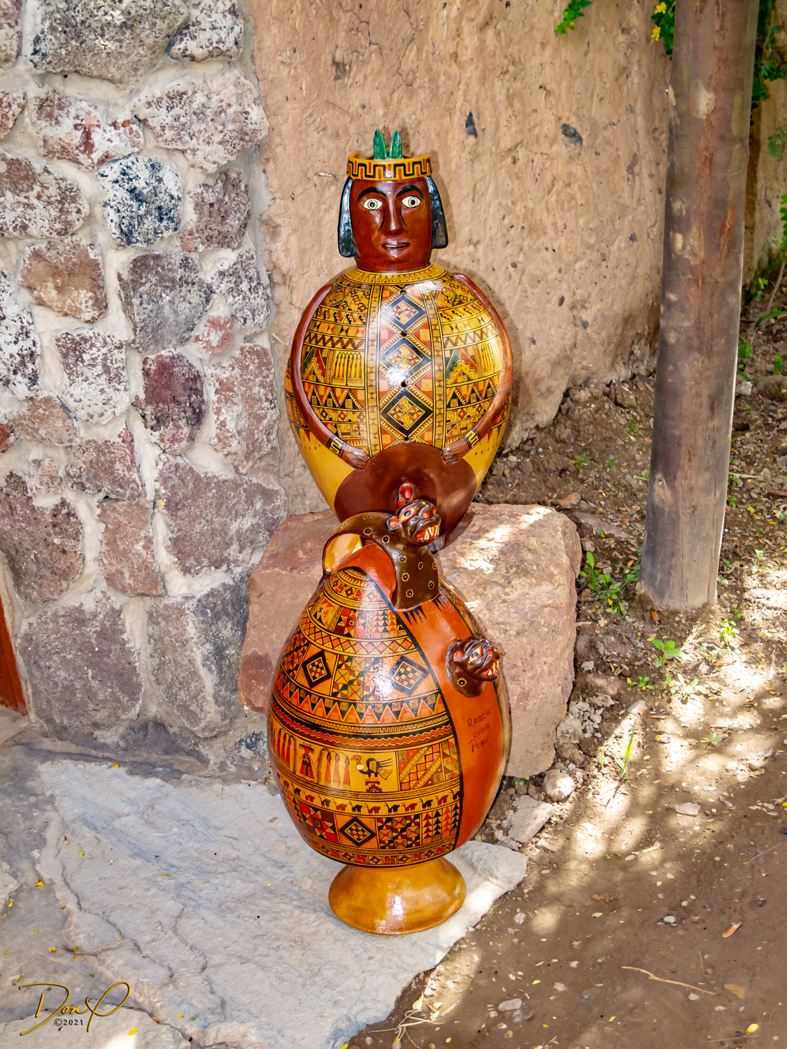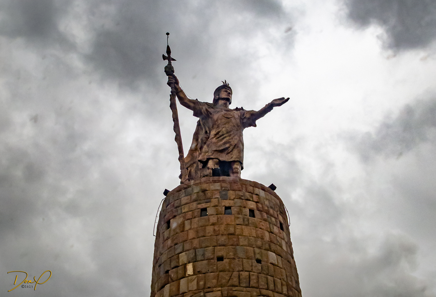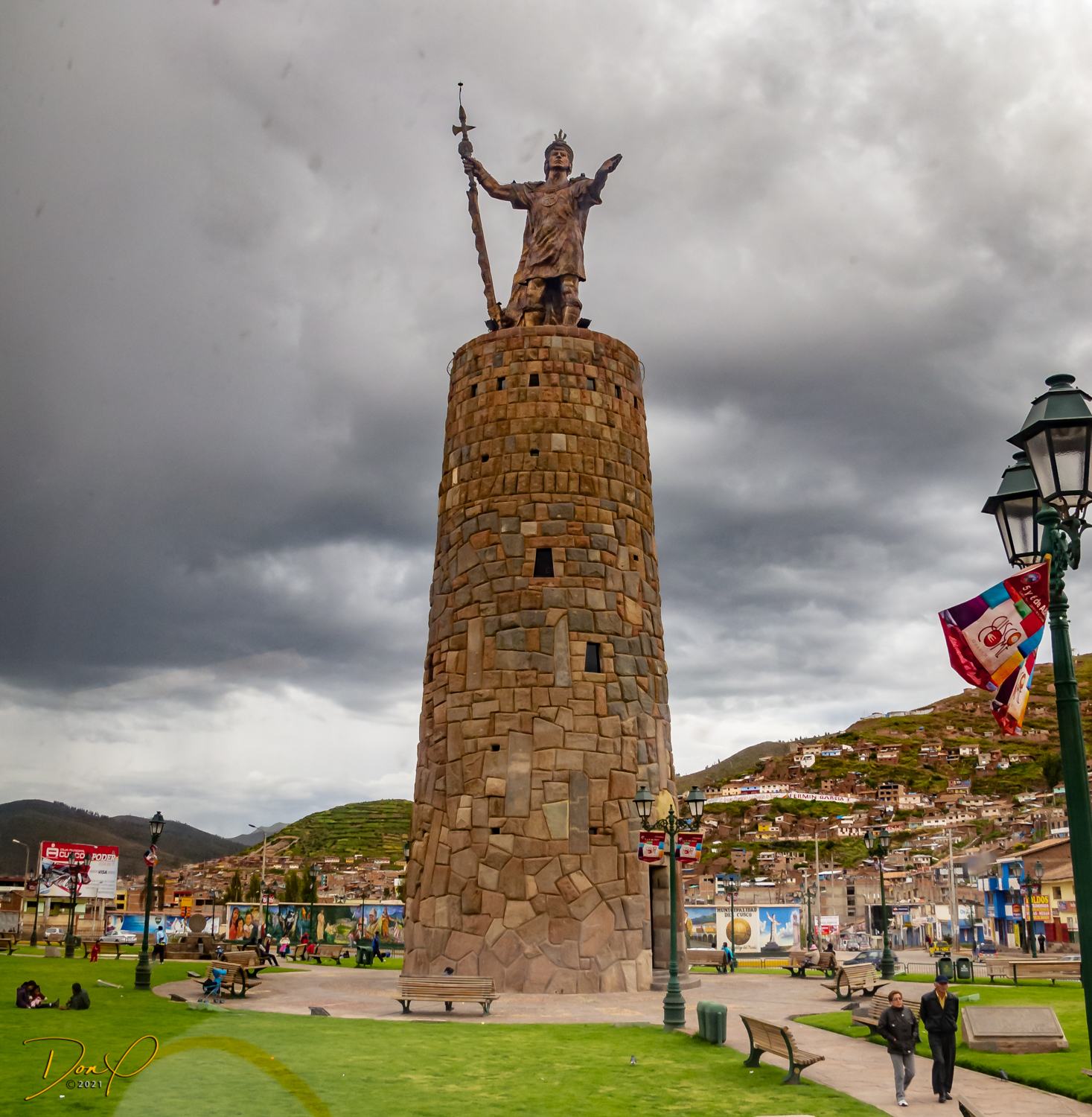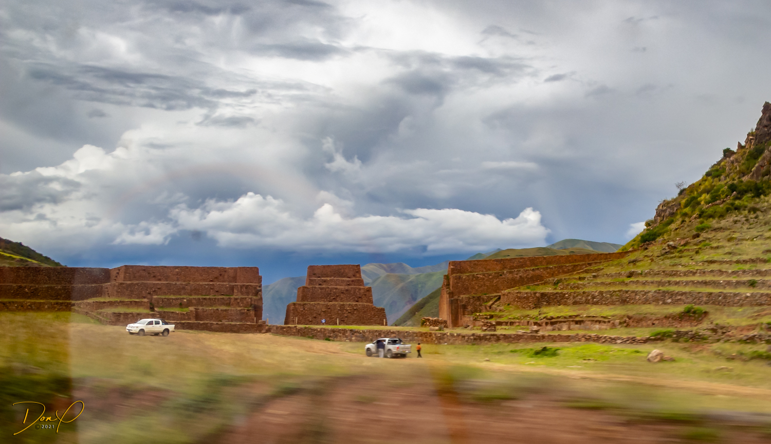 We drive on and pass by a Sun Gate similar to the “Intipunku” of Machu Picchu. On a specific day and time, we are told, the sun rises and shines through the sun gate, illuminating a specific object. Shortly thereafter we descend into Cusco at just over 11,000 feet (3400 meters). We see the “Monumento Inca Pachacutec” as we go through town. The sun sets behind the overcast skies as we arrive at our hotel.