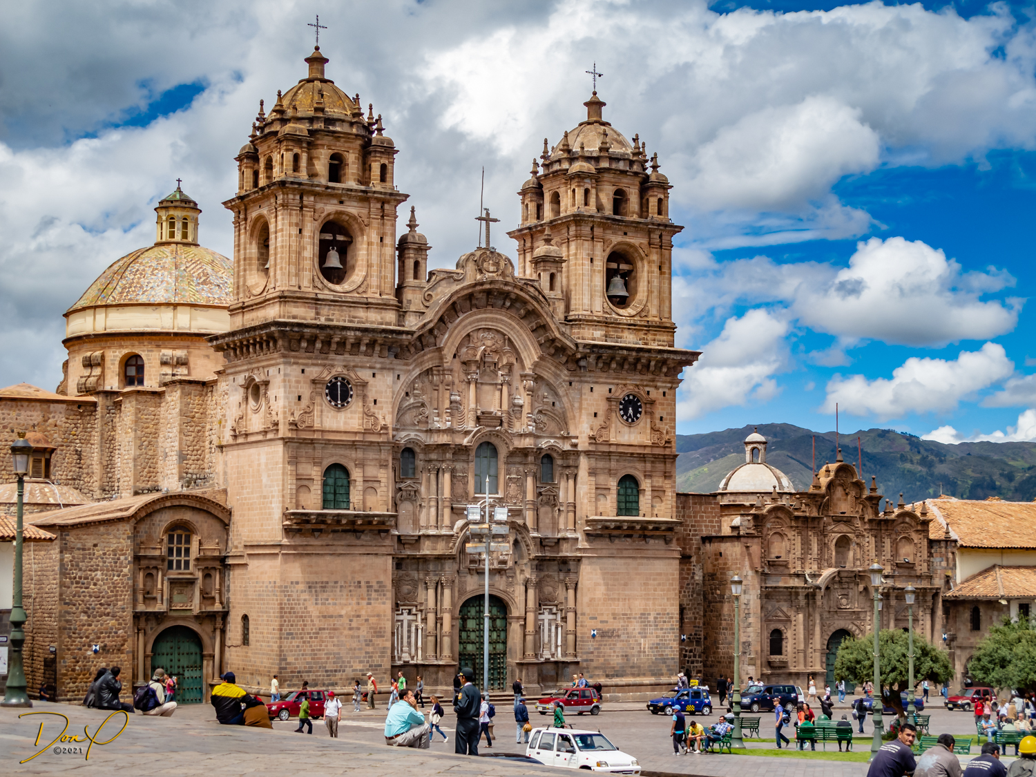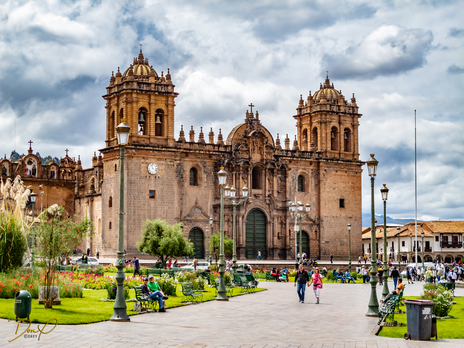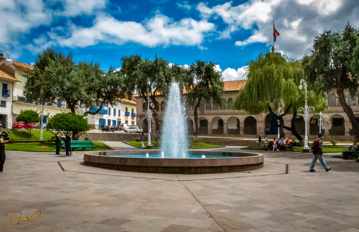 We have the morning to ourselves today as our excursion doesn’t start until the afternoon. So we actually get an extra hour of sleep before we partake of a complimentary fruit breakfast in the hotel. The city of Cusco is just over 11,000 feet (3400 meters) above sea level and we are getting very well acclimatized to the altitude. We stroll into the city square and you’d never know there were thousands of revelers here last night. One thing we see in all places we visit here are balconies. They are commonly painted bright colors that rarely match the attached building.