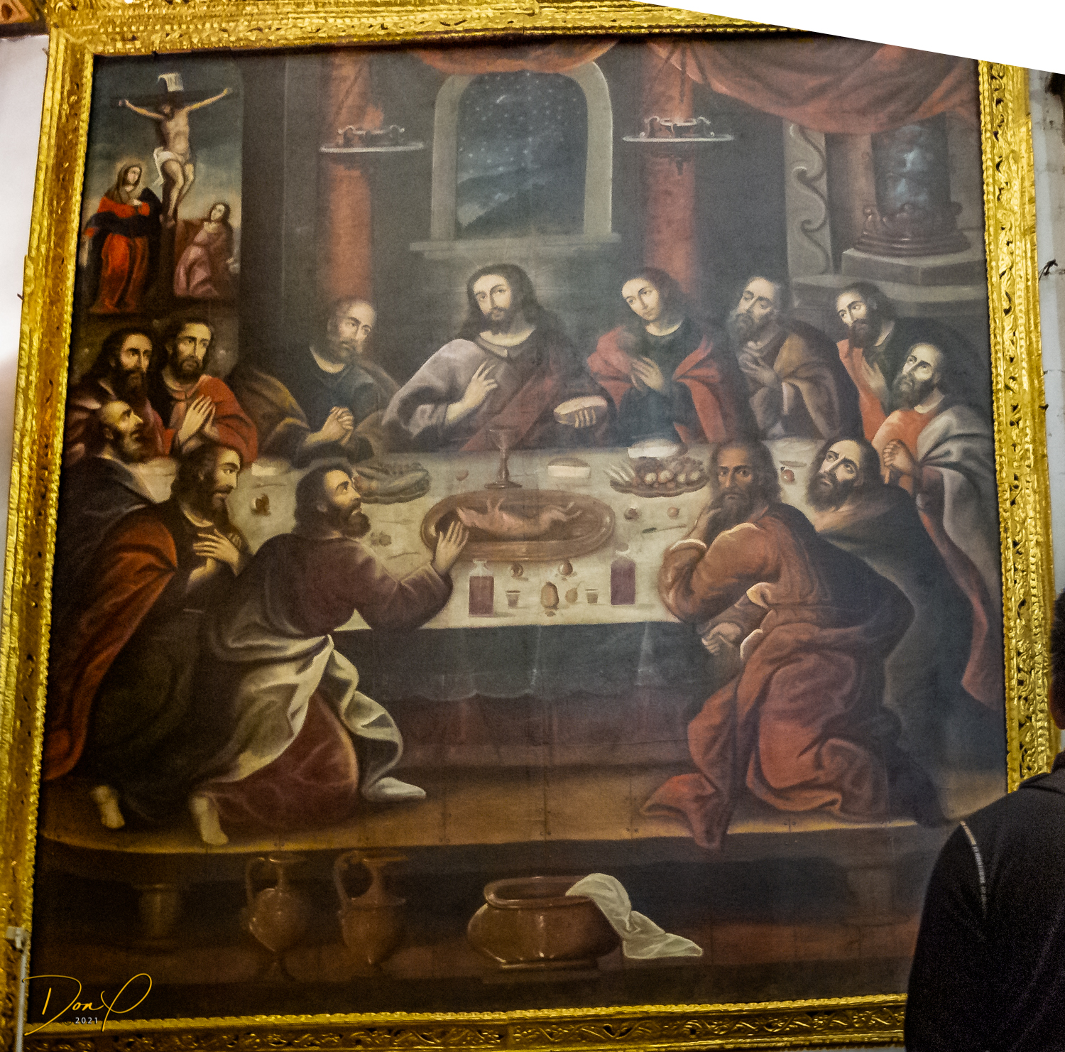 There are more than one church here and it is a very photogenic square. We decide to have an early lunch and we choose “Incanto Ristorante”. We manage to relax over lunch (I don’t remember what we had) and then it’s back outside for some more photos. Two girls dressed in native garb pose for me as we attempt to visit the inside of a church. I manage to take a couple photos before I am told to put the camera away. Oh well, I tried! But I did capture a photo of the painting of the “Last Supper” with a guinea pig depicted as being served!