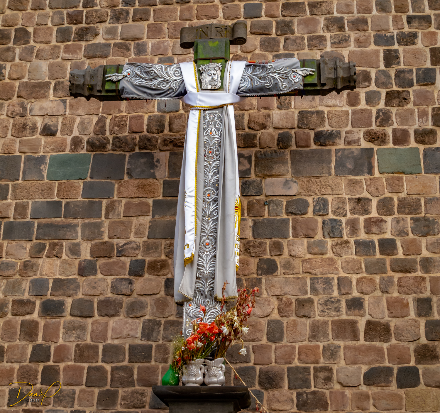 We see more “INRI” crucifixes and everywhere we go, they put these up for the working people. On each “INRI”, they attach the tools that the local workers use. “INRI” stands for Jesus, in Latin it means, “Iēsus Nazarēnus, Rēx Iūdaeōrum”