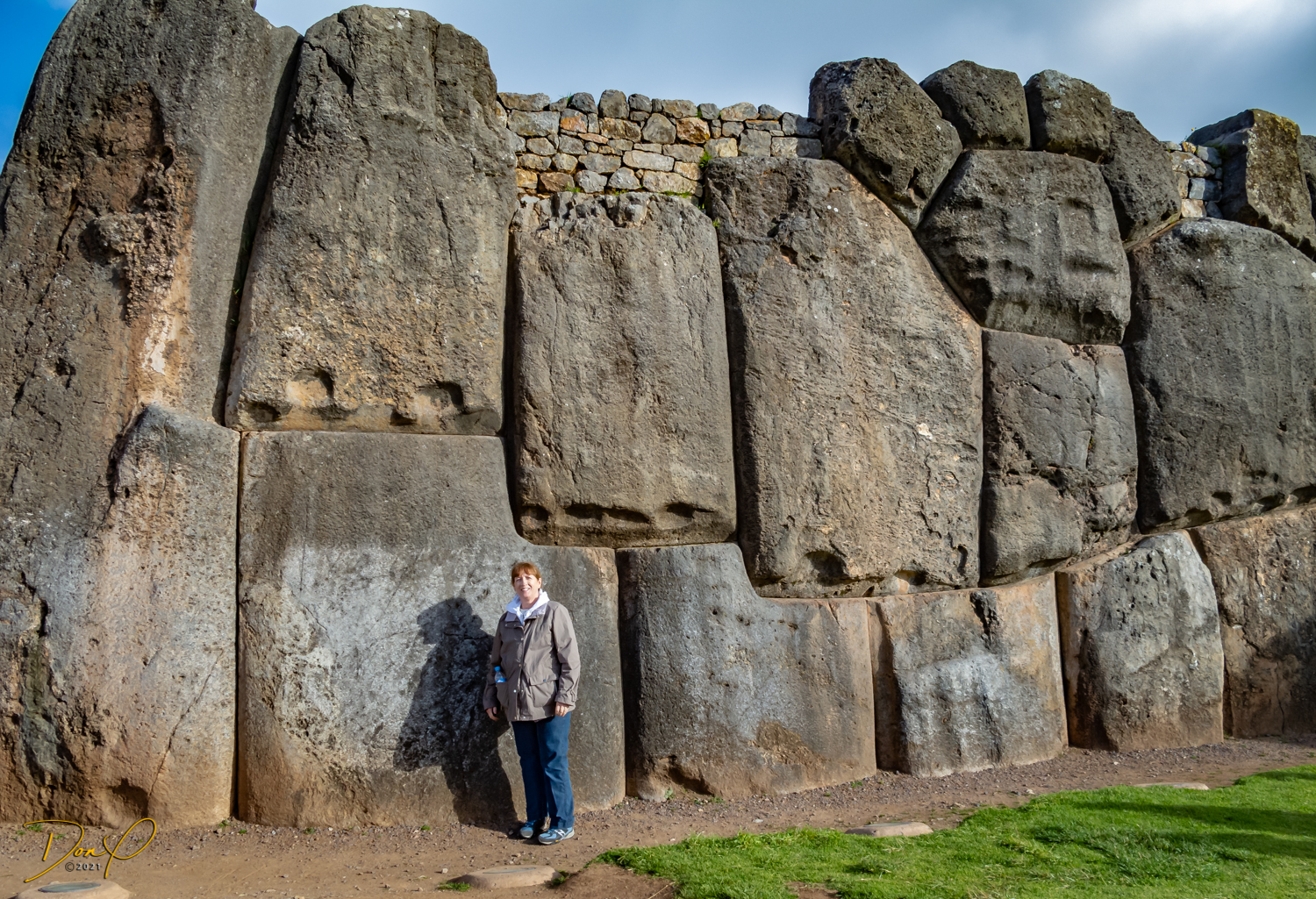 It is now noon and our bus has arrived to pick us up. We ride for about an hour and arrive at another set of ruins, this one named, “Sacsaywaman”. We chuckle at the word, especially when it is spoken out loud. (Go ahead, say it) Here we get to see and touch amazing stone work constructed thousands of years ago. The stones are carved and stacked perfectly and a piece of paper won’t even fit between them! There is no modern knowledge of how this was done. When the Spaniards invaded Peru in the 1500s, they destroyed quite a lot of Inca building. Modern engineers have attempted to repair this damage and you can see how inferior it is, almost like child’s play in comparison! In the distance, a statue similar to “Christ The Redeemer” is on a hilltop but we never get very close to it.