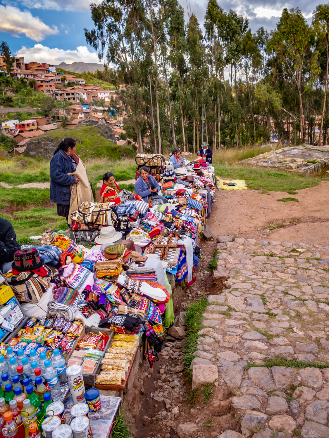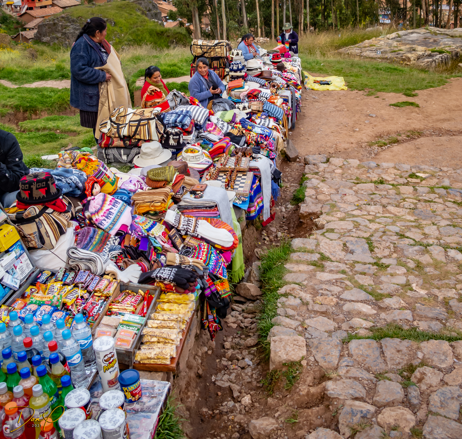 We then travel a short distance to the home of “Huiracocha”, the god of water. Here, Huiracocha and “Pachamama” (Mother Earth) resided and they say these waters are the purest on earth. (Pronunciations are “Ware-a-ko-cha” and “paach-A-mama”) Once again, vendors display their colorful wares for sale!
