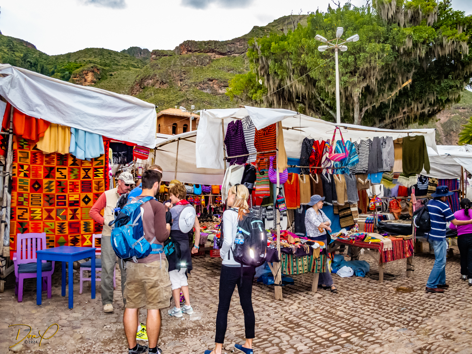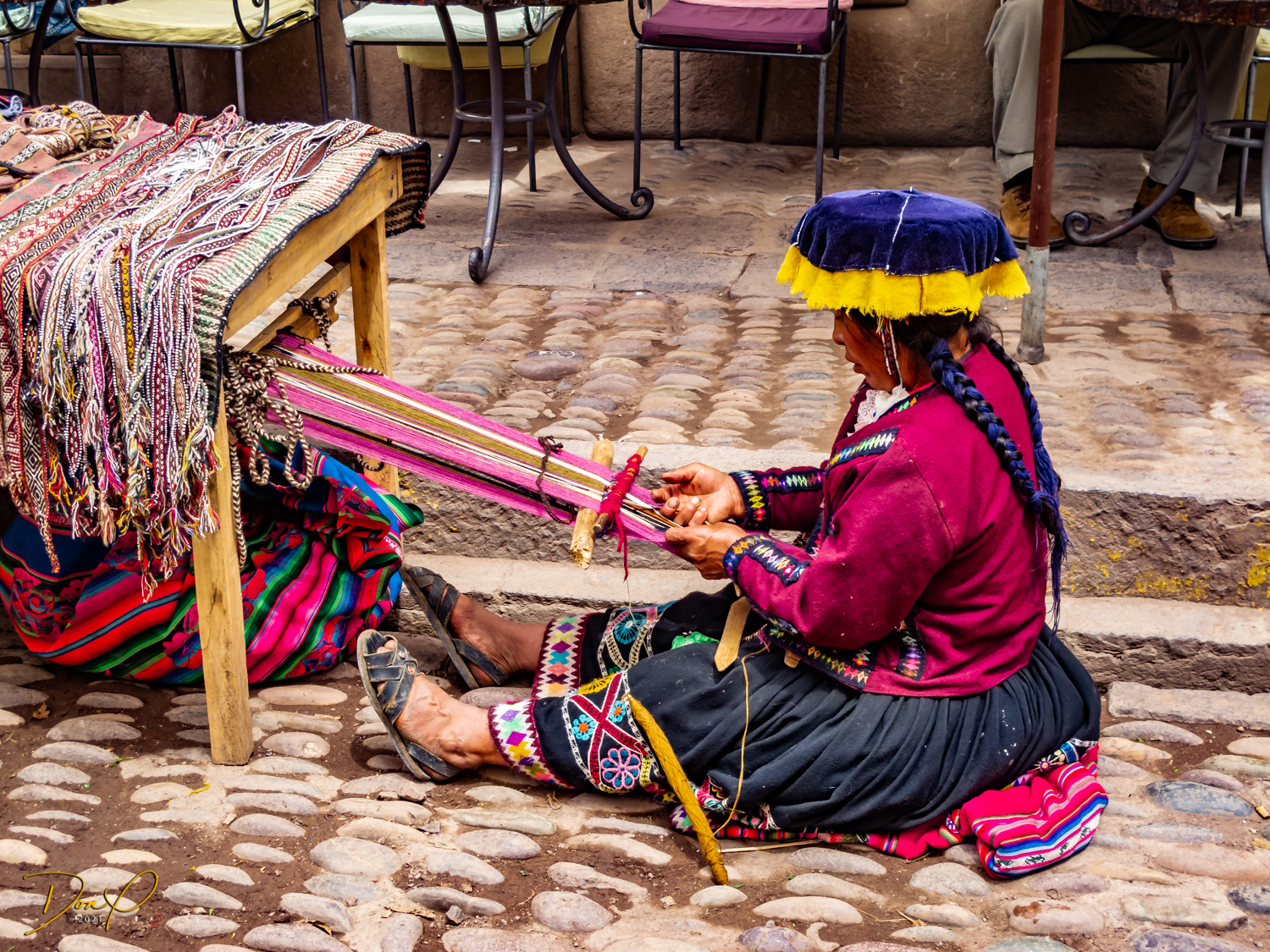 We then go into the town market which Pisaq is famous for and we walk around the extensive market where I buy a t-shirt and take photos of the colorful products and even a weaver lady.