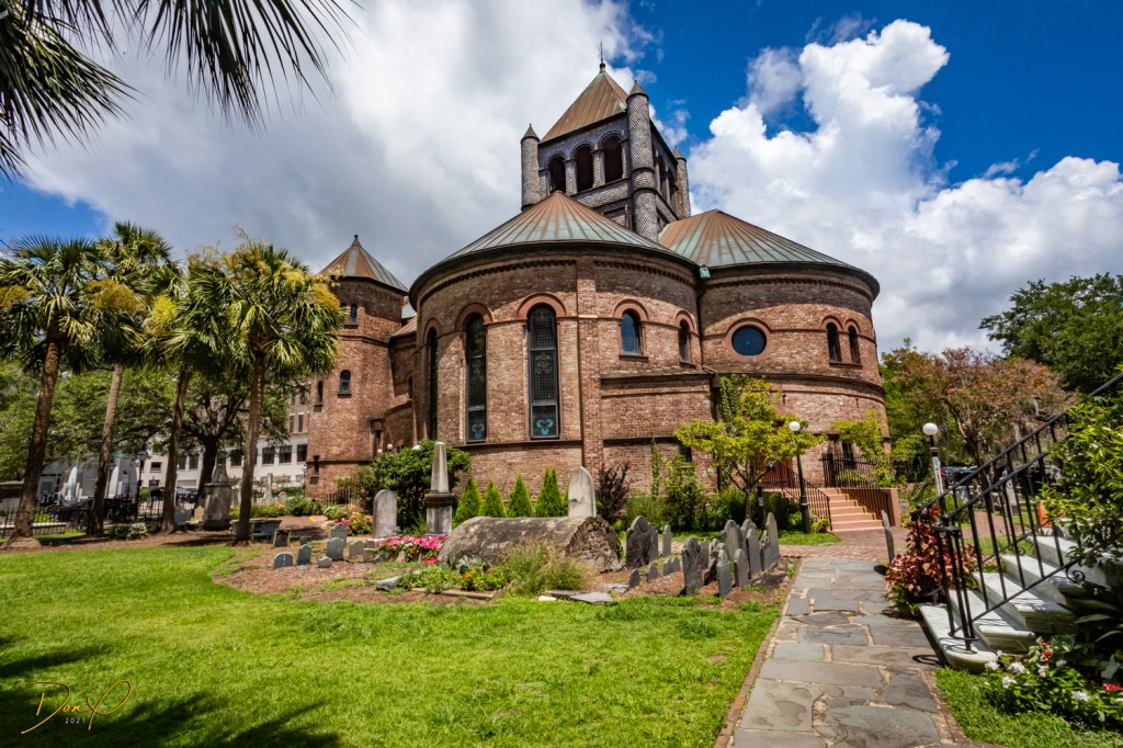 We follow his instructions and we are soon walking around downtown Charleston in the sweltering heat and we locate the “Circular Church” for some fun photos before finding the horse and buggy rides for a guided tour of downtown Charleston. We pay for and arrange a front seat ride and are not disappointed as our guide, Will, educates us about the downtown area and the buildings and streets that we see with his mighty steed, “Gary”, the horse that pulls us around the streets without hardly breaking a sweat.