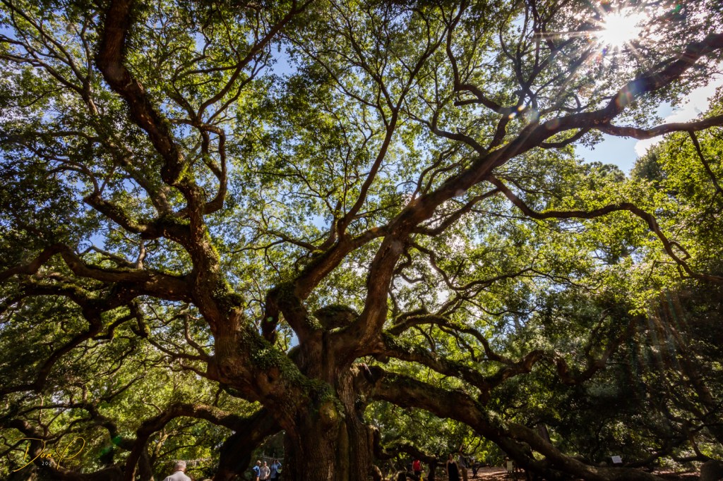 We had heard about an old tree, the “Angel Tree” along our way. We asked Will on our Horse and Buggy ride. Will identified it as the “Angel Oak Tree” and said it was on “John’s Island”. We thanked him and looked it up. It was a 30 minute ride and we set our GPS and head out to find it. It turns out it is in a protected park that is open until 5PM. We arrived at 4:35PM and had just enough time to get some shots so we were lucky. The tree is estimated to be 400 years old, however there is controversy about its age. Suffice it to say it is old, very, very old. I would guesstimate the trunk to be in excess of 15 feet in diameter. The branches spread more than 200 feet and its height is in excess of 100 feet. The branches are gnarled and twist in a beautiful dance.