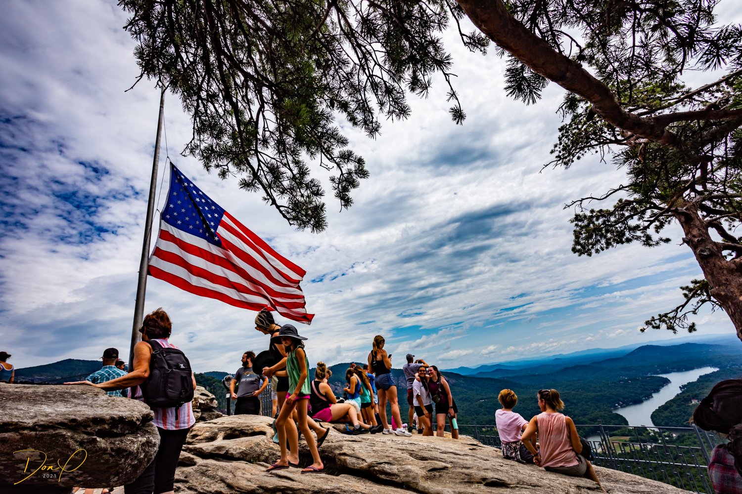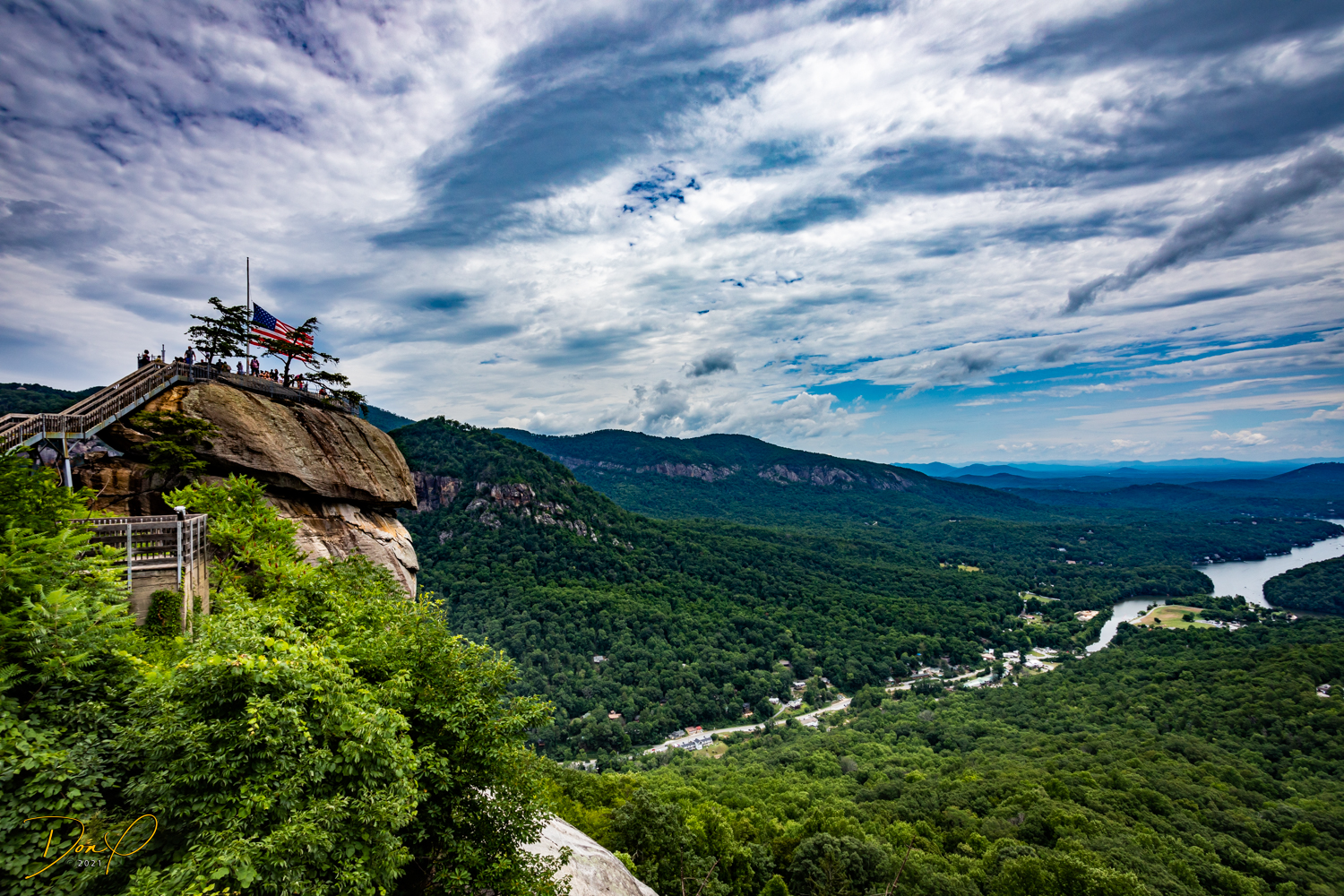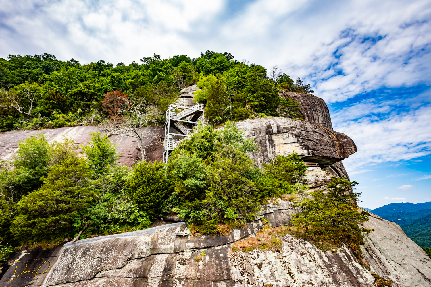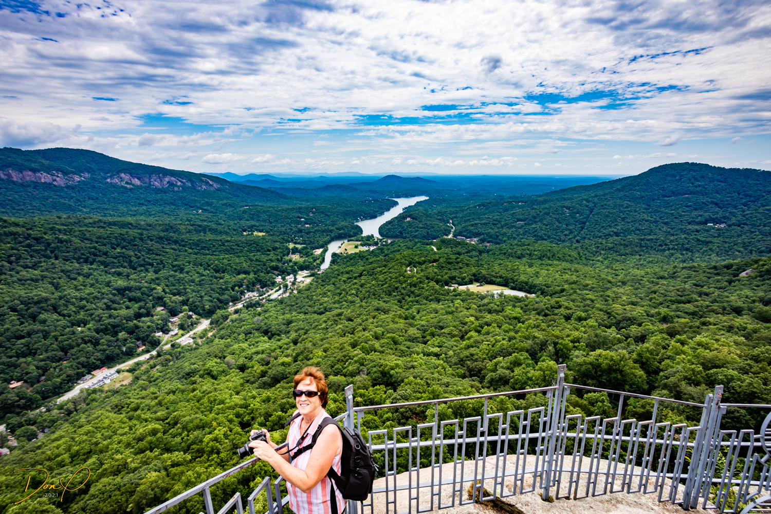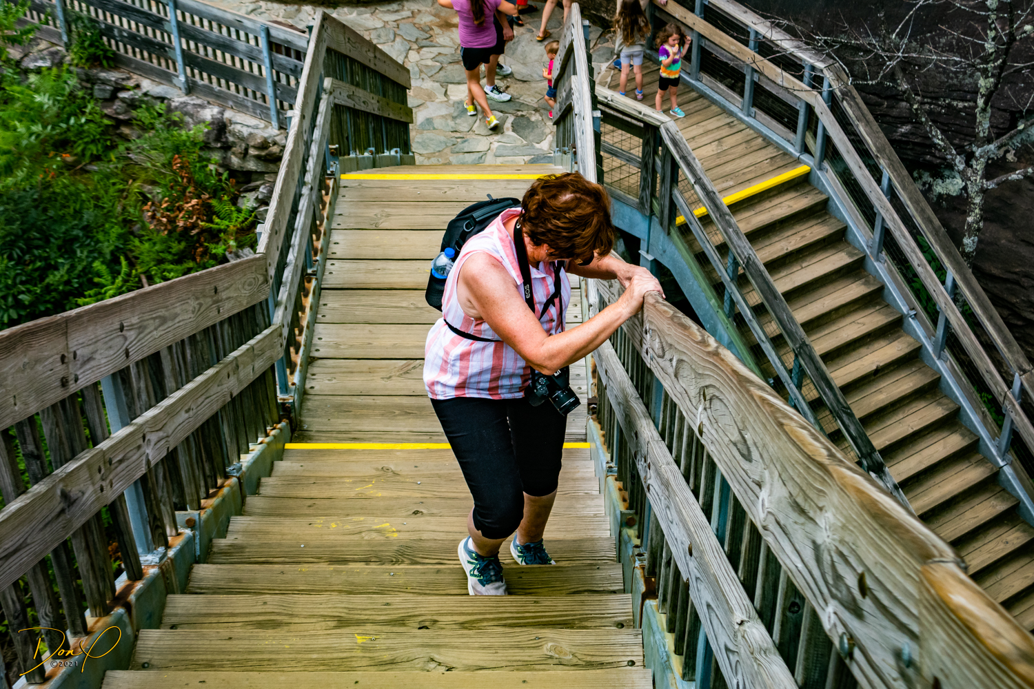 Getting up this morning the rain is gone. We take advantage of the complimentary breakfast and head out. We head in the direction of “Chimney Rock”, a scant 2 hour drive. When we arrive, it even turns out there is an elevator up through the mountain for old fogeys like us to forego the 500 step climb and we pay the price to use it.