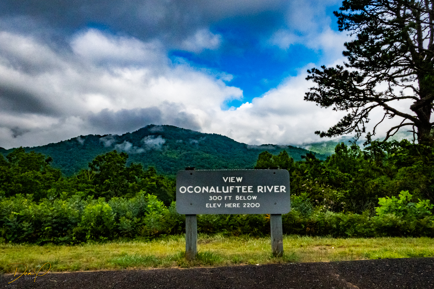 We find the town of Cherokee pretty much closed down on a sleepy Sunday morning and nothing is open. We do find gas for the car but that is about all. Then we find the beginning of the Blue Ridge Parkway, actually, the end of the Parkway, Milepost 469, at the Oconaluftee Visitor Center and head on our way. The Parkway is very foggy and rainy for a lot of the way but there are sporadic views as we drive along the ridge. It is quite the drive and the road surface is in quite good repair.