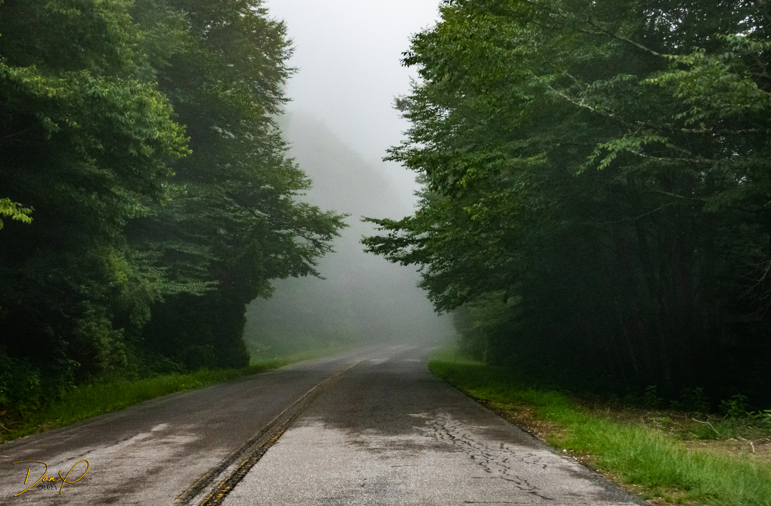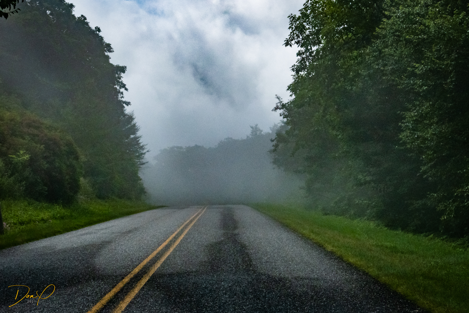 We make it all the way to Asheville where we exit the Parkway and break for lunch where we find our way on a super highway for a short distance before finding our way back onto the Parkway where the driving is much more pleasant. Even though the views are not much more than fog and rain, it is a much better day of driving than a super highway.
