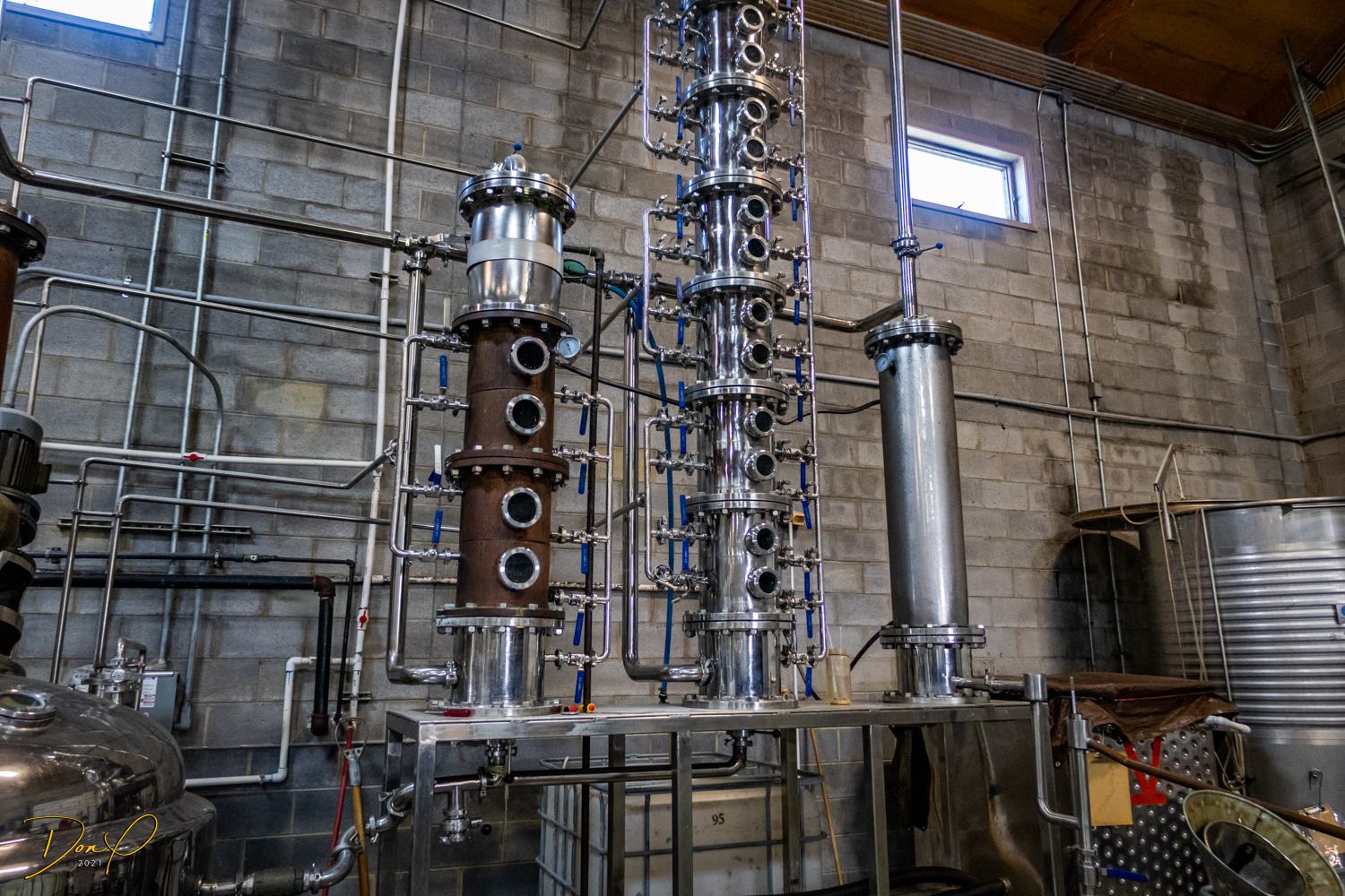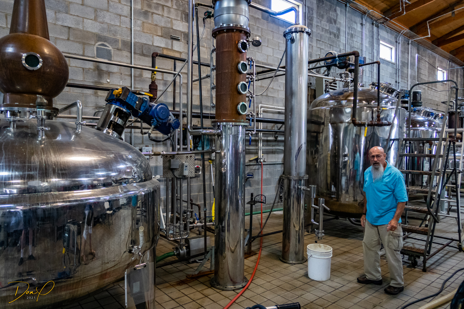 We fuel up and head for the winery. Upon pulling in, the first thing we notice is that the grapevines look very sad indeed. The winemaker confirms our observations and tells us they had very bad luck with the grapes. So they turned their operation into a distillery instead. This they had quite good success with and their flavored moonshines are delicious. We get a tour of the distillery an we even buy some to bring home! Those close to us may even get to try some in the near future!