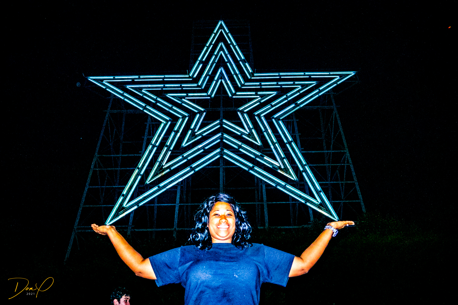 We have been told to check out the “Roanoke Star” and we locate it on top of a hill. It is a 30 foot tall white star that is illuminated at night. We take some photos in the day and then go find dinner at another downtown restaurant, “Awful Arthur’s” that turns out to be not so awful. By this time it is getting dark and we make it back up to the “Star” where we take more photos of the illuminated Star. At one point, a fun lady, Yolanda Ramos, poses for a photo and holds the Star up in the air! What a fun lady!