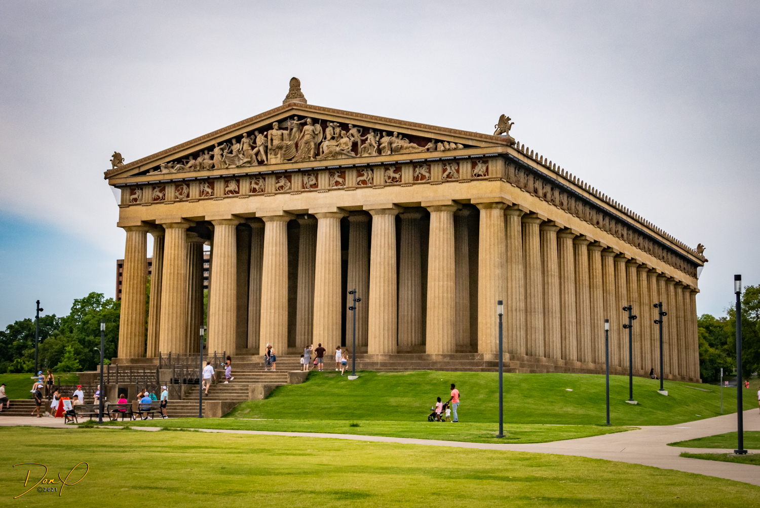 They join us shortly and our day starts. We go back into Nashville and they take us to a park where a replica of the Parthenon stands and our cameras are once again happy as we walk around the park. Then we drive through downtown Nashville in the daylight and see the difference from last night.