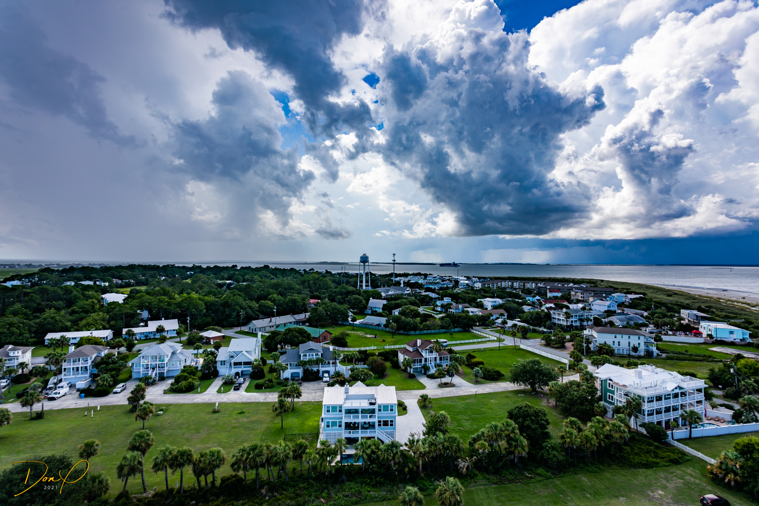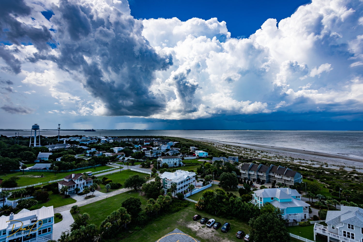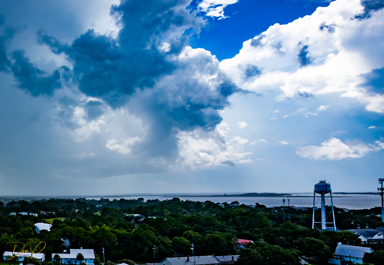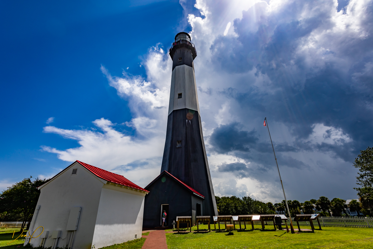 We come back to our room and shower and walk next door for lunch at Sting Ray’s and the food is good. Back to the room for a nap and then we go in search of a lighthouse we have heard of, the “Tybee Island Lighthouse”. As we approach the area, the storm clouds are amazing and our cameras love it! We arrive and buy our tickets amid warnings that we may be ordered to come down at any moment because of the storms in the area. I tell the people in charge that I want to photograph the storms from the top of the lighthouse and they get nervous and threaten to revoke permission for me to go up! I laugh and tell them I’m kidding (inside I’m not) and promise to play by the rules and they let me go up.
