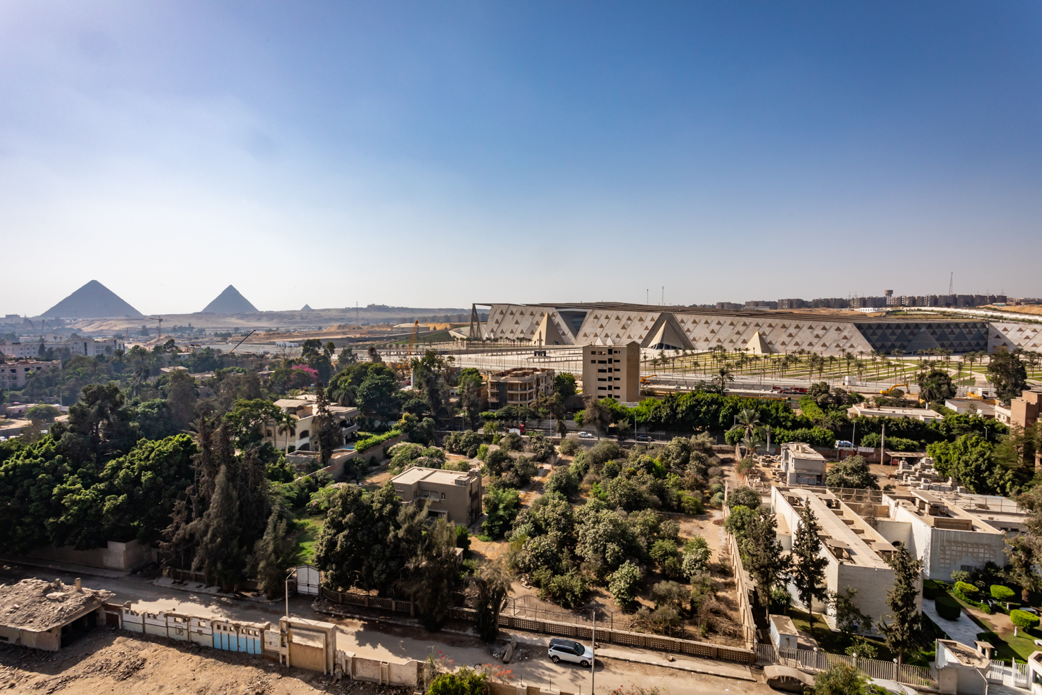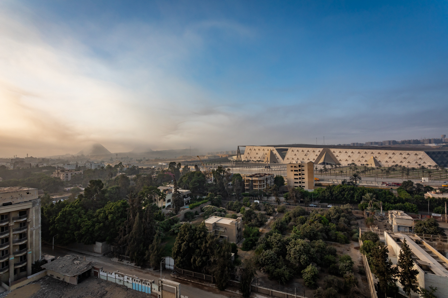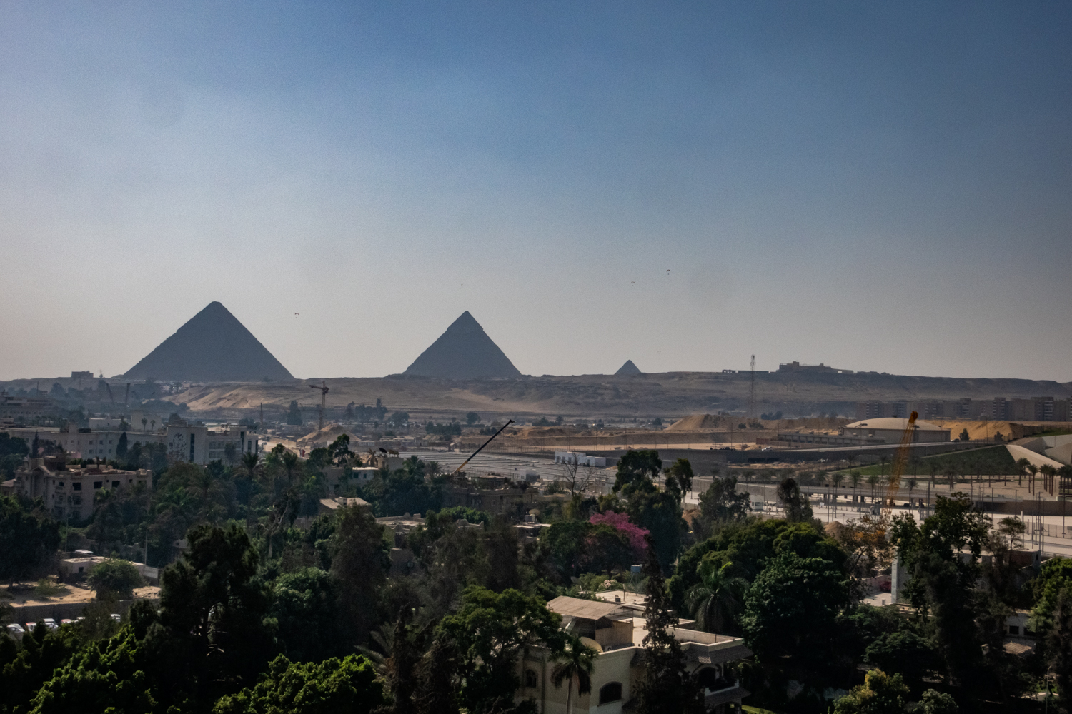 Breakfast is brought to our room at 10AM as promised and it is quite tasty, consisting of homemade bread, omelette, olives and goat cheese and marmalade. Coffee is also hot. We dine overlooking the view although the air is quite dirty and at one point the pyramids get clouded over for an hour.