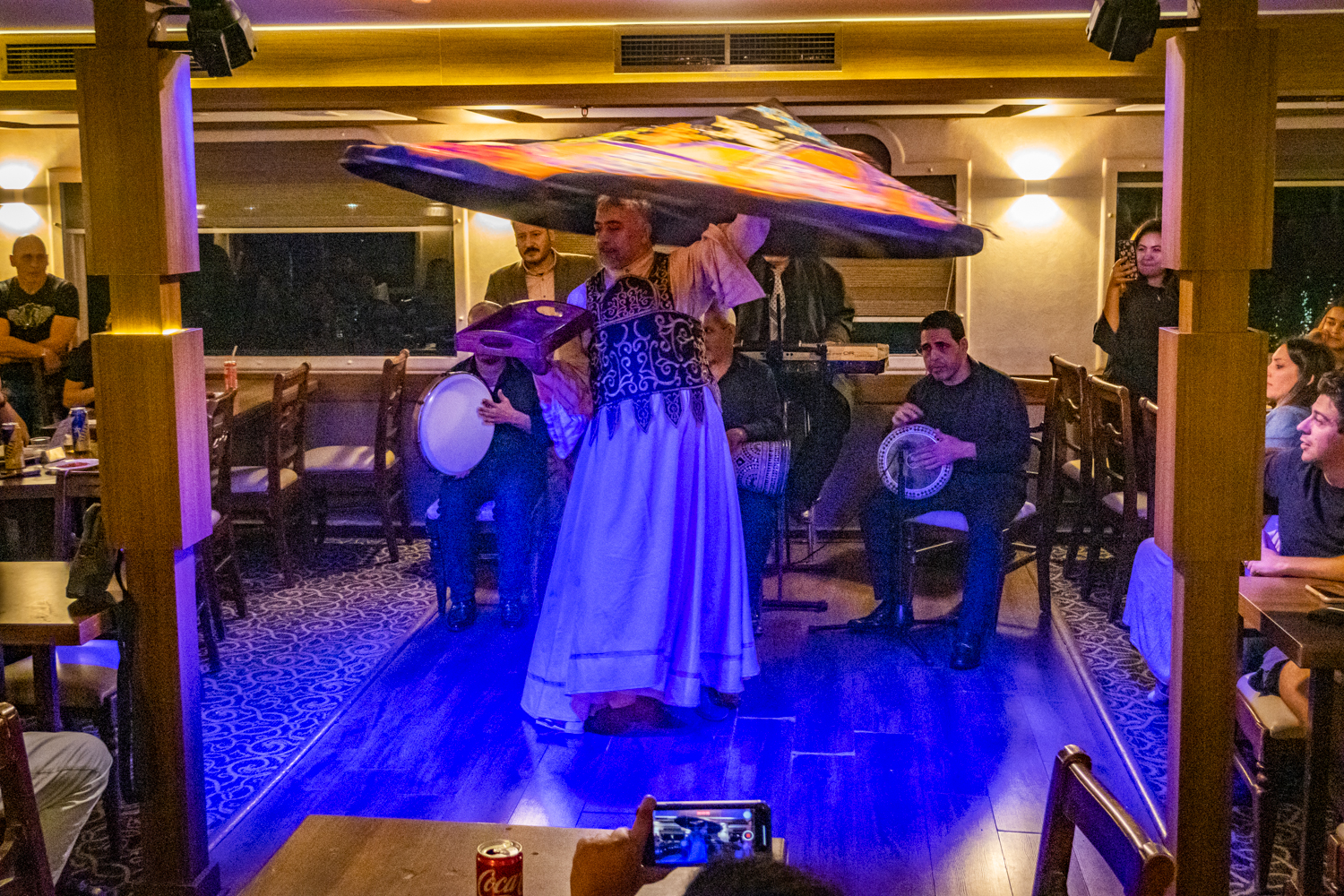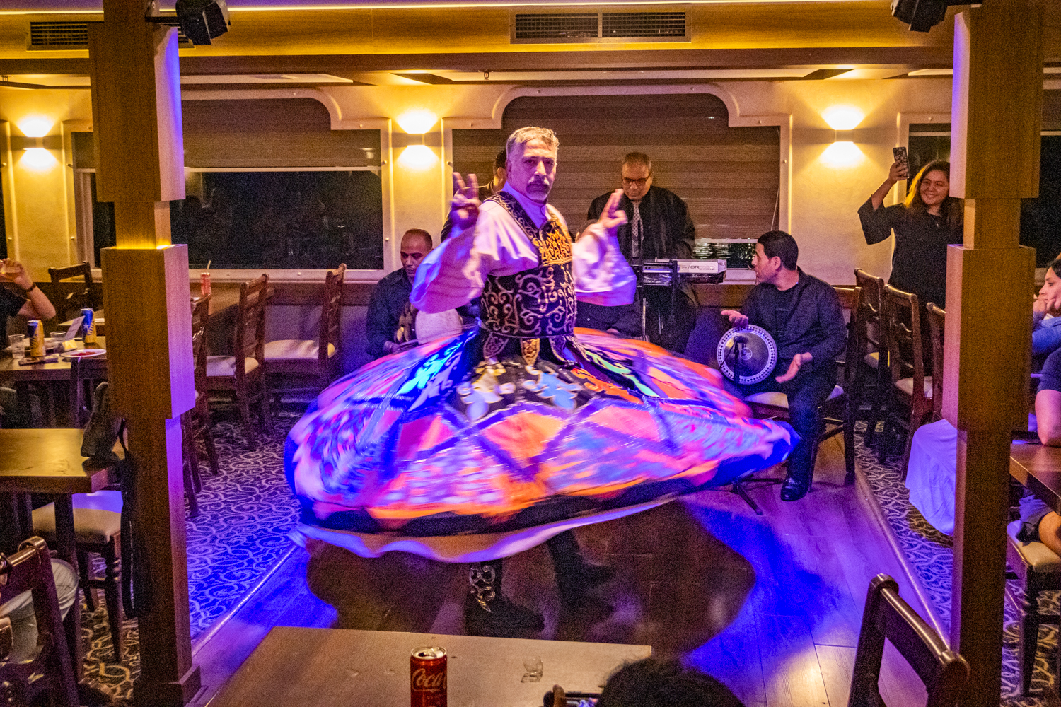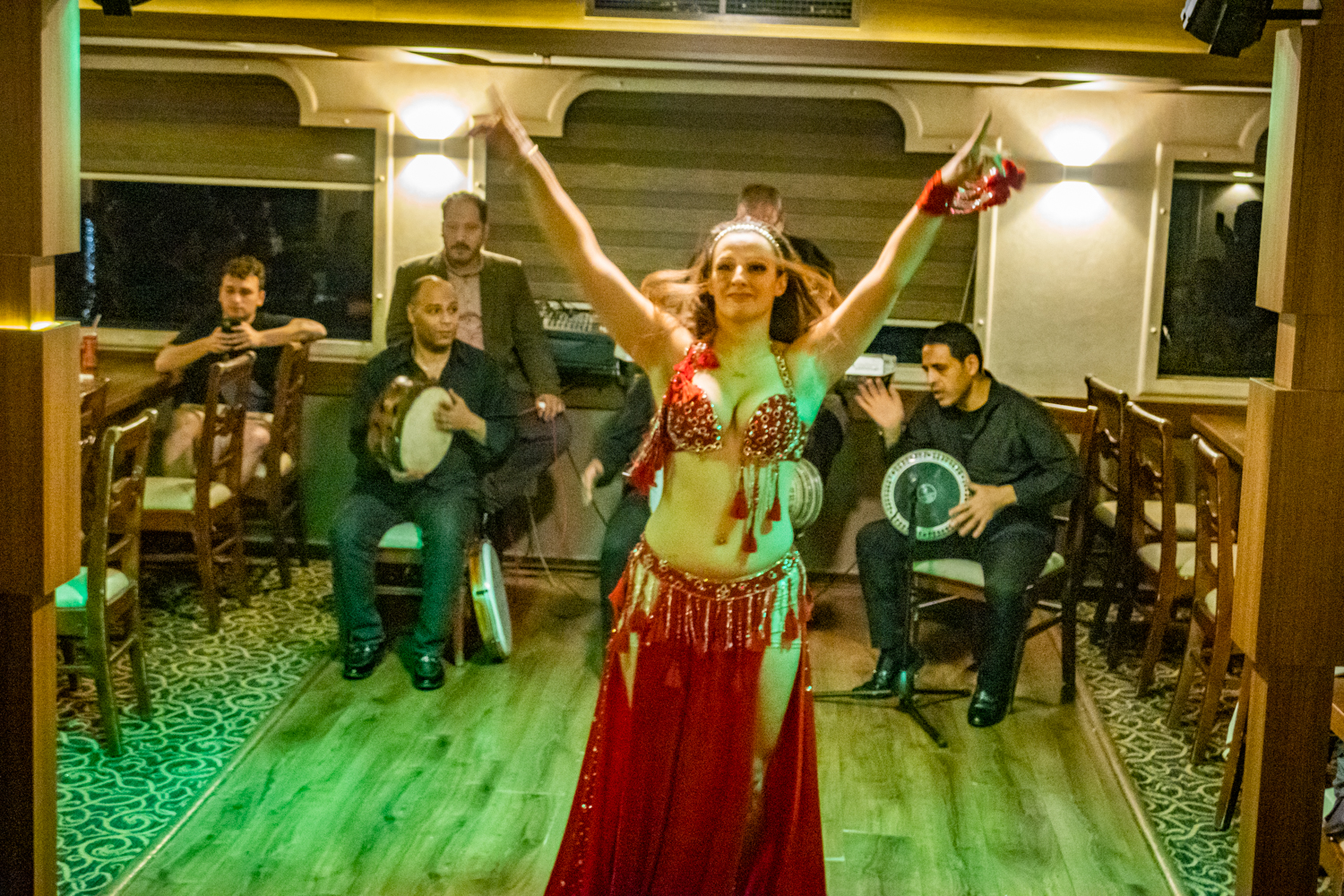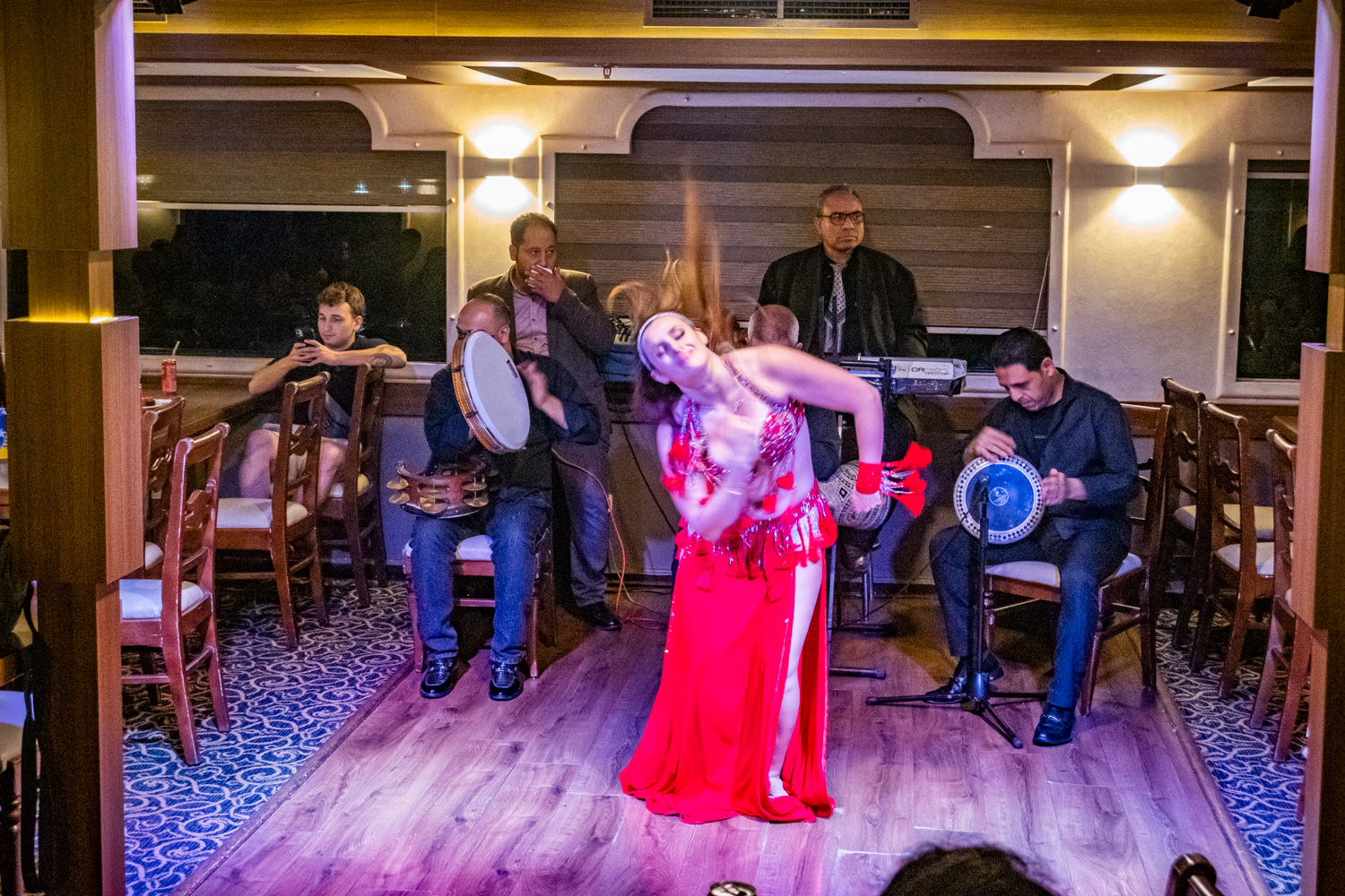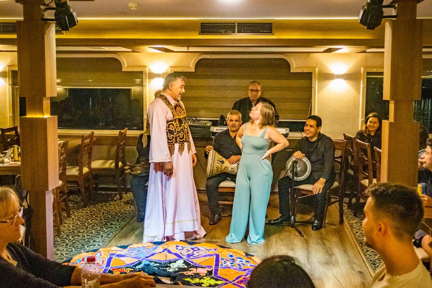 Back to the hotel for a 6 PM Tour Briefing, we then board a bus that takes us to a Dinner Cruise on the Nile and includes live Egyptian drummers, a Belly Dancer and even a Whirling Dervish! We chat amicably with fellow Tour Mates and thouroghly enjoy the shows!