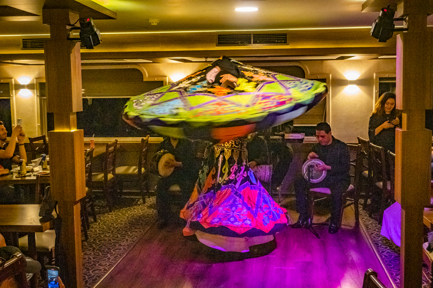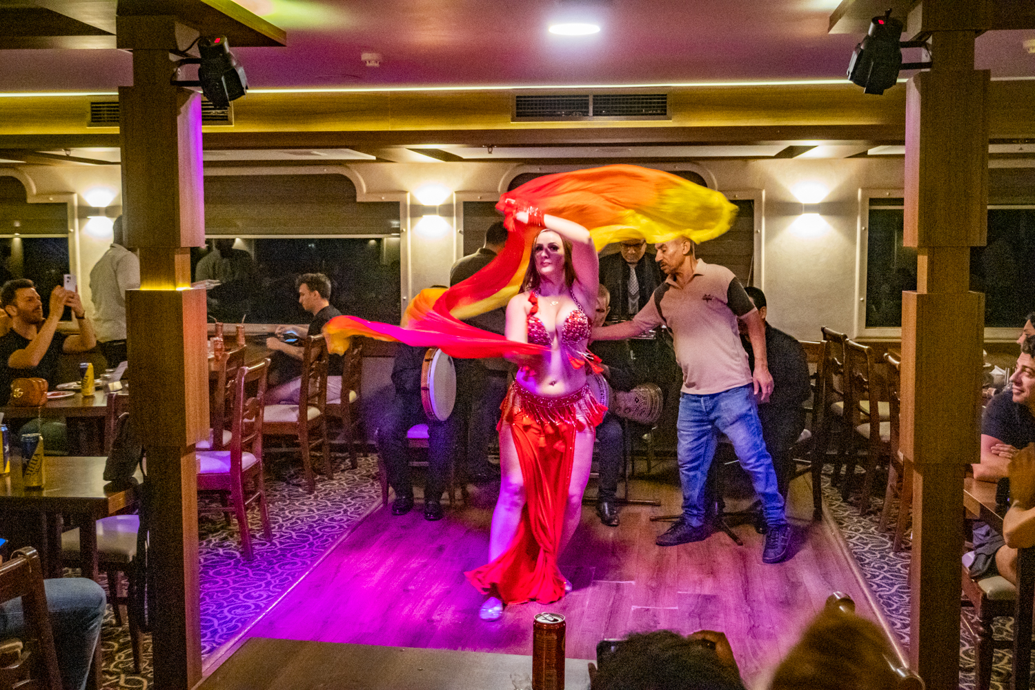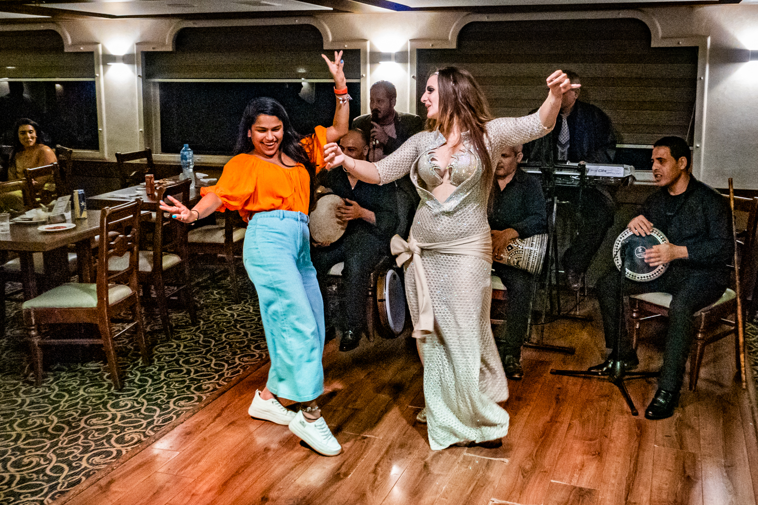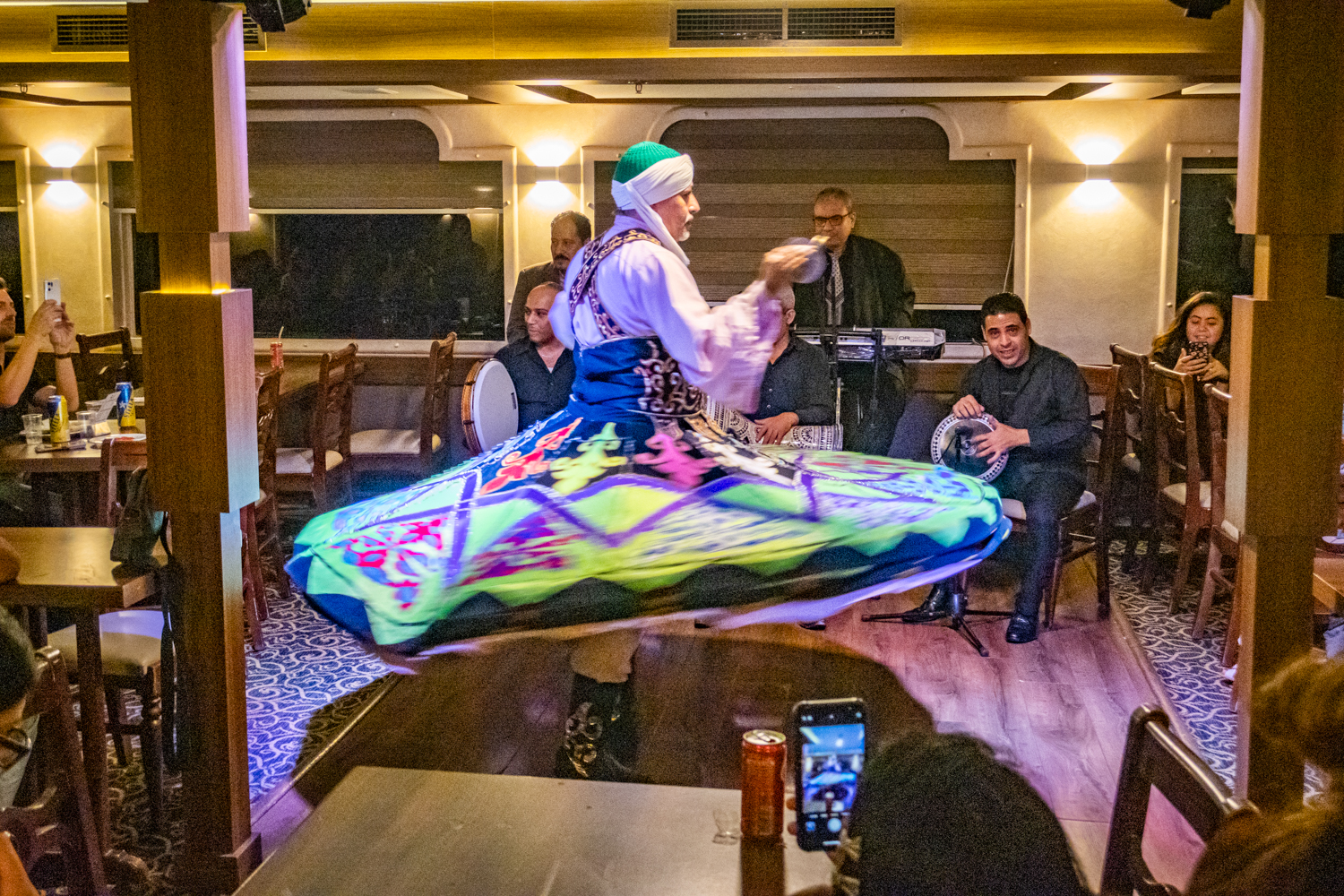 Back to the hotel for a 6 PM Tour Briefing, we then board a bus that takes us to a Dinner Cruise on the Nile and includes live Egyptian drummers, a Belly Dancer and even a Whirling Dervish! We chat amicably with fellow Tour Mates and thouroghly enjoy the shows!