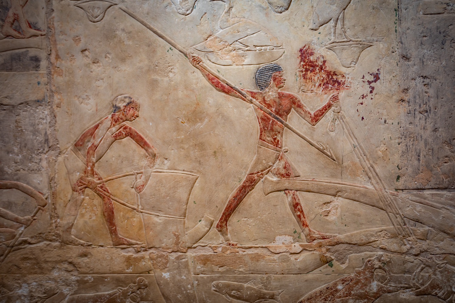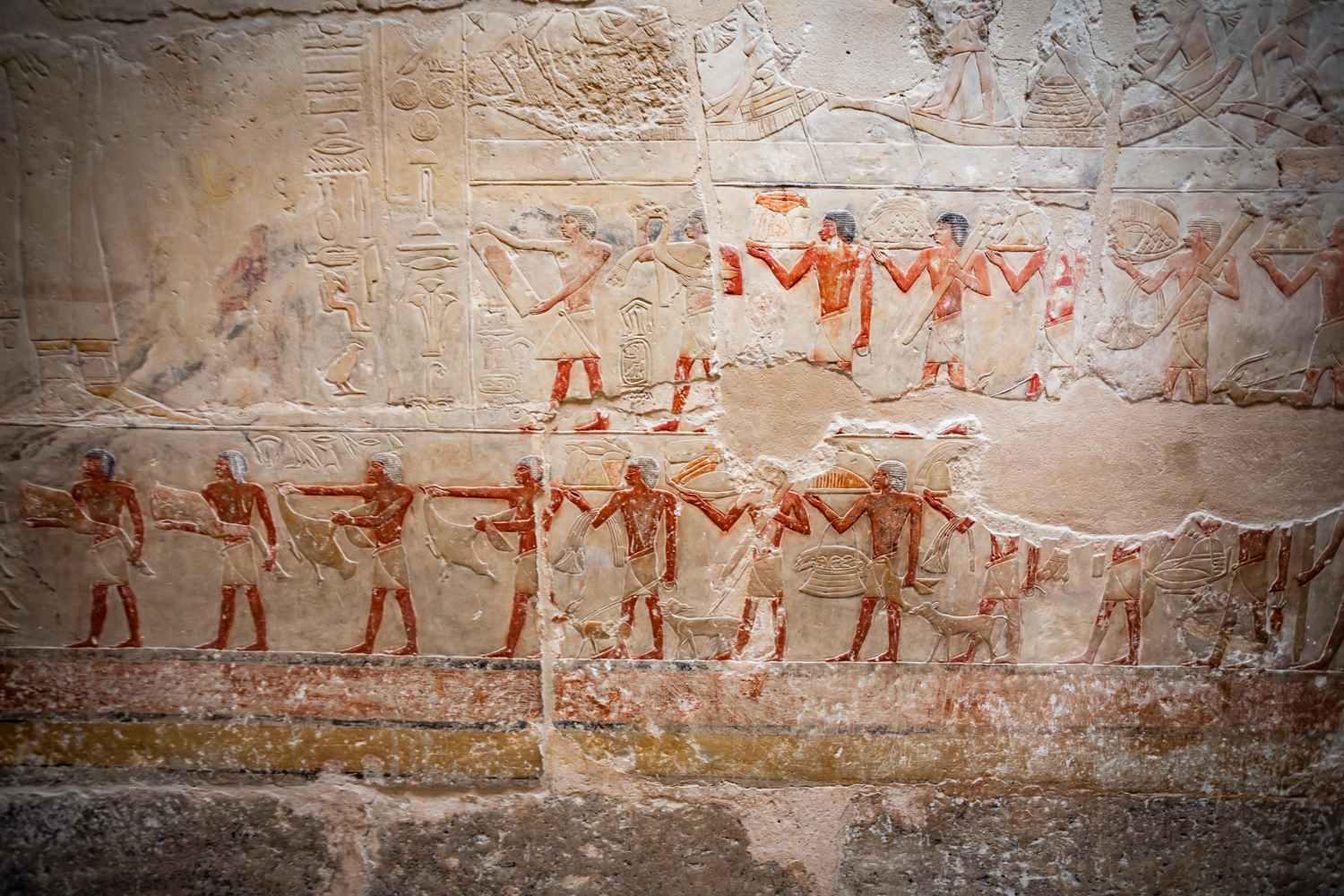 We proceed through a couple more small passages into other rooms that are similarly adorned. The figures and symbols on the walls are still colored in paint like pigments from thousands of years ago! We are cautioned not to touch any of them as that would degrade their condition. So we are careful not to!