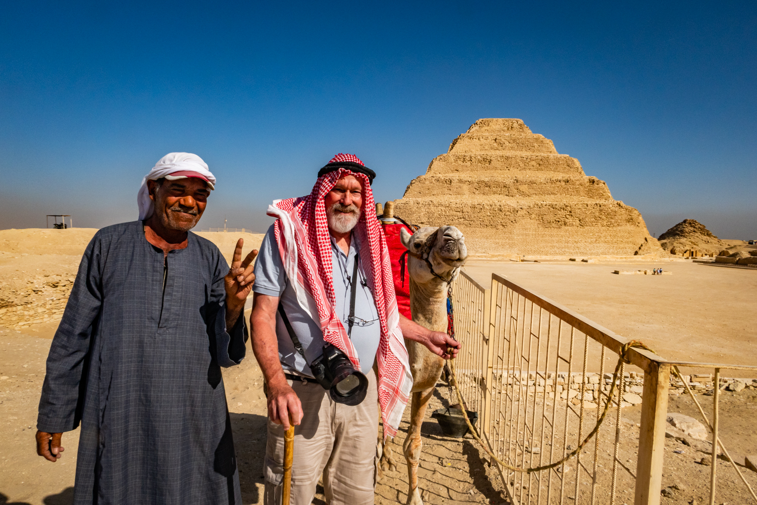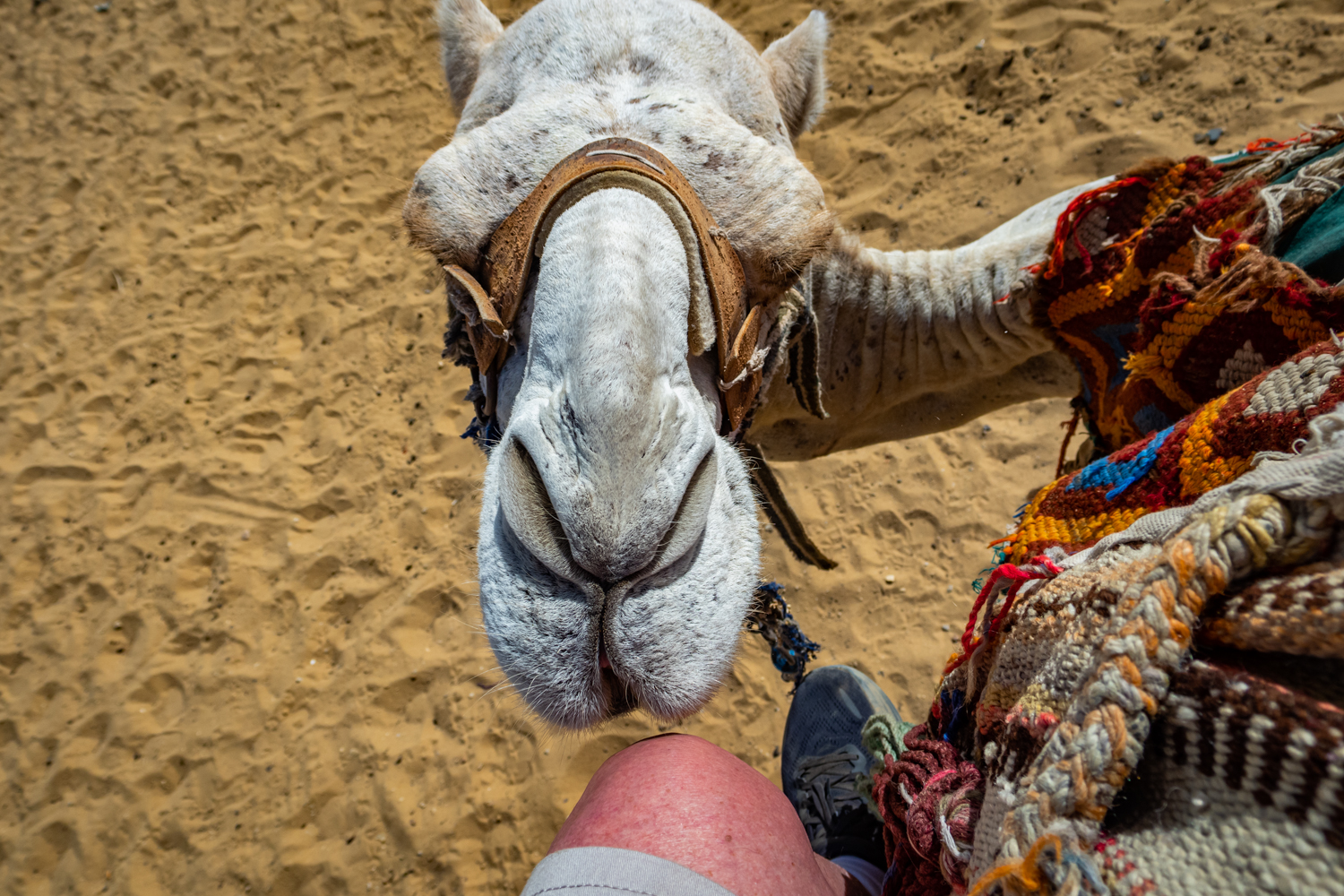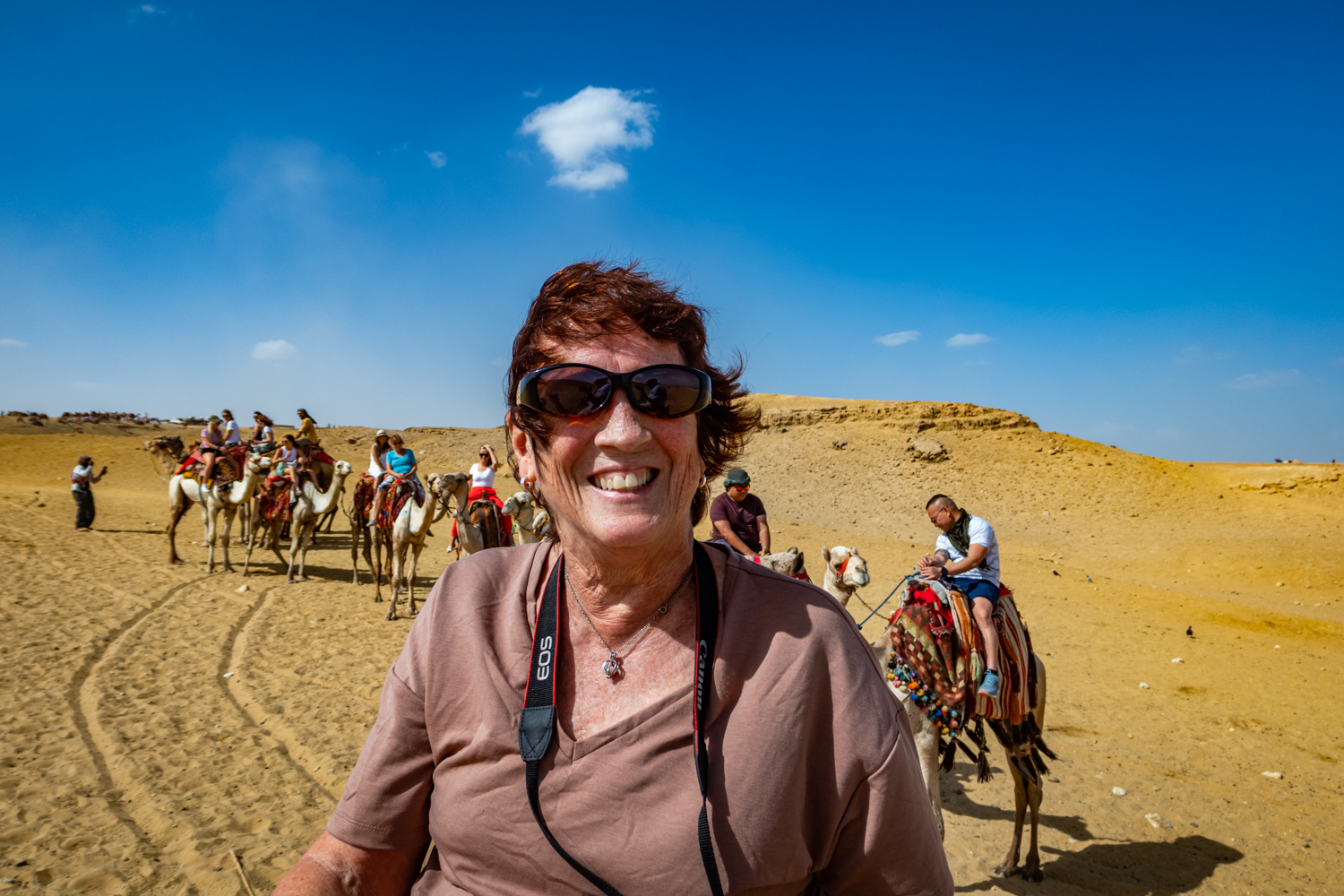 The Egyptian guides walk our camels down a side trail next to the pyramids where our cameras are high on their own endorphins and the ride is amazing! I can’t wait until I start editing all the fun photos including close ups of camel faces taken from inches away. These magnificent animals jostle and jog each other, sometimes crunching our legs between them! But it is not painful, just a great experience! I won’t realize until later how many muscles I used in the short 20 minute ride!