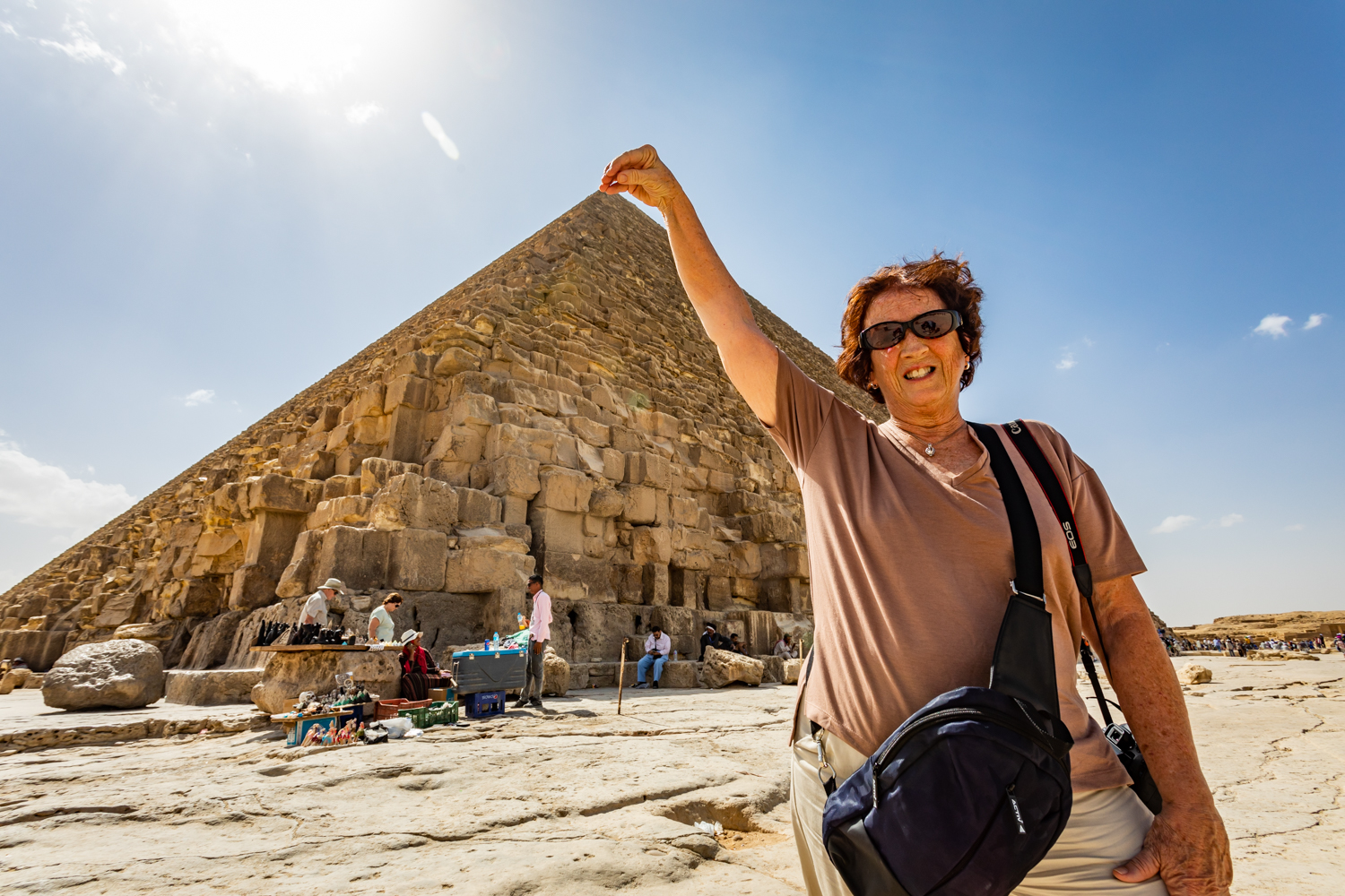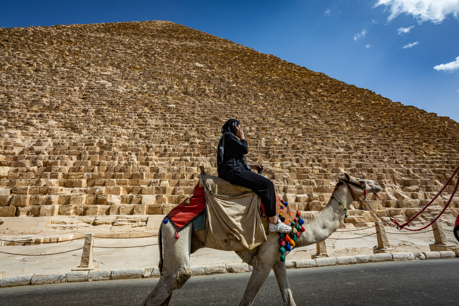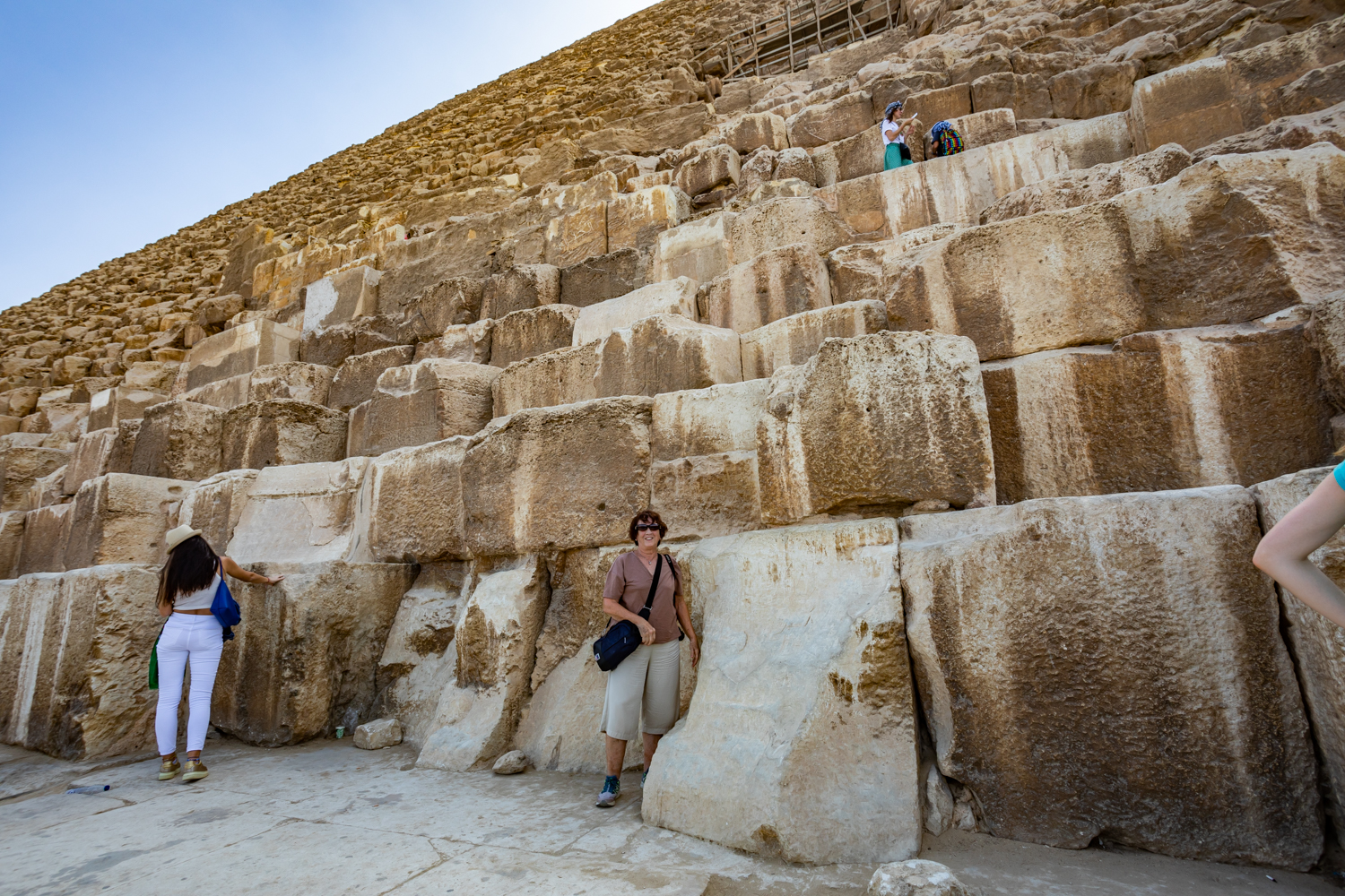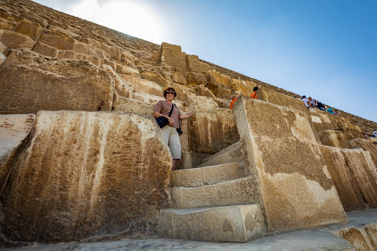 The Egyptian guides walk our camels down a side trail next to the pyramids where our cameras are high on their own endorphins and the ride is amazing! I can’t wait until I start editing all the fun photos including close ups of camel faces taken from inches away. These magnificent animals jostle and jog each other, sometimes crunching our legs between them! But it is not painful, just a great experience! I won’t realize until later how many muscles I used in the short 20 minute ride!