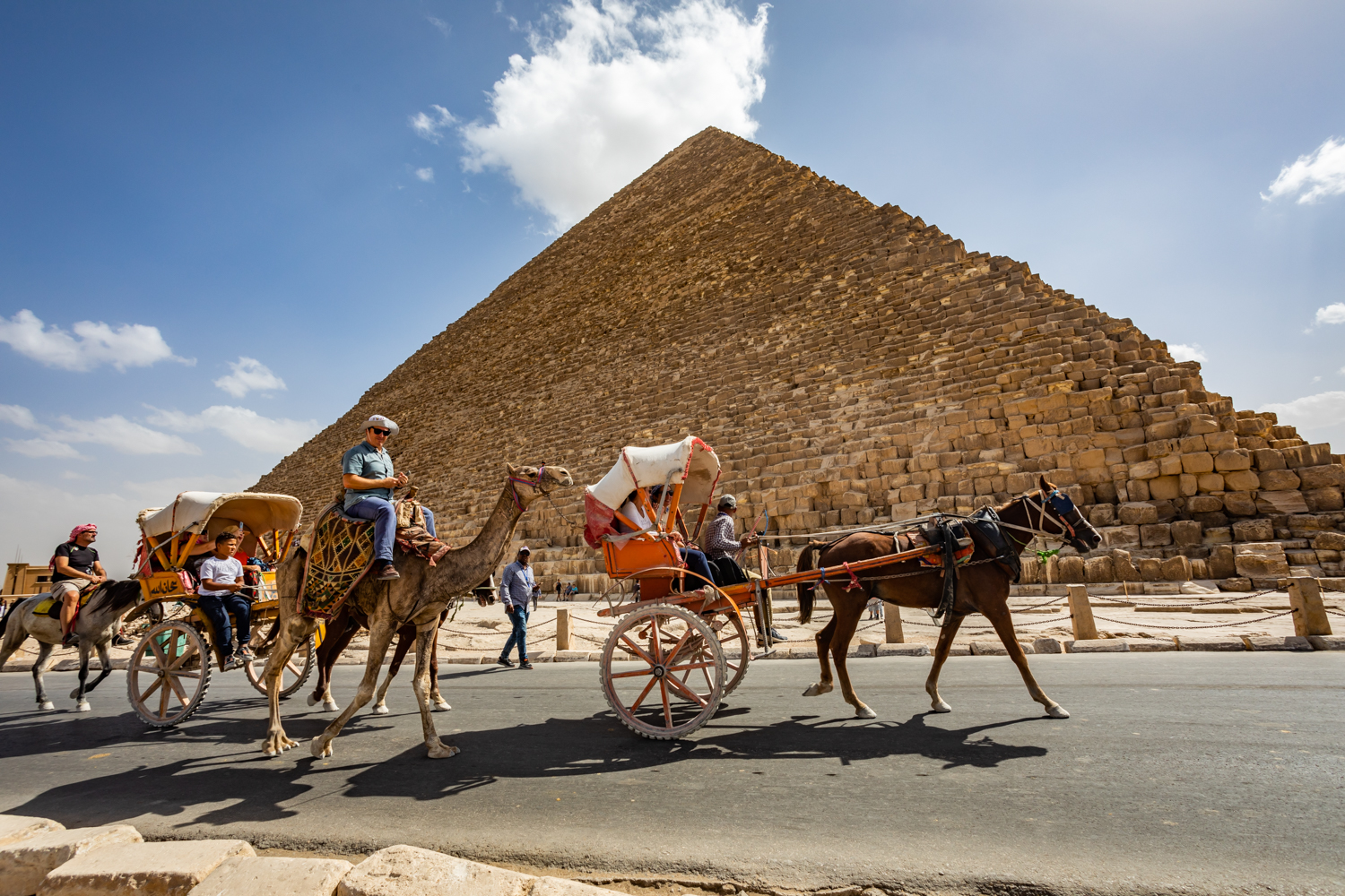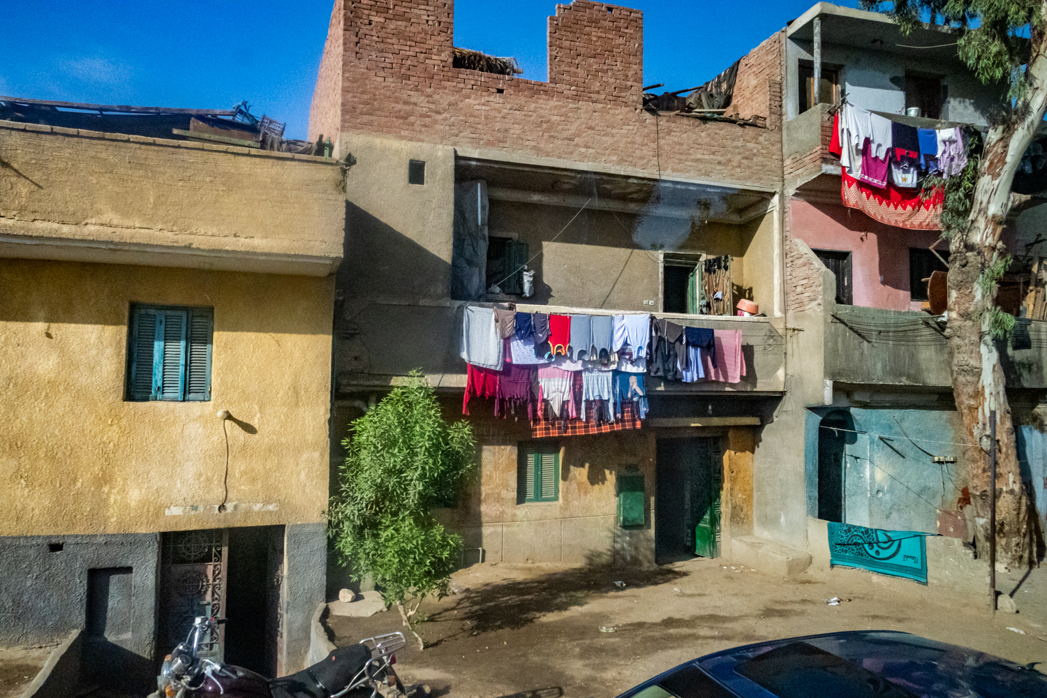 We get back on the bus and are whisked away in Cairo traffic which has to be the worst we have ever experienced anywhere in the world. In the beginning of the trip I likened it to traffic in Peru and Ecuador. But has become increasingly apparent that it is much worse! Not only do lane demarkations mean absolutely nothing because if a vehicle fits between two others, it just drives there. In addition, there are no traffic signals, they do not exist here. Neither do Stop signs or other instructional elements of modern cities. Even to the extent that it is even common to see vehicles driving the wrong way in traffic! Having mere inches between fast moving vehicles is a normal thing here. The horn seems to be the only tool of use for drivers here!