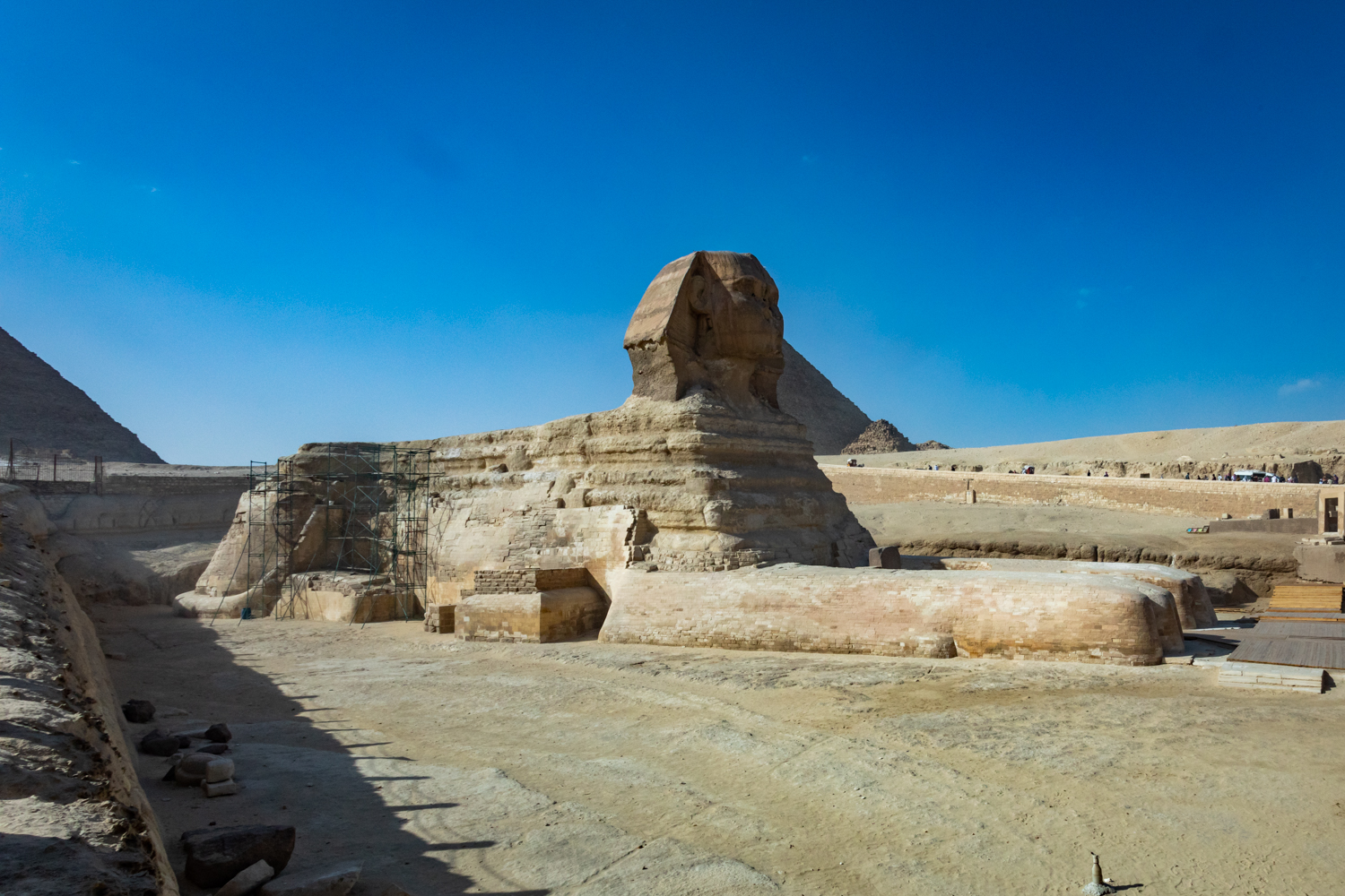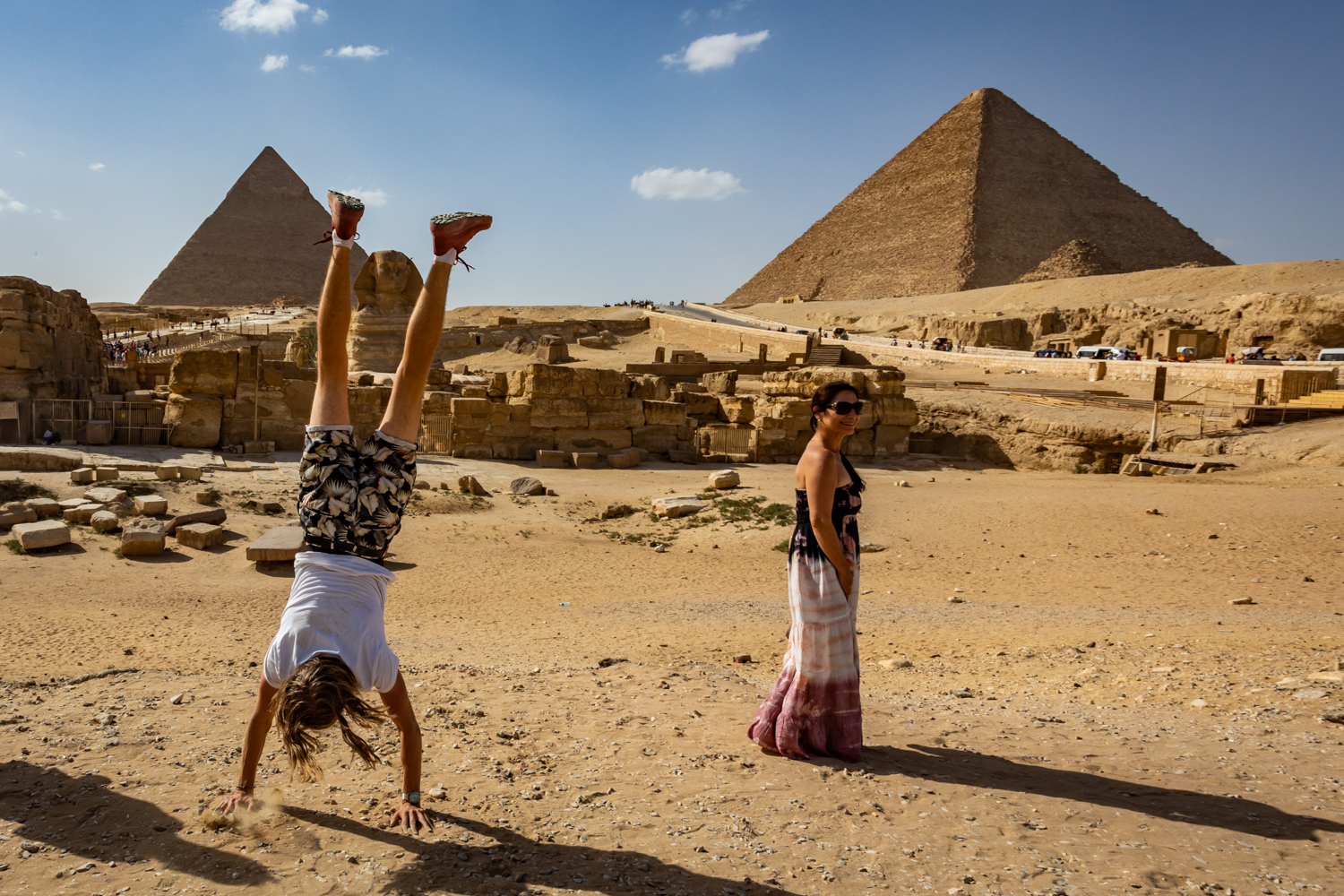 Mo then directs the bus down a side road and before we know it, we arrive at the famous Sphinx and we get out and walk around this fantastic ruin! It is pretty spectacular to be here in person and my camera thanks me! Some tourists even pose in front of it by doing handstands!