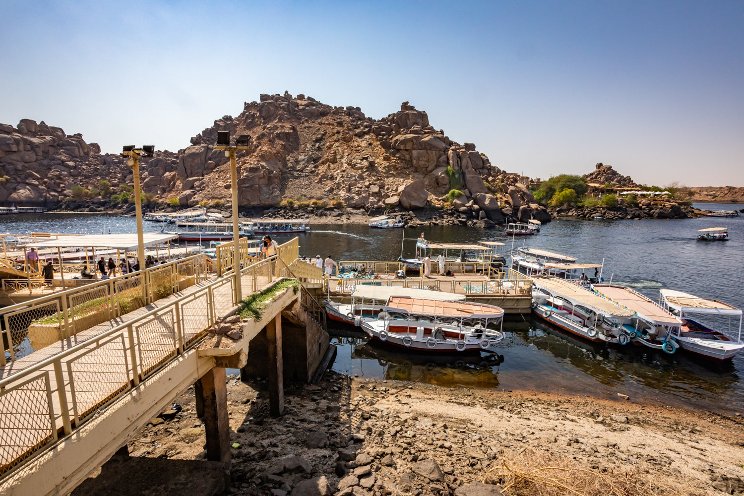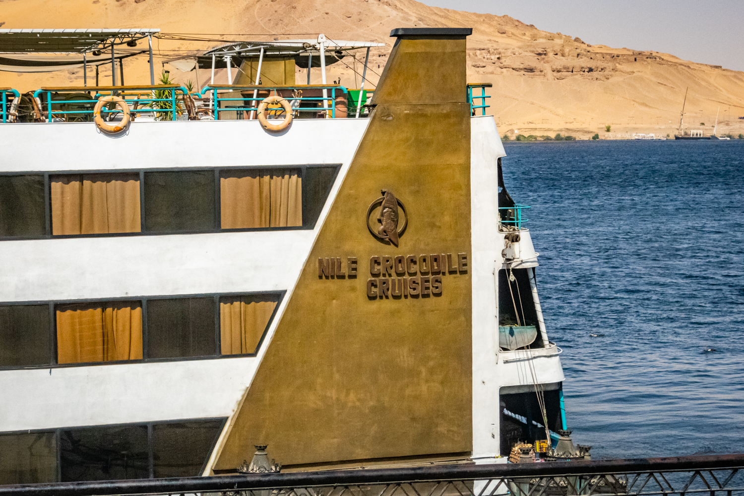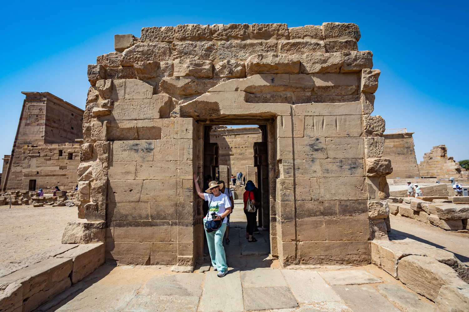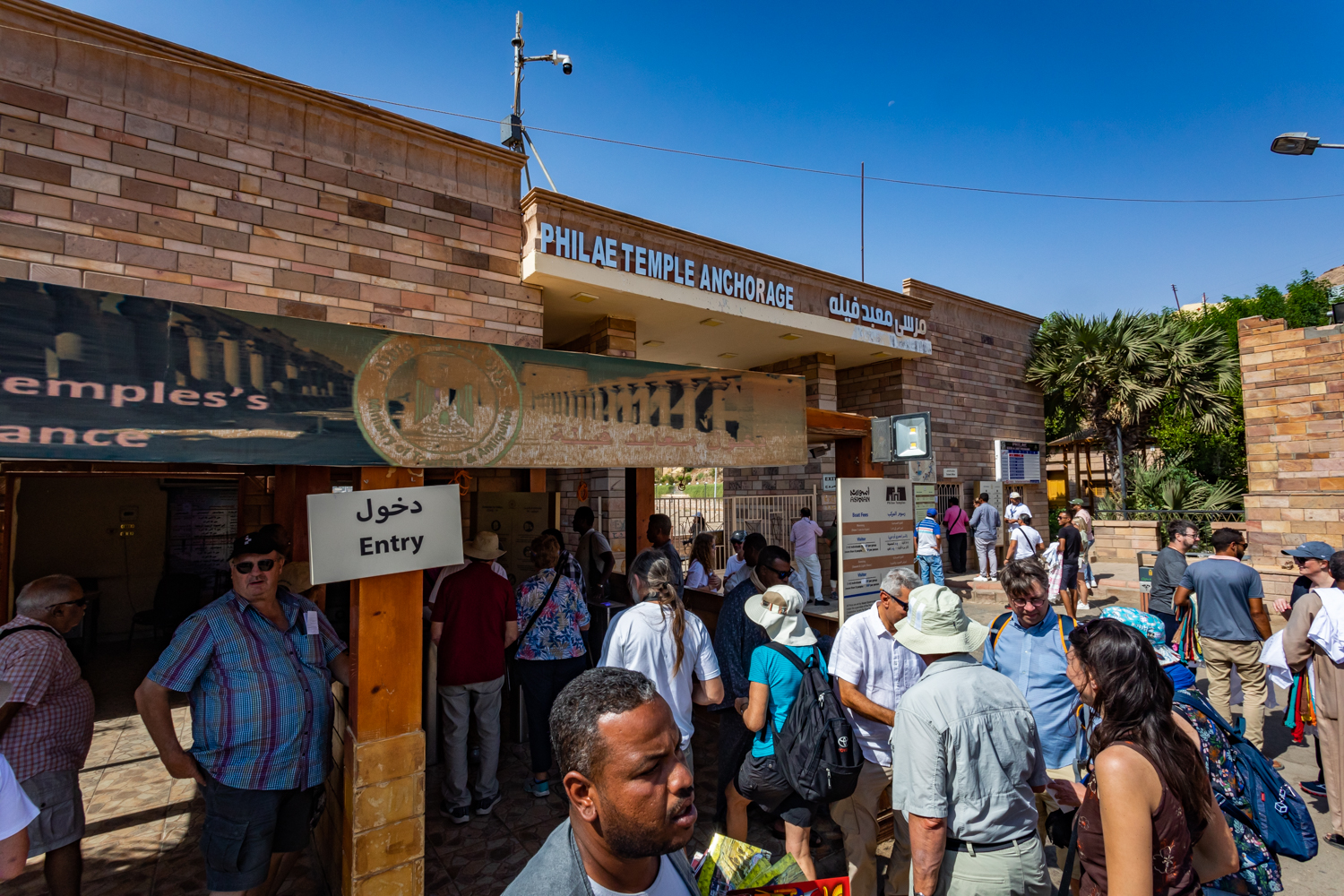 We arrive in Aswan Station around 8 AM and we disembark to a Tour Bus that takes us to a river taxi and we arrive at Philae Temple around 10:30. Mo gives us the history of the Temple and turns us loose for a half hour. Our cameras are once again happy and we photograph the Temple and its Hieroglyphics. At one point it is sad to see that somewhere in history, some religious sects have desecrated some of the symbols as apparently offensive to them by scratching out the faces. This is not a unique thing to this temple but is prevalent in a lot of Egyptian ruins!