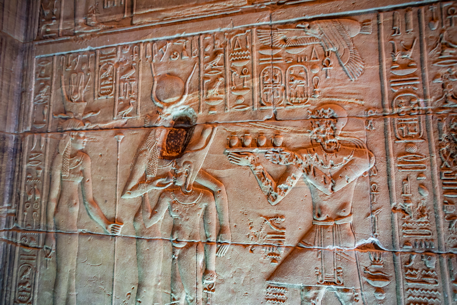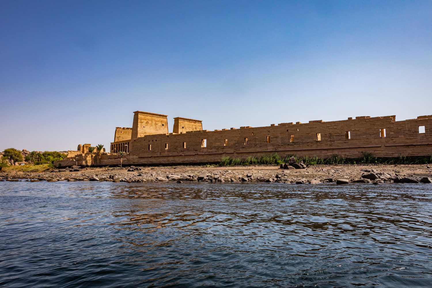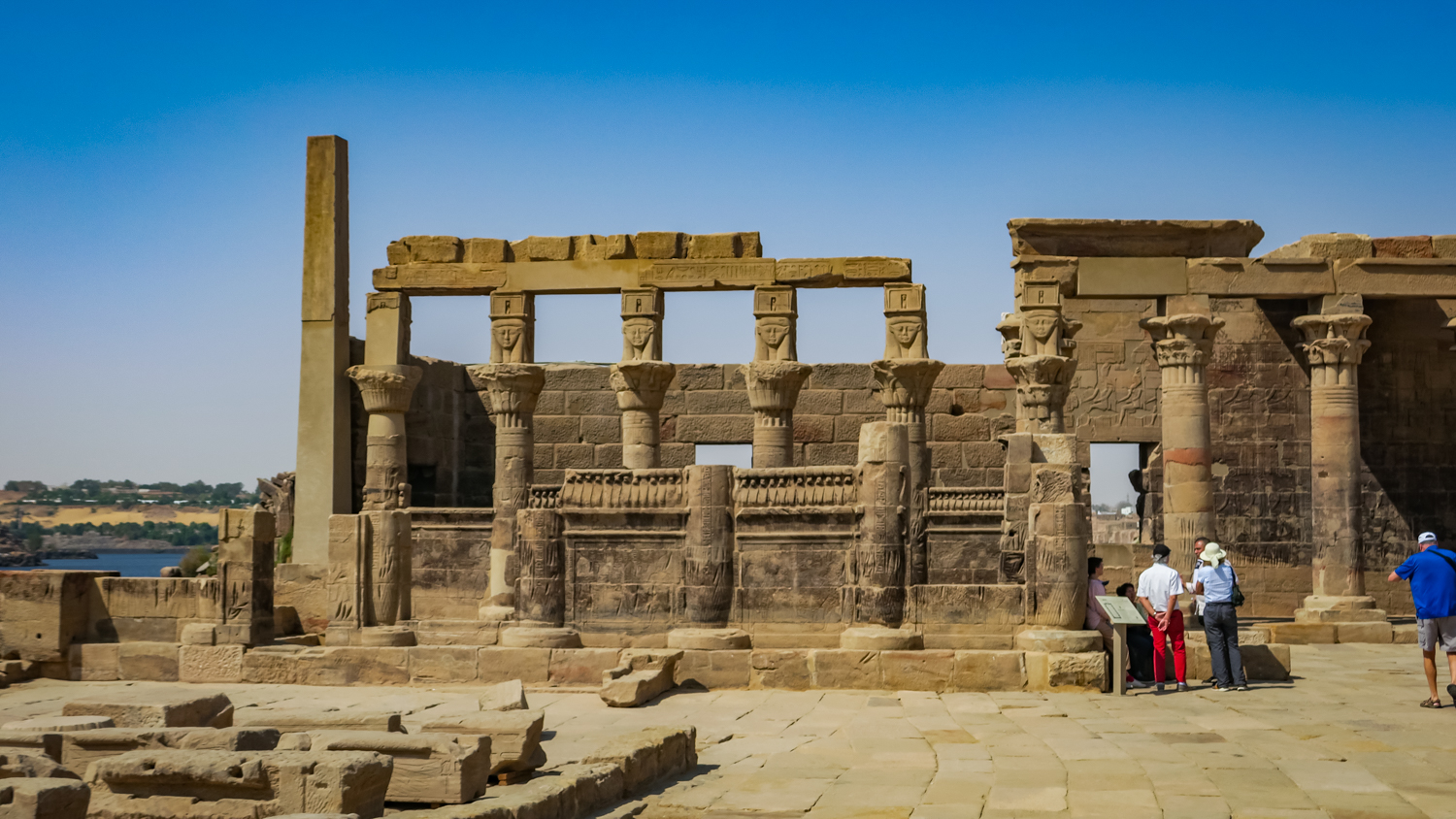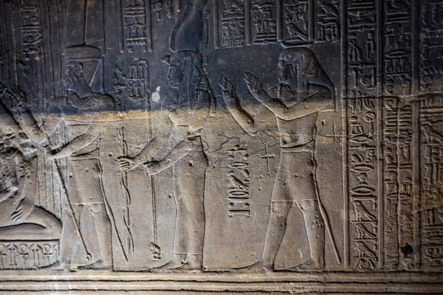 We arrive in Aswan Station around 8 AM and we disembark to a Tour Bus that takes us to a river taxi and we arrive at Philae Temple around 10:30. Mo gives us the history of the Temple and turns us loose for a half hour. Our cameras are once again happy and we photograph the Temple and its Hieroglyphics. At one point it is sad to see that somewhere in history, some religious sects have desecrated some of the symbols as apparently offensive to them by scratching out the faces. This is not a unique thing to this temple but is prevalent in a lot of Egyptian ruins!