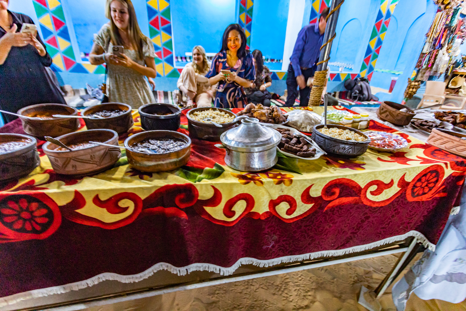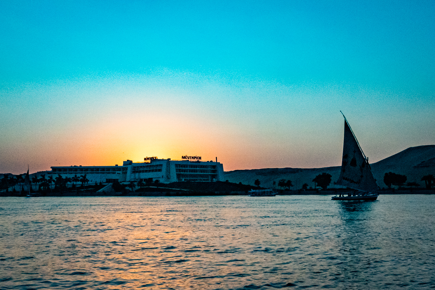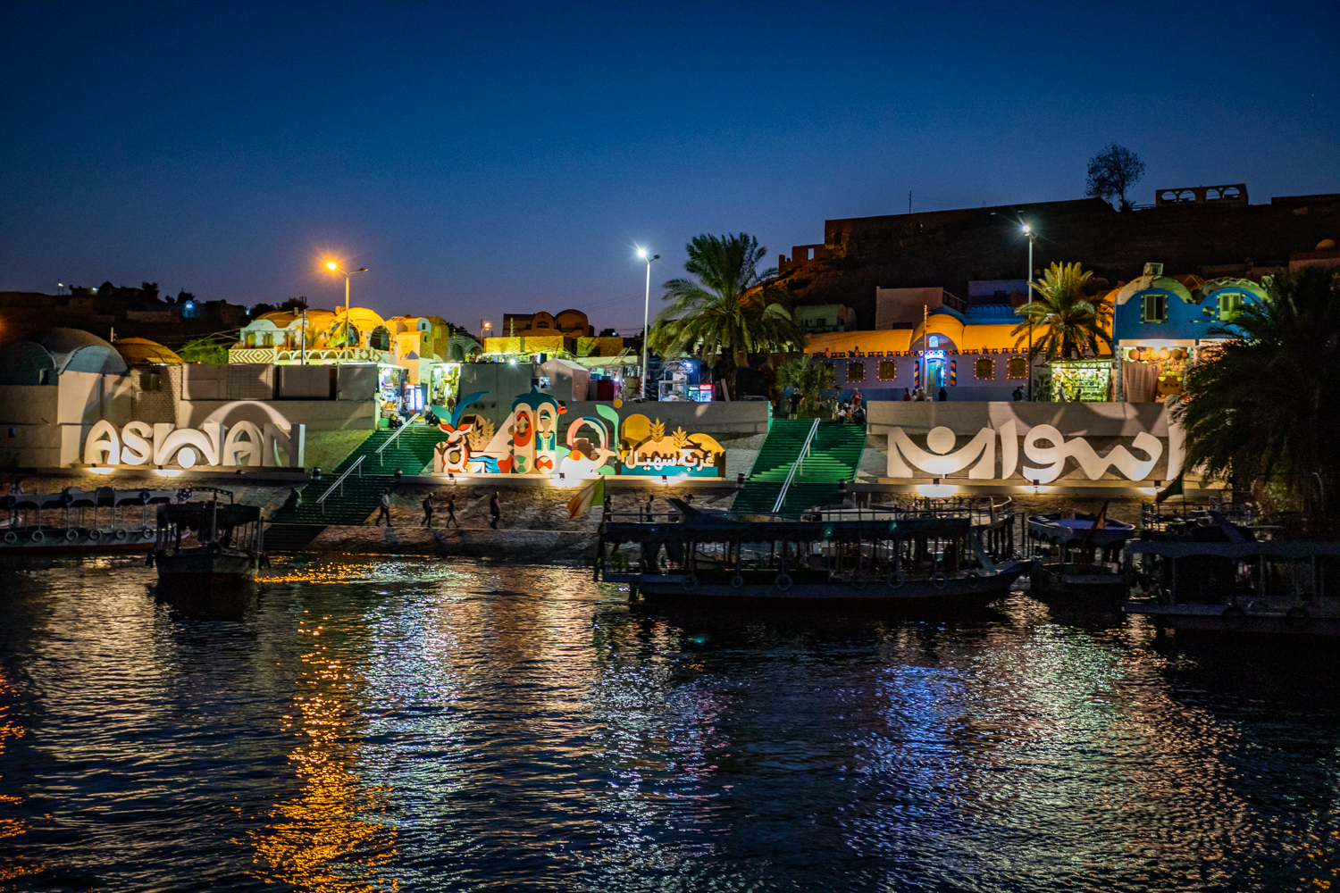 We have a couple hours to rest before boarding another small boat (think African Queen) and head up the Nile for a stop at a Nubian Village for dinner where a family takes us in and cooks a tasty meal! On the way, we get to photograph Sunset on the Nile. Lots of Felucca Boats sail up and down the Nile and we are allowed and encouraged to sit on the roof of the boat!
