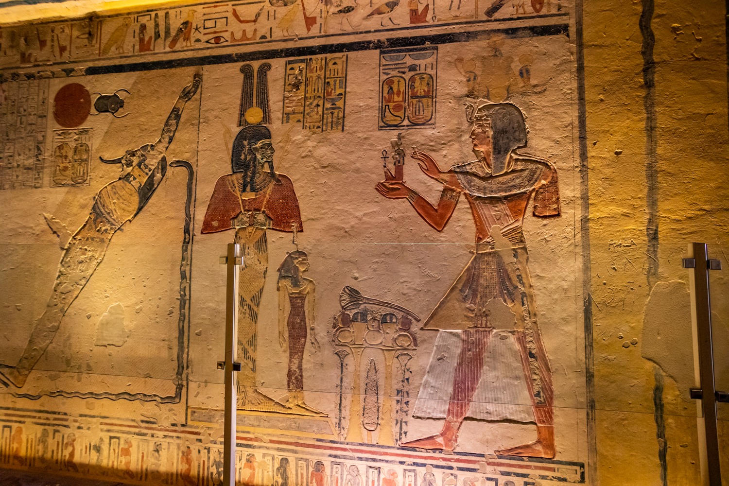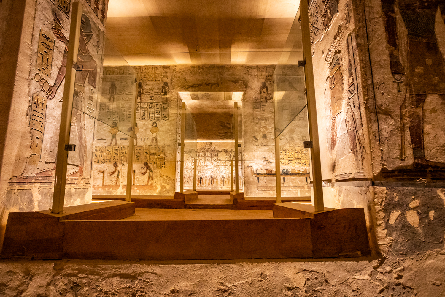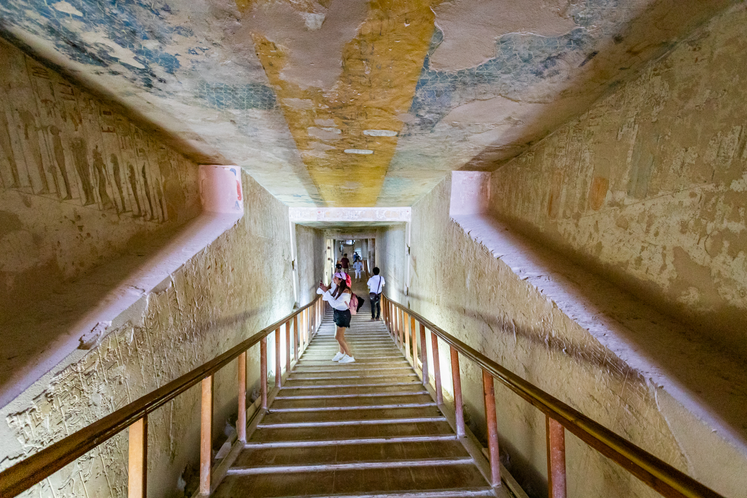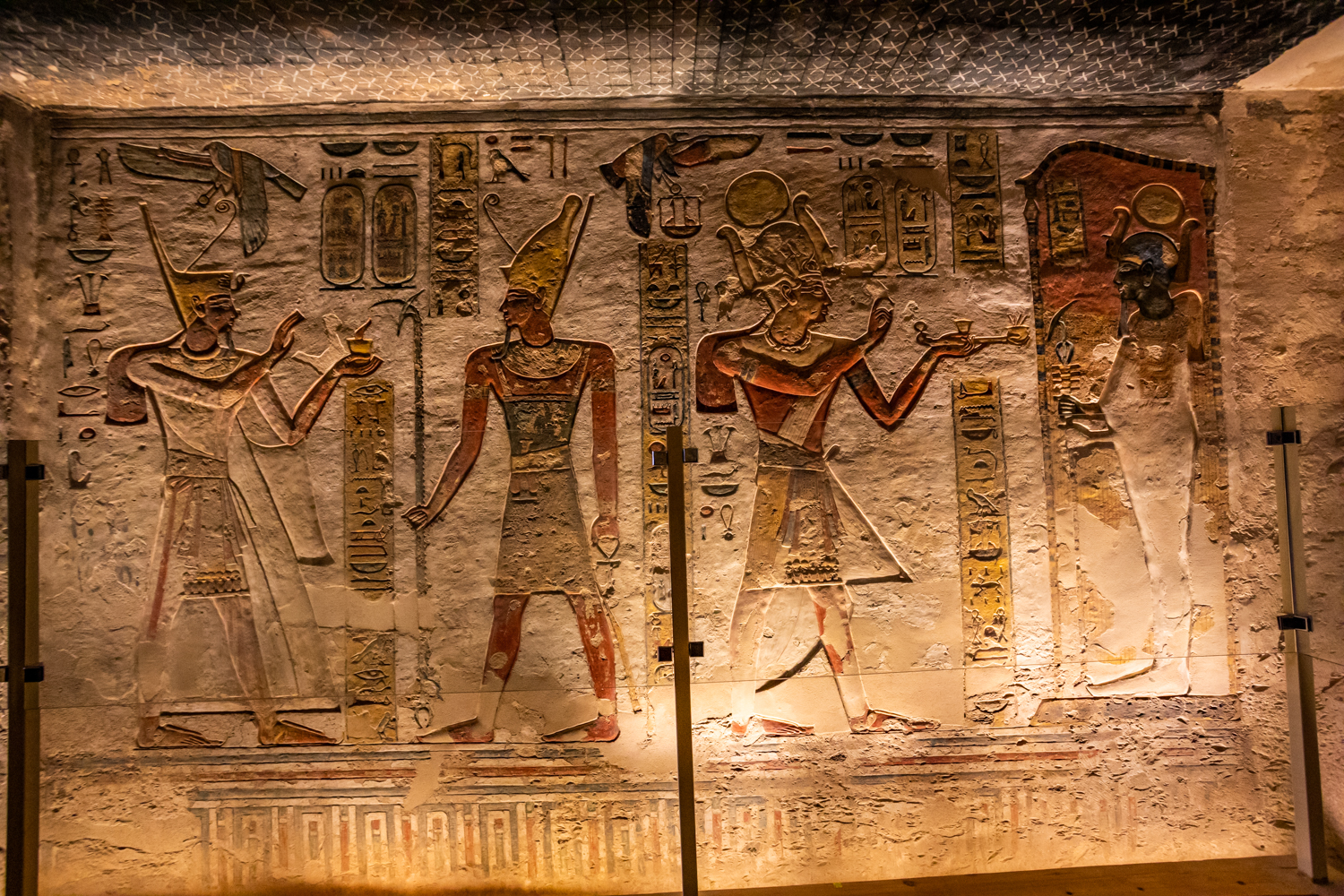 Every tomb but one in Egypt was raided by robbers and damaged or destroyed. The only Mummy ever found intact was that of King Tutankhamun. His Mummy is still here (although I kind of remember hearing that his Mummy went on tour around the world at one time). There is a model here that shows the terrain underground with depictions of how the Tombs are dug into the Valley.