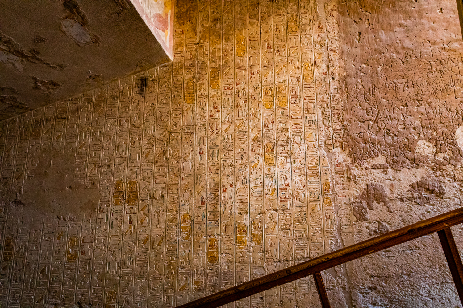 We are given passes that allow us to visit 3 tombs of our choosing for free. Several Tombs, including King Tut’s, cost more. Elee opted to purchase a pass to Tut’s Tomb but I did not. I choose to see the tombs of Ramesses 5,6 & 9 along with Merenptah. Total of 3 Tombs as Ramesses 5 & 6 are in one Tomb.