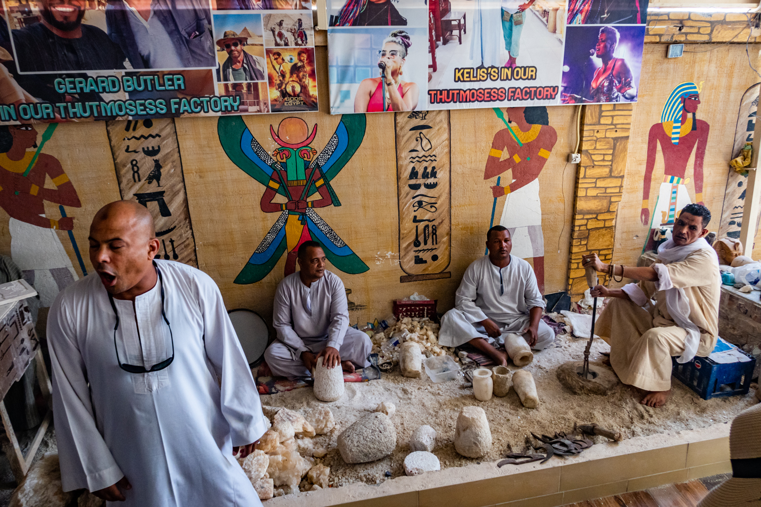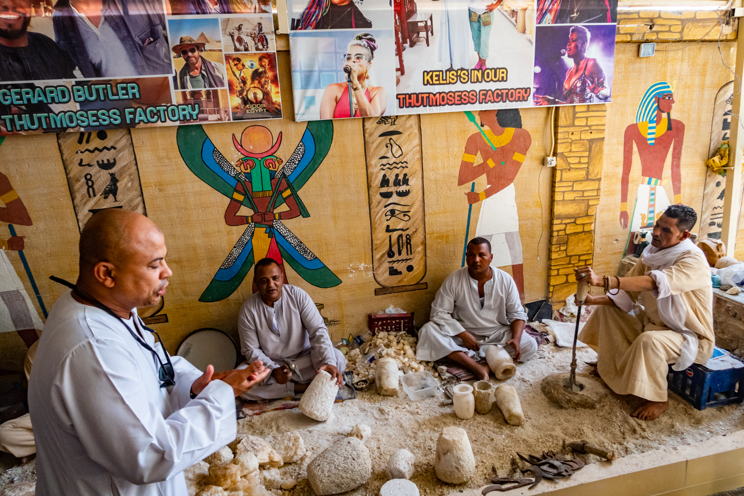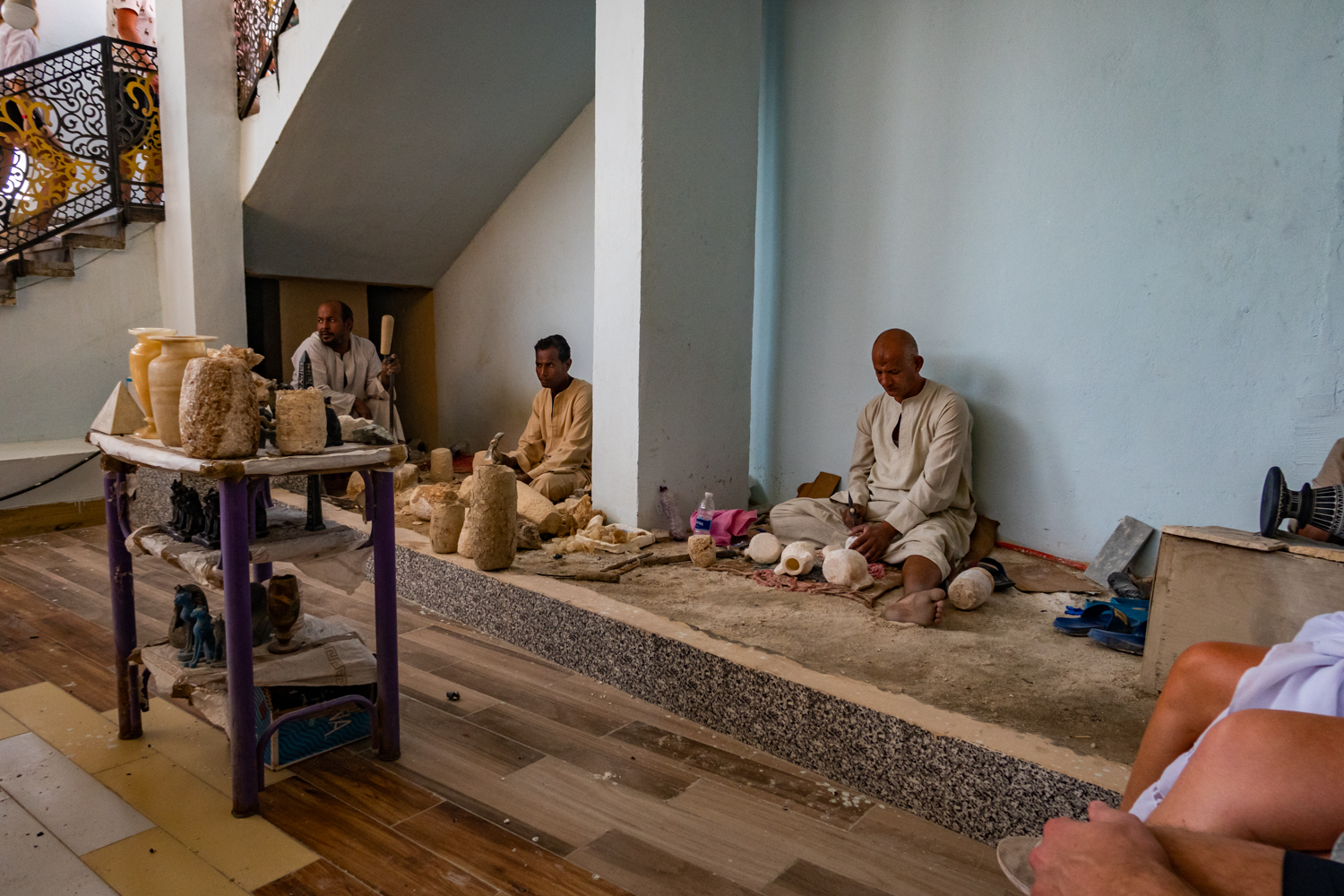 Back on the bus, we next stop at an Alabaster factory where they show us in a comical way how they turn raw ugly stones of Alabaster into gorgeous display pieces! We end up purchasing a couple pieces.