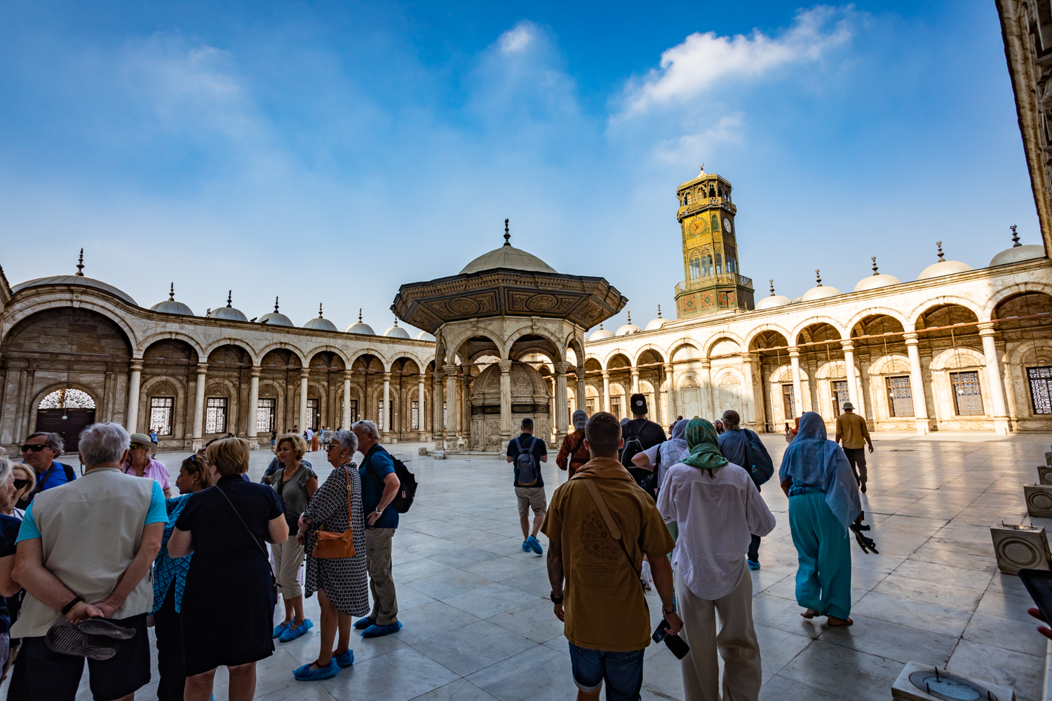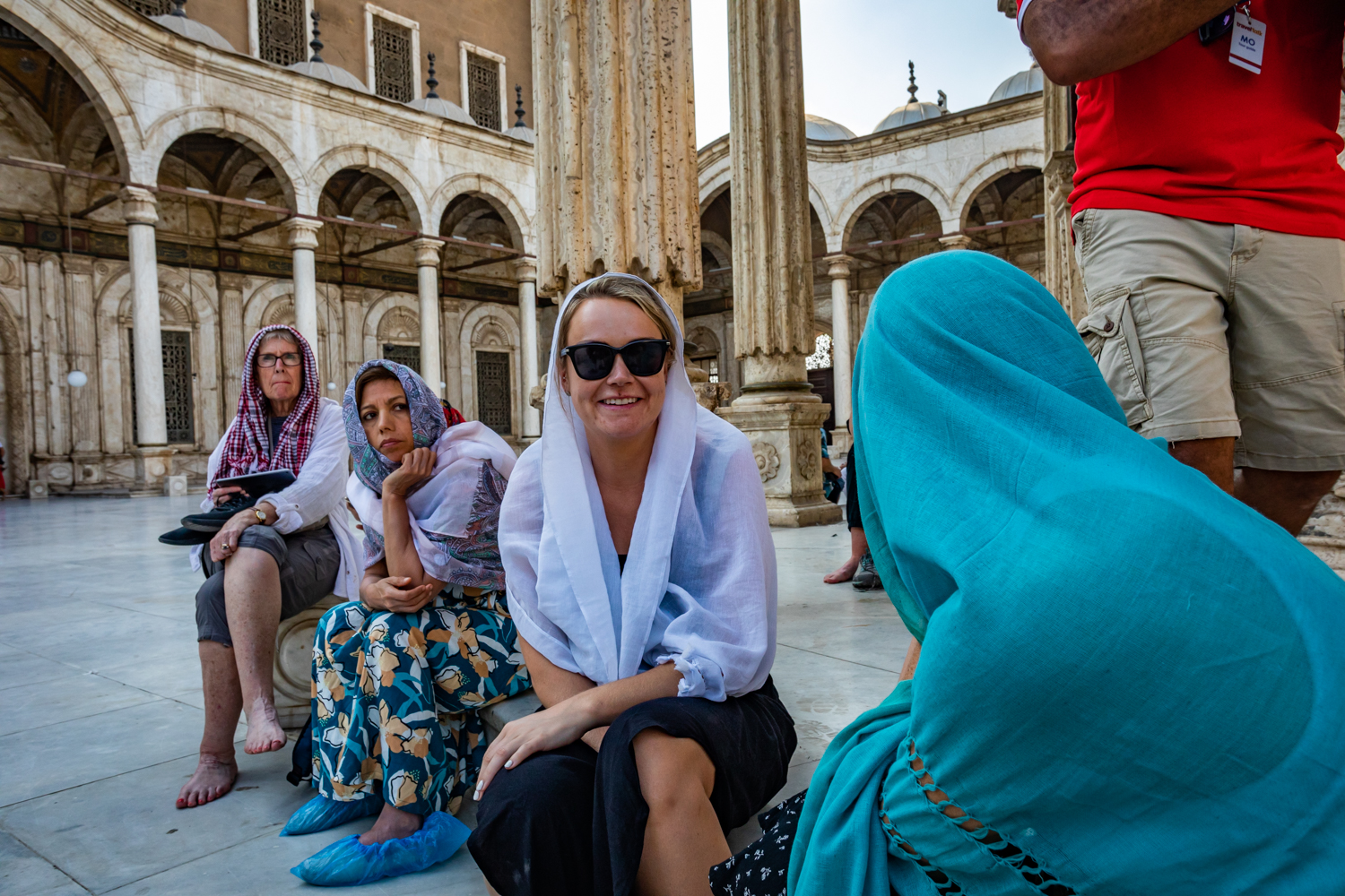 We disembark in Giza and board a bus for Cairo. First stop is a Mosque named Salah Al Din Citadel. Quite beautiful in its own right, this ancient building does not disappoint when it comes to grandiose and a sight for our poor camera lenses eyes! All the ladies on our tour are cautioned to have their heads covered which they are all prepared for. Every time I put my camera down it yells at me and says there is more to point at! So it keeps me busy throughout the area.