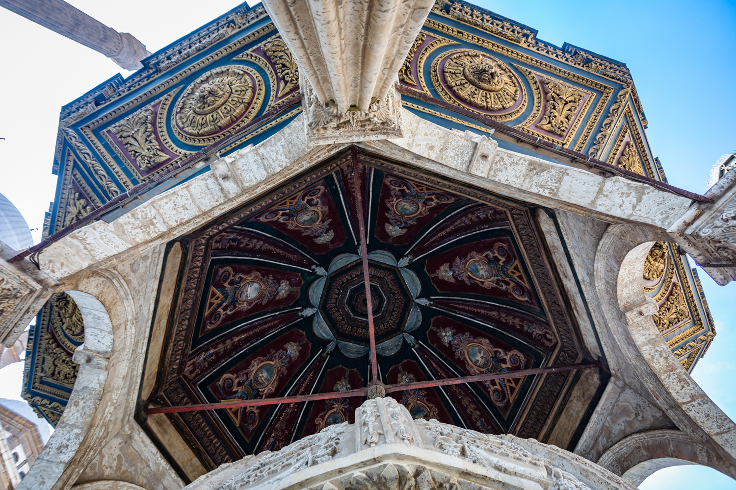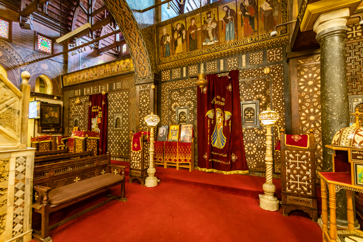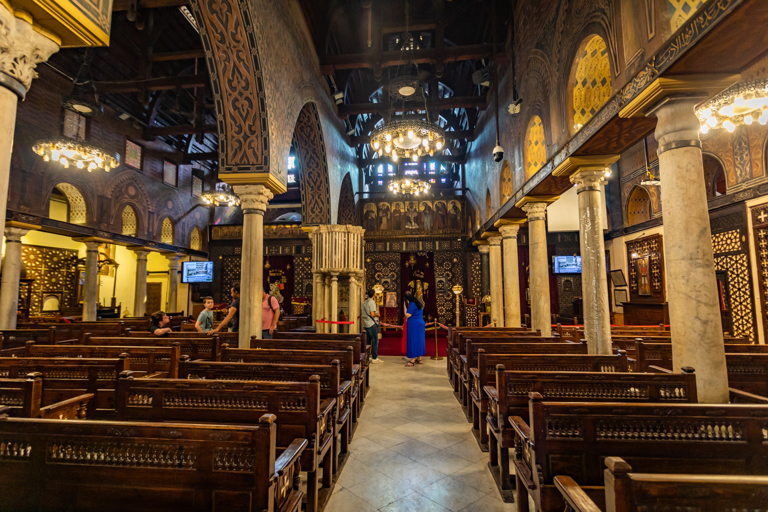 Then it’s back on the bus and we stop at a Coptic Church called the “Hanging Church”. While inside here, we can occasionally look down through the floor several stories to see what’s below us!