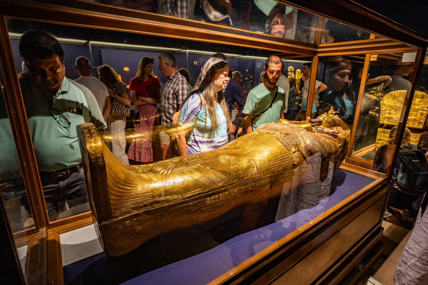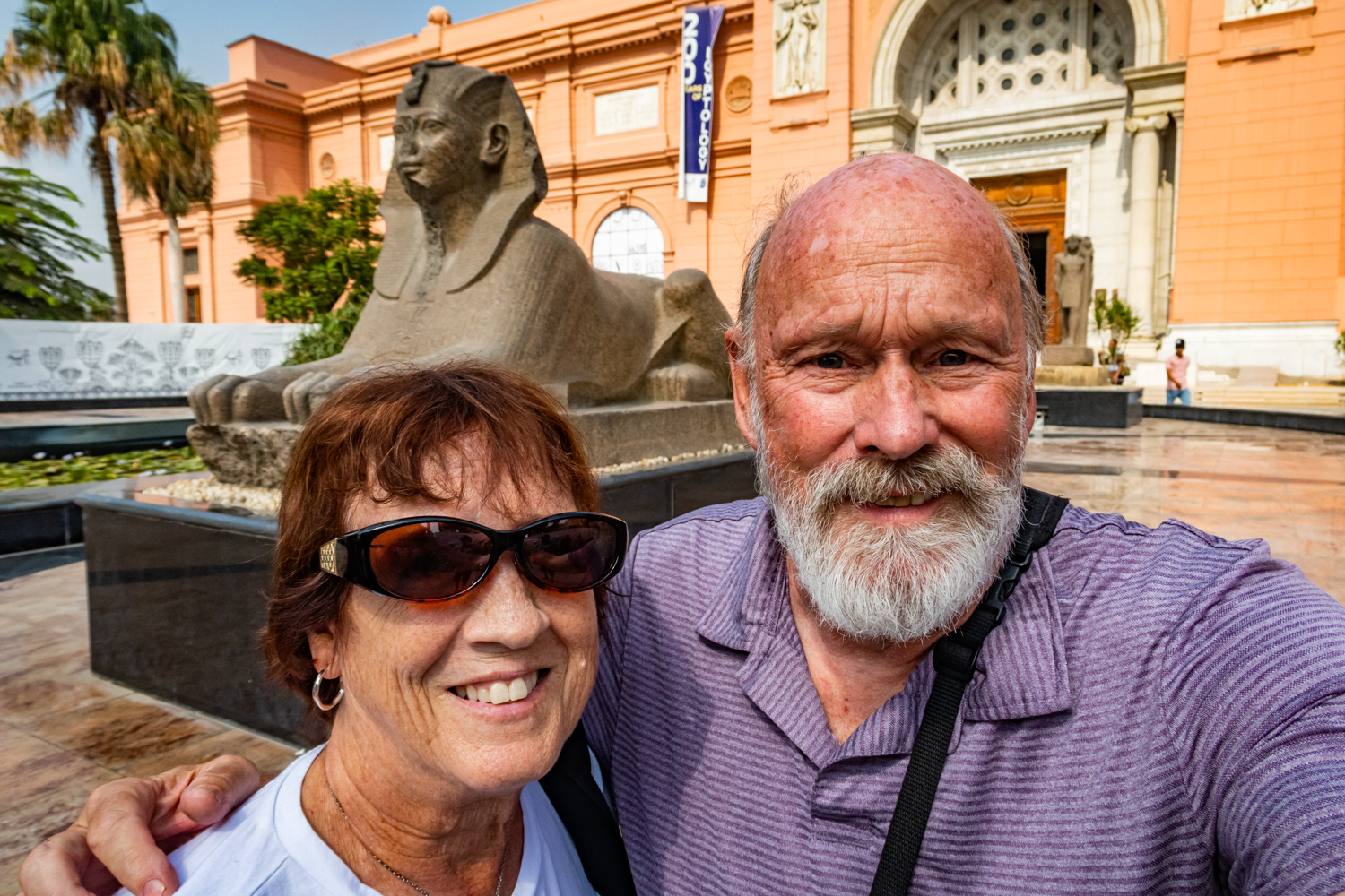 Next stop is the Cairo Museum where hundreds of ancient antiquities are to be seen. There is a whole section on King Tut that is quite interesting including both inner and outer golden sarcophagi! Many opportunities that our cameras take total advantage of as we tour the museum.