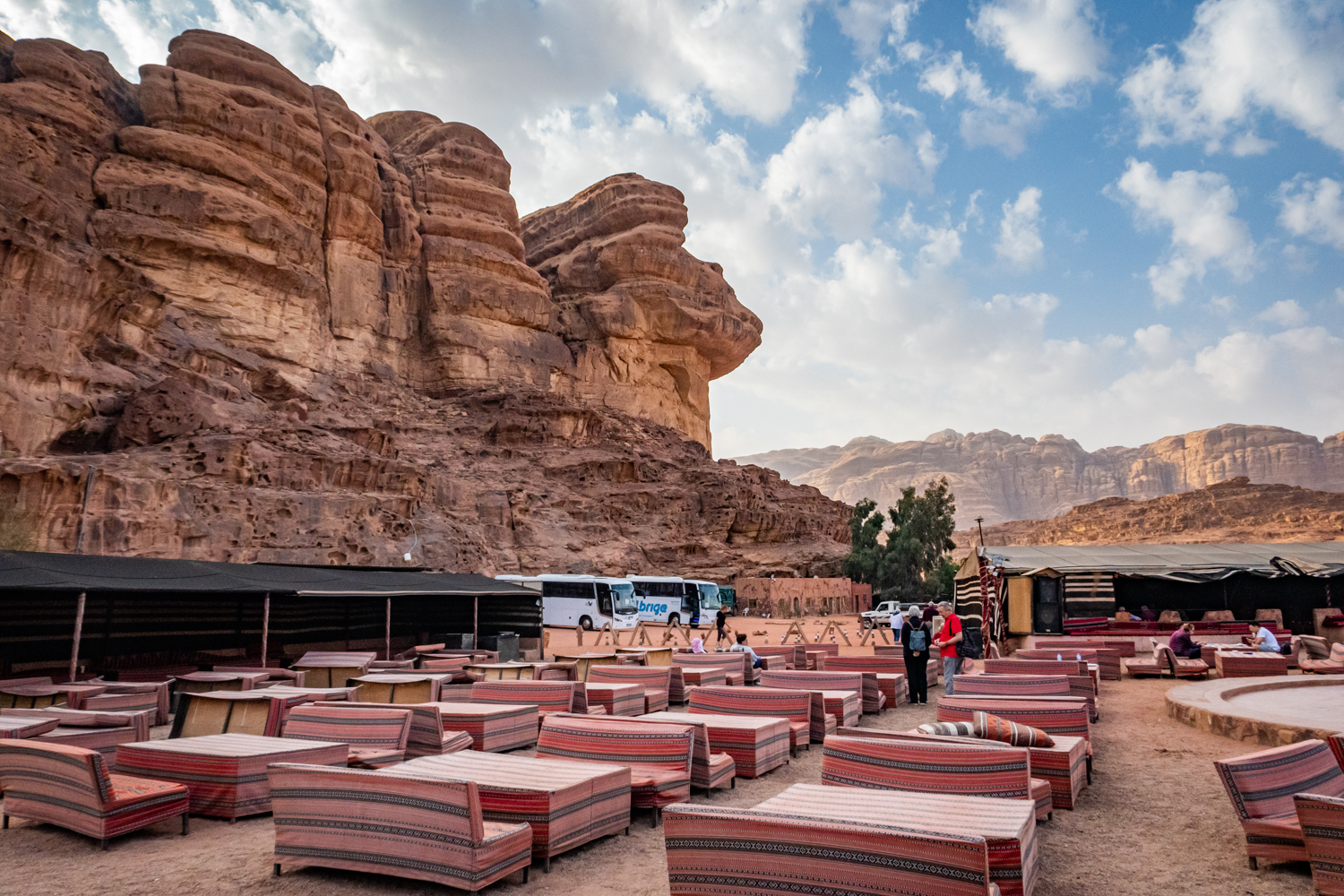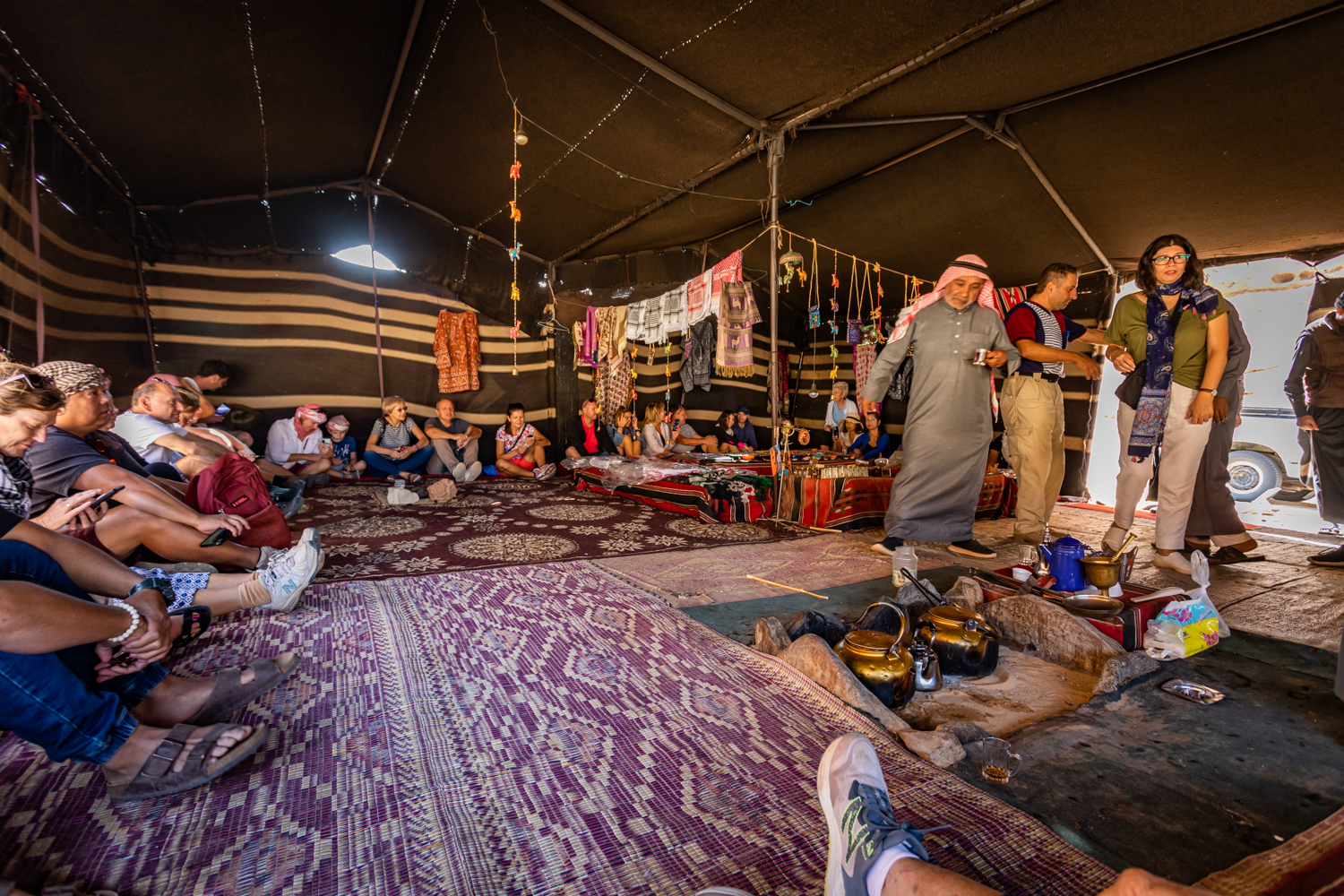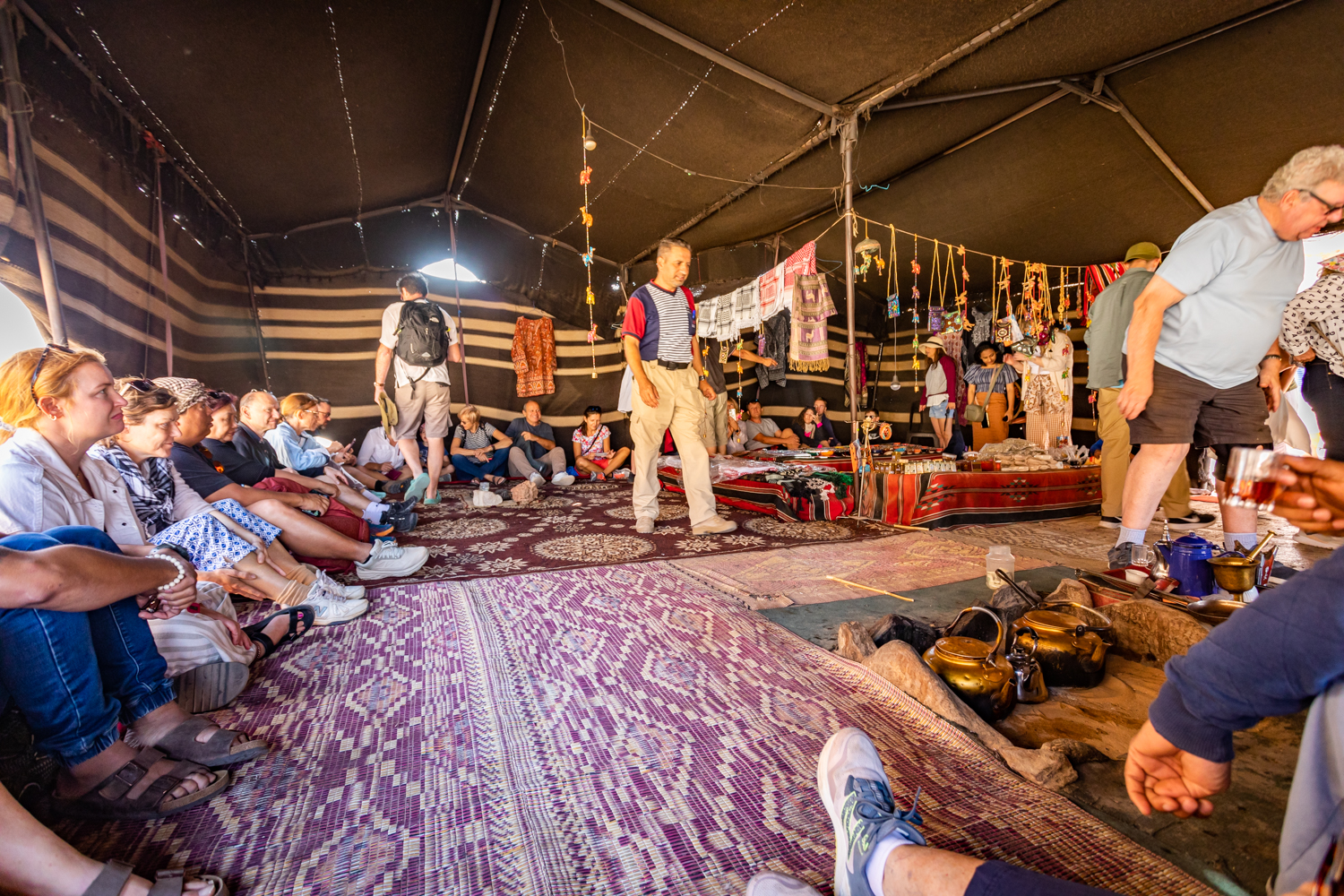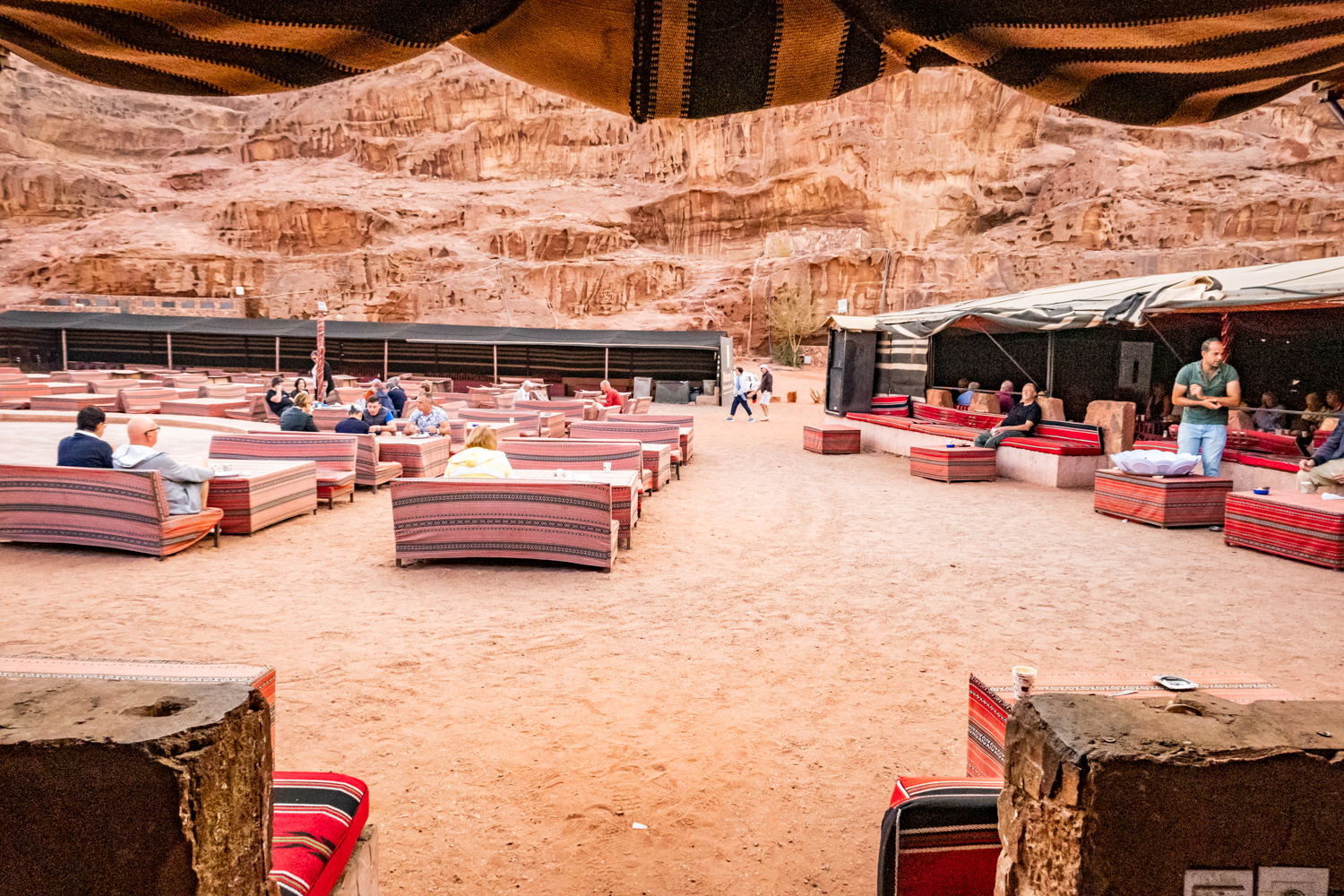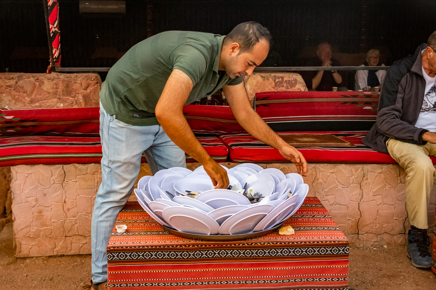 Today is a busy day! We awake and get breakfast in the Bedouin Camp and have a little time to take some photos around the Camp. Fun note as to how they handle the dirty dishes and carry them away! And fabric covers everything!