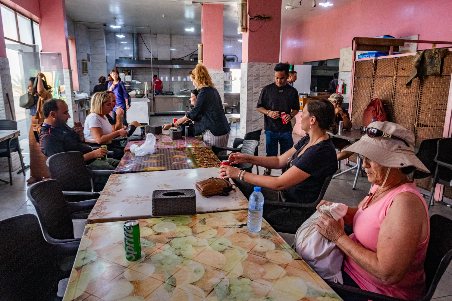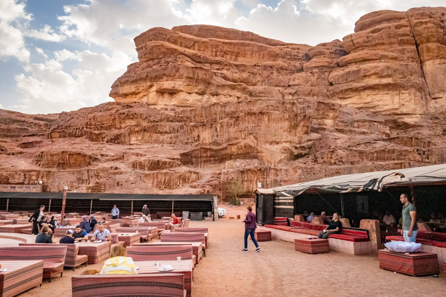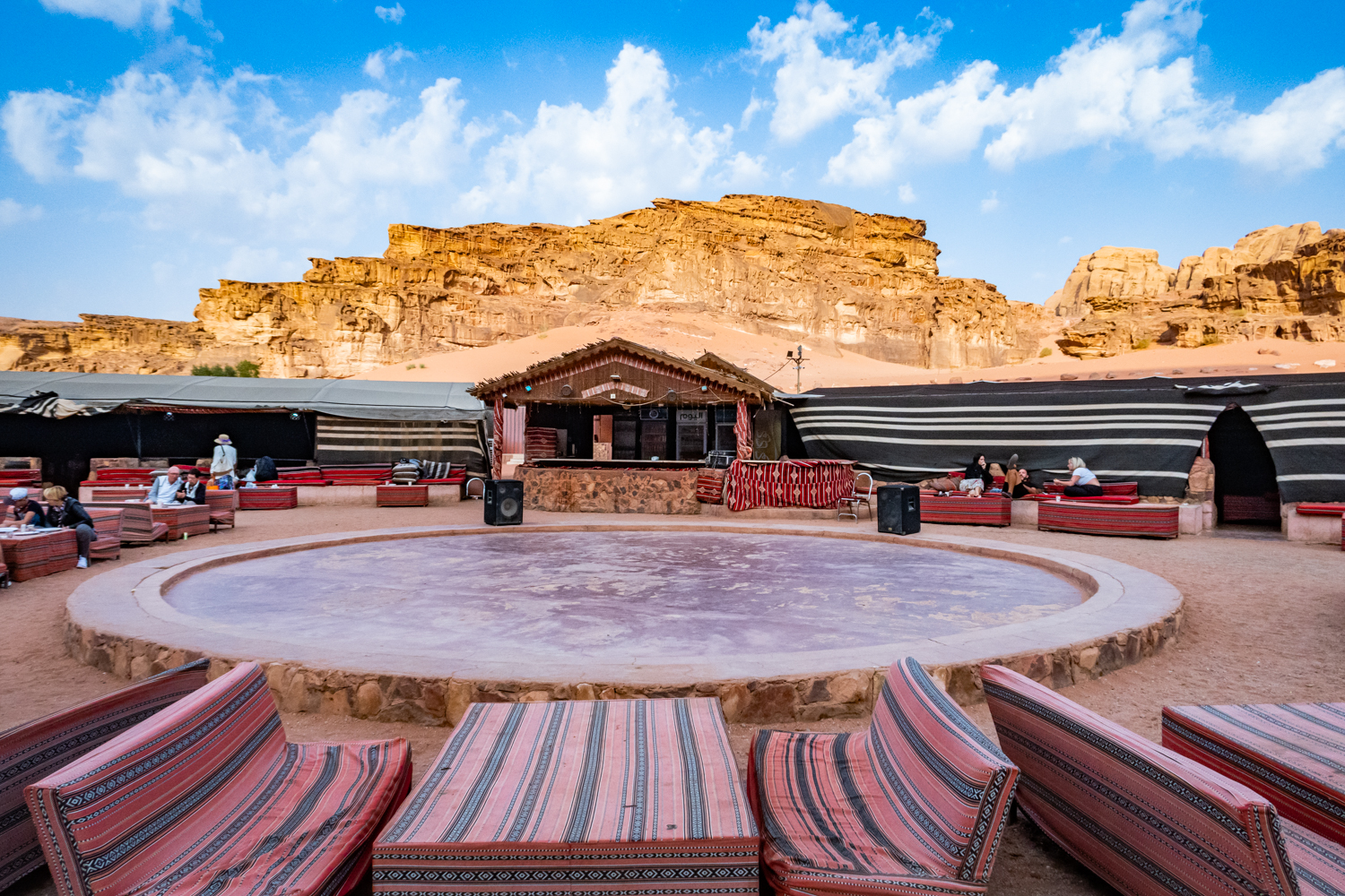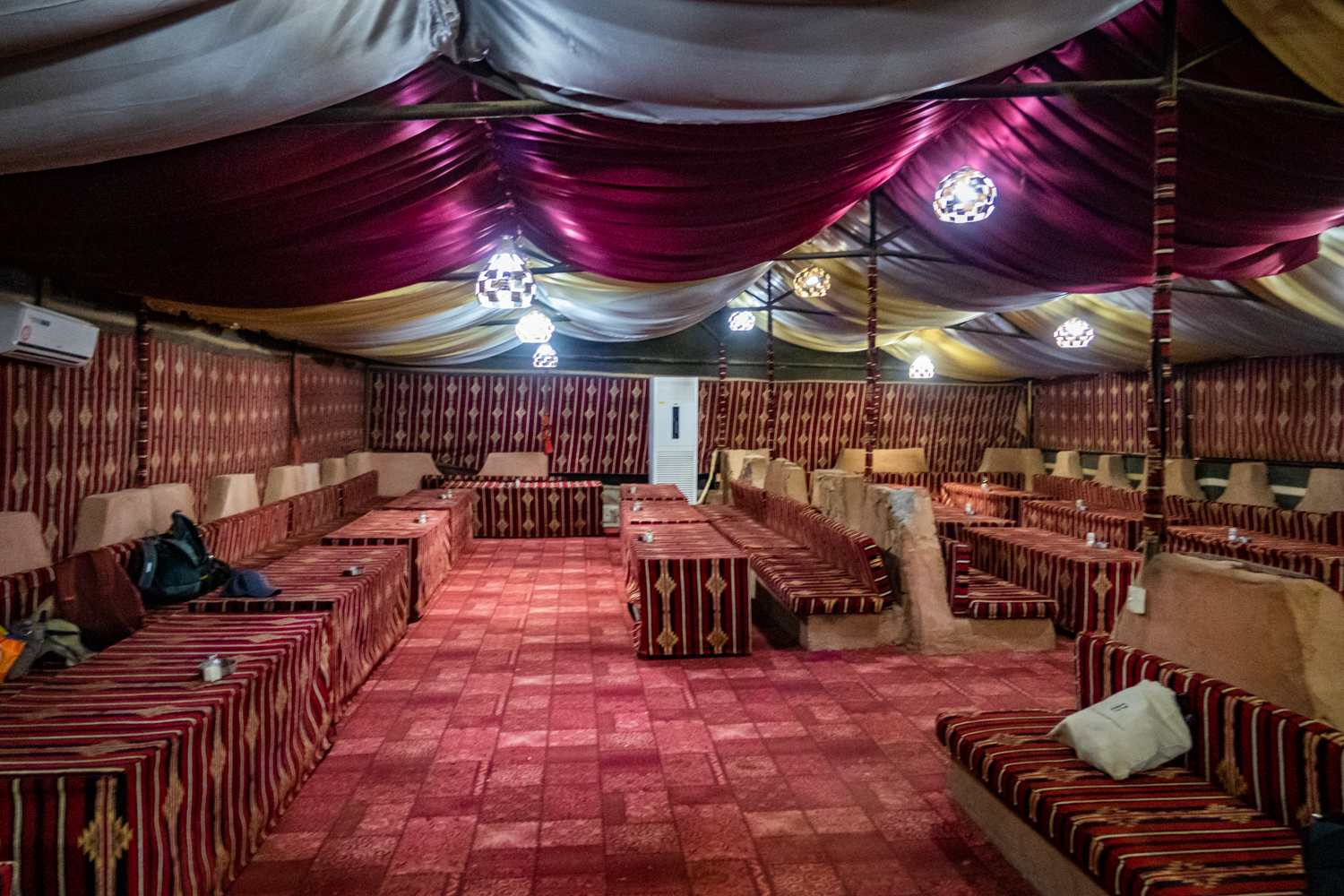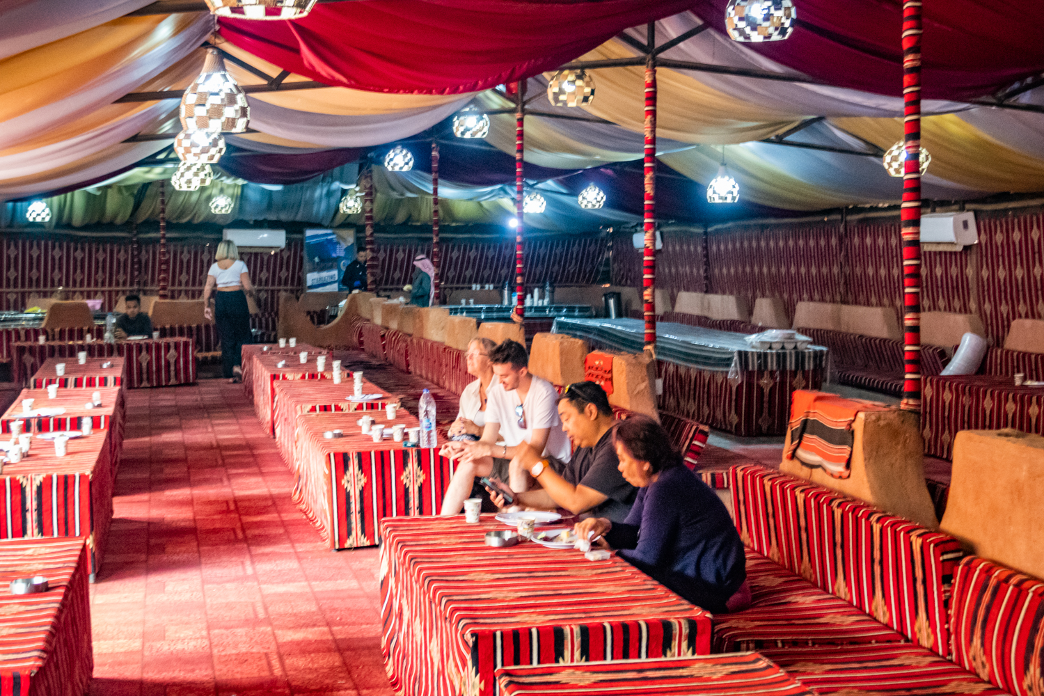 Today is a busy day! We awake and get breakfast in the Bedouin Camp and have a little time to take some photos around the Camp. Fun note as to how they handle the dirty dishes and carry them away! And fabric covers everything!
