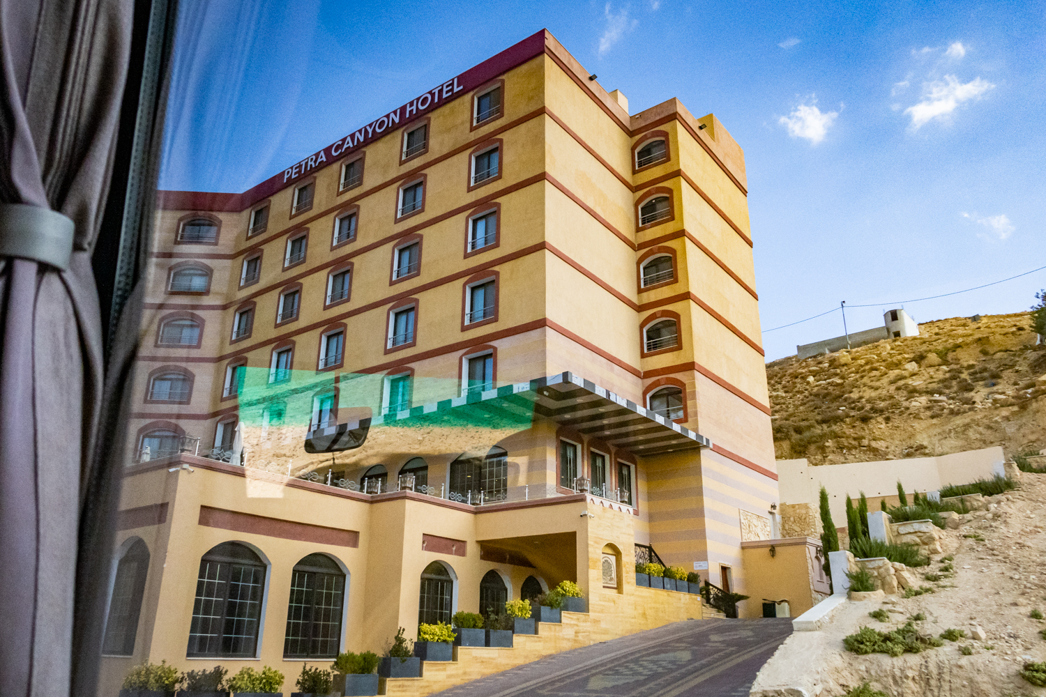 On the way to our next hotel, we stop at an old train station. Any of you who watch The Amazing Race might recognize it from a few weeks ago as they had an episode in Jordan! We are given 2 hours to freshen up at our hotel for the next 2 days, the Petra Canyon Hotel, easily a 5 Star Hotel but slated as 4. and rest before boarding our bus again for dinner and it is good! I have Lamb Sawany, a lamb type stew, and Elee has fish.