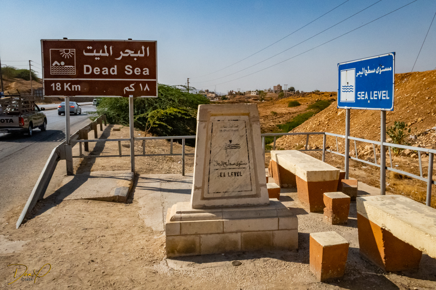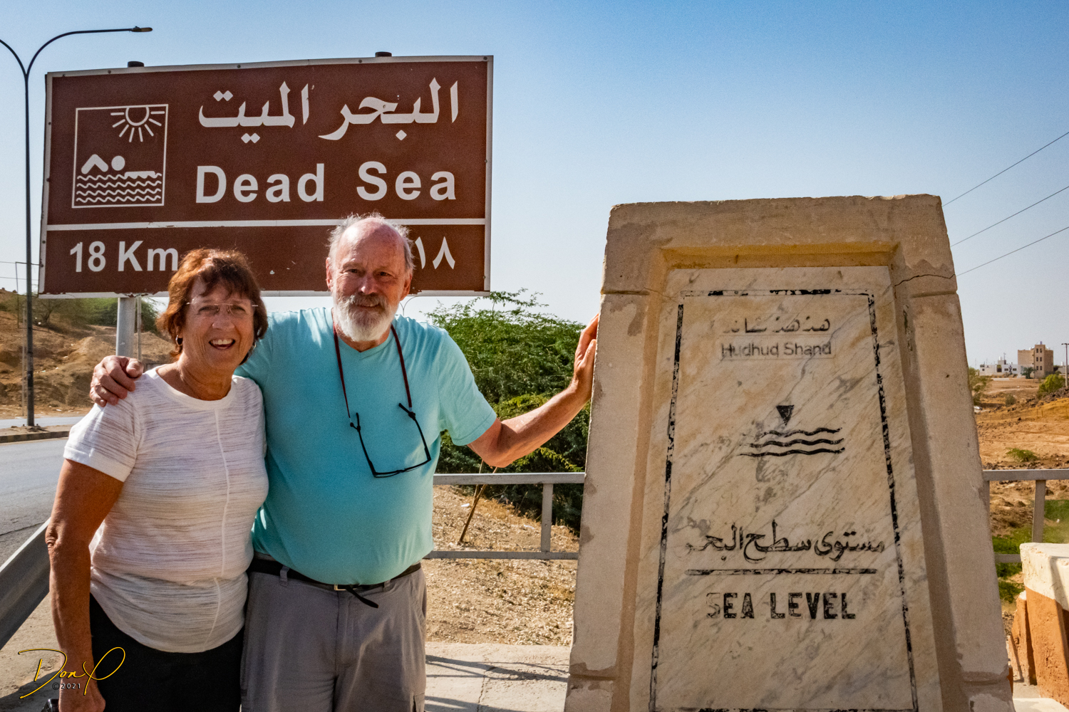We have a 4 hour drive this morning to the Dead Sea. It is time for this adventure that we have been waiting for. The bus stops for photos at the Sea Level sign. The Dead Sea is 436 Meters (1440 feet) below sea level, the lowest point on earth!