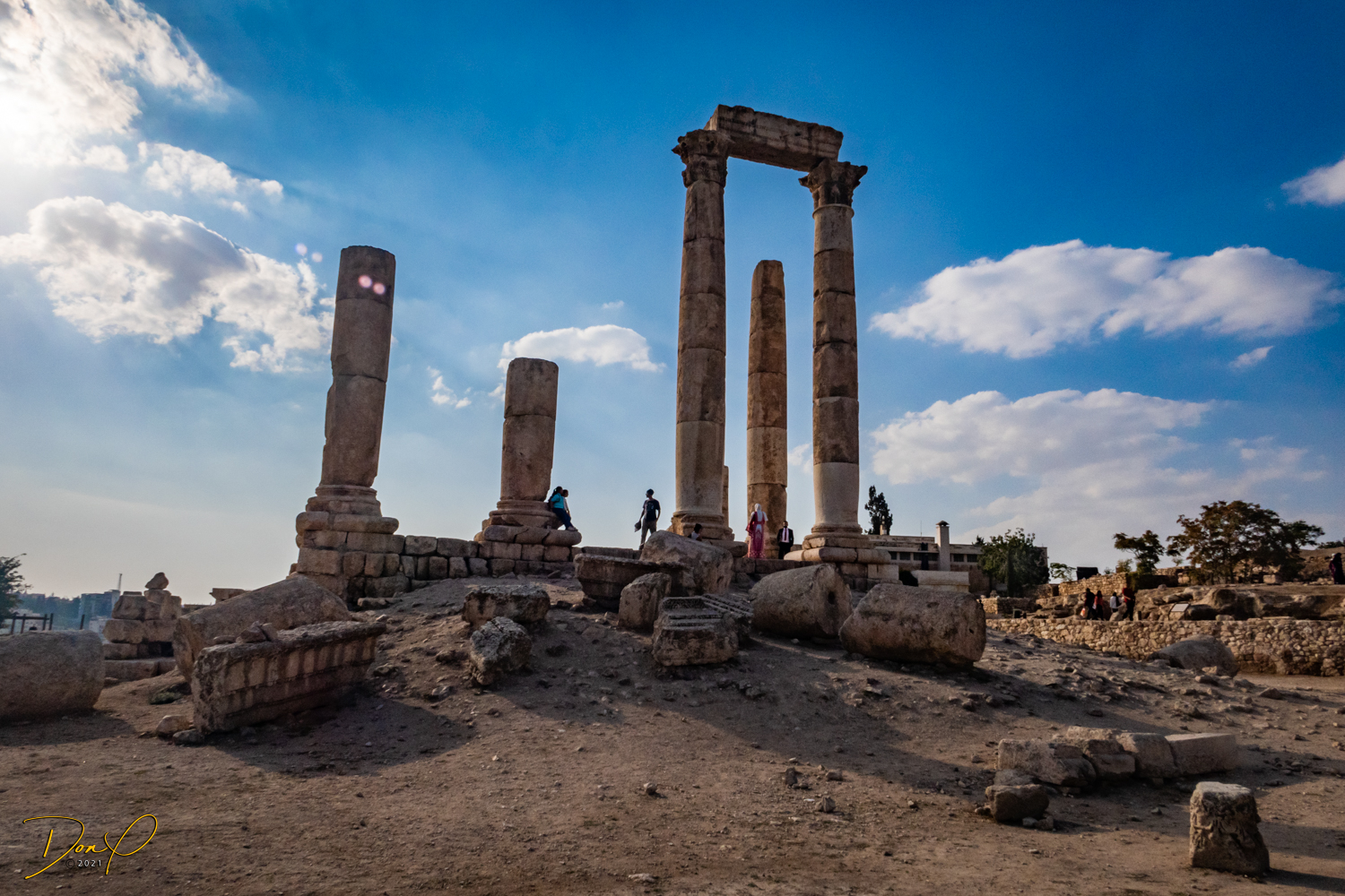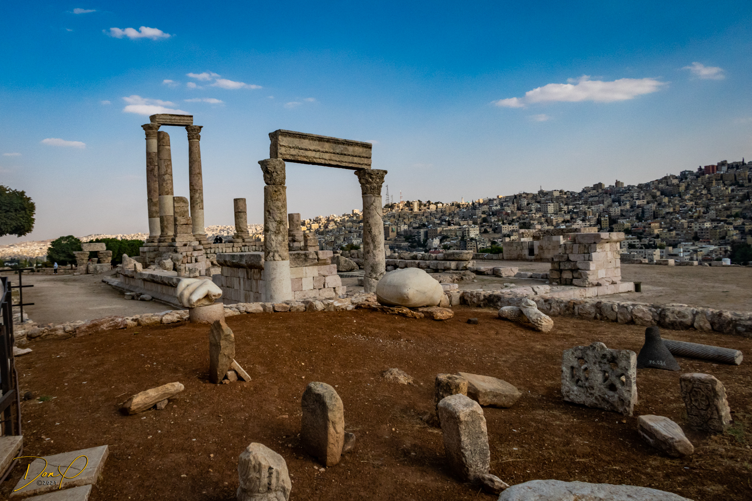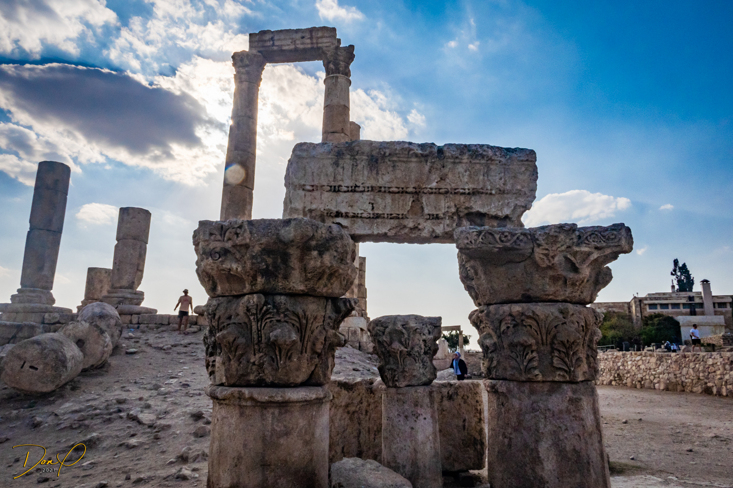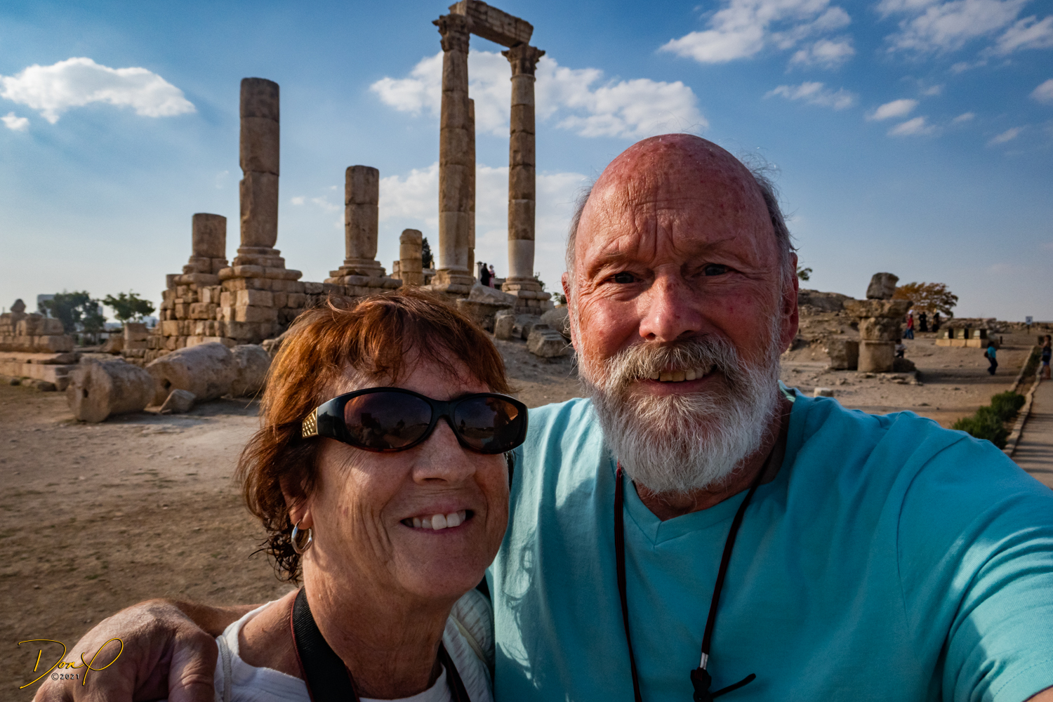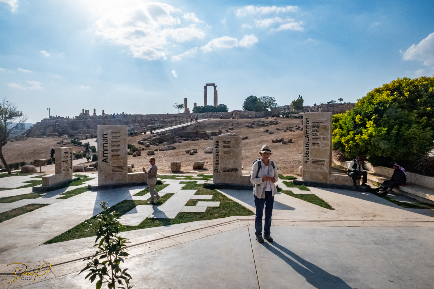 Lunch is provided for us at the hotel and it is a delicious buffet of Jordanian food. We are not staying in this hotel so we board the bus again and head into downtown Amman. Bilar takes us to the Amman Citadel, another ruin where our cameras are in their happy place again!