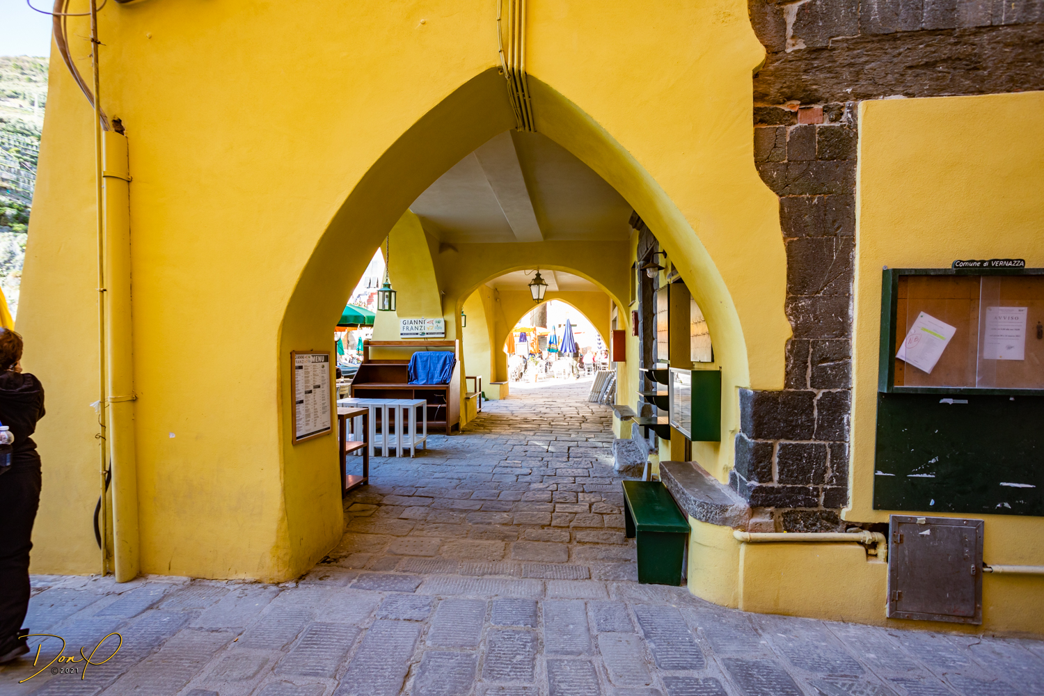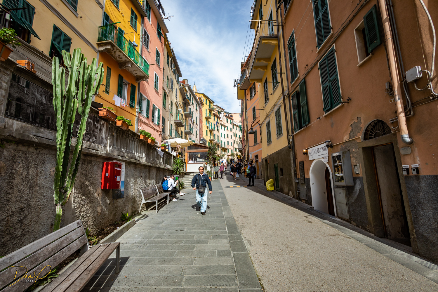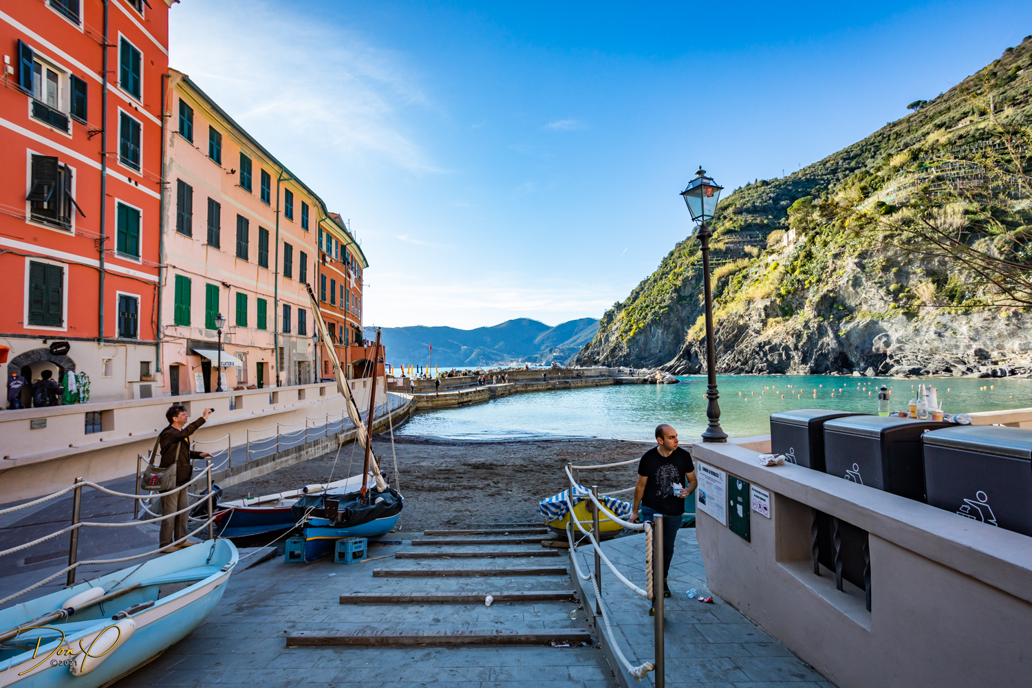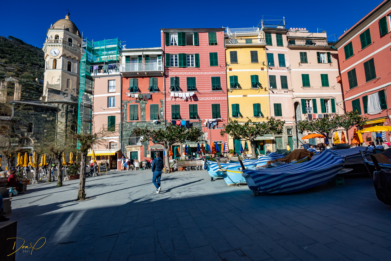 I make my way down and back up to Elee and I take some shots that she has of the other side. Then we work our way out of the Marina and back to the train station. We have the schedule figured out by now and we ride the train to Vernazza next. This is another Village that we are told has good views. We disembark and the trail is clear. Walk downhill. Picturesque buildings all the way! The views are fabulous as we walk down. We take our time to try and help Elee’s knees. I see Tylenol in both of our future evenings!