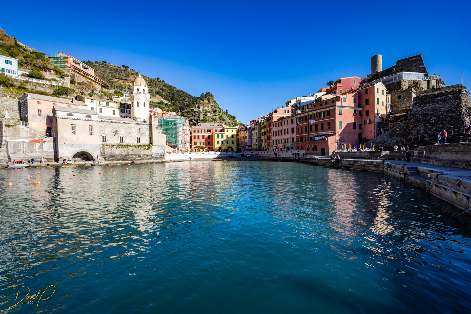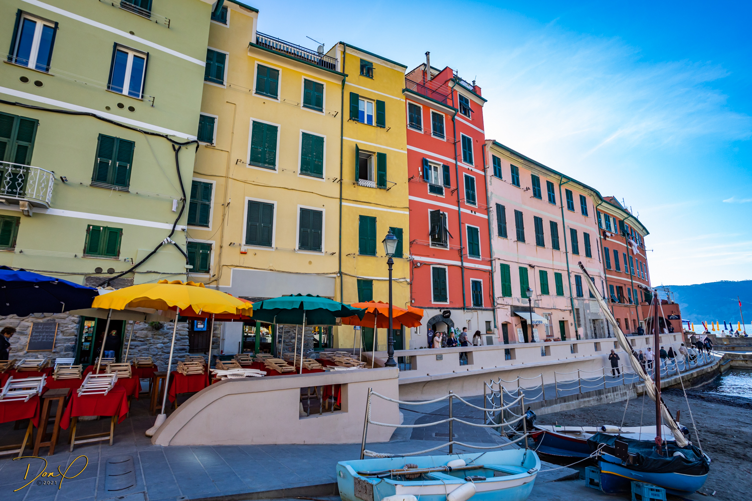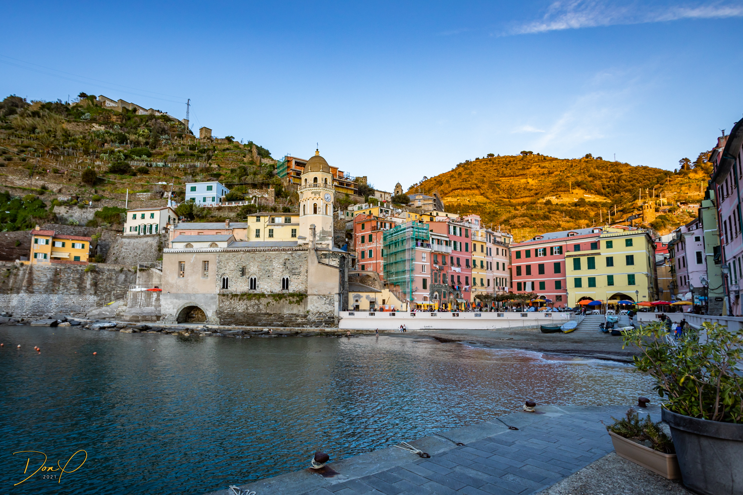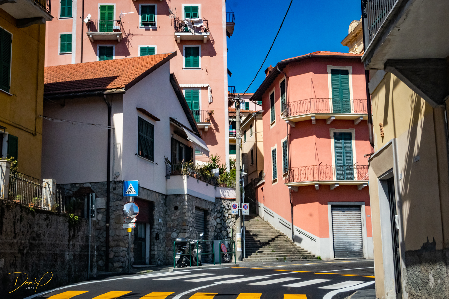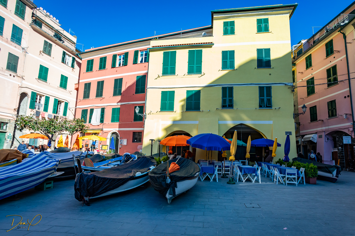 I make my way down and back up to Elee and I take some shots that she has of the other side. Then we work our way out of the Marina and back to the train station. We have the schedule figured out by now and we ride the train to Vernazza next. This is another Village that we are told has good views. We disembark and the trail is clear. Walk downhill. Picturesque buildings all the way! The views are fabulous as we walk down. We take our time to try and help Elee’s knees. I see Tylenol in both of our future evenings!
