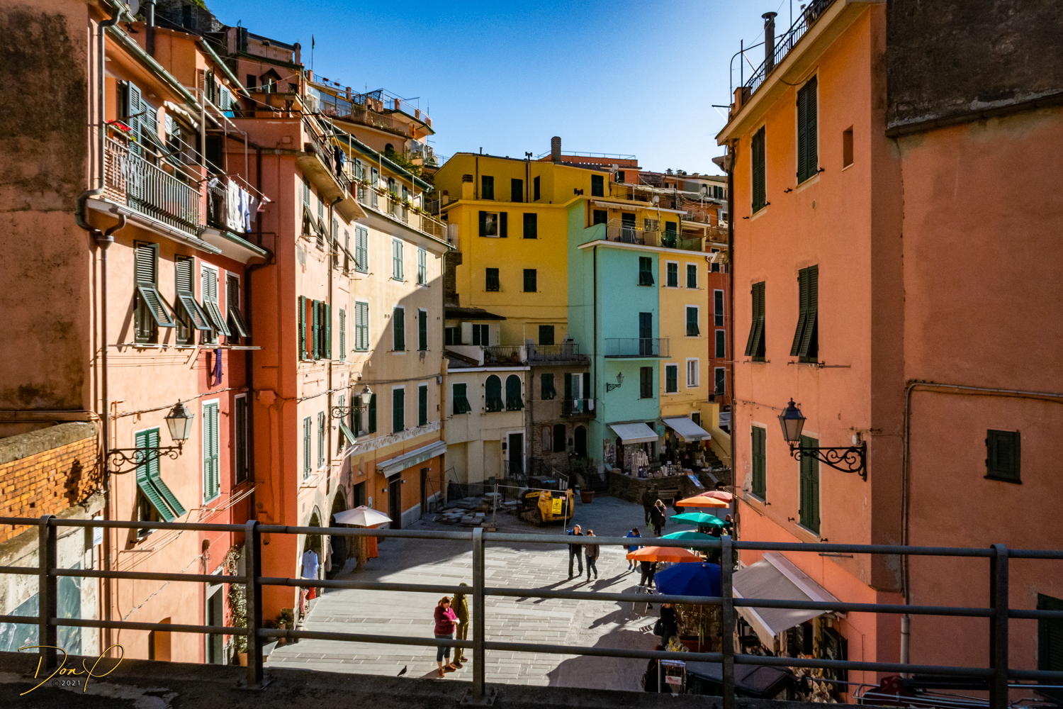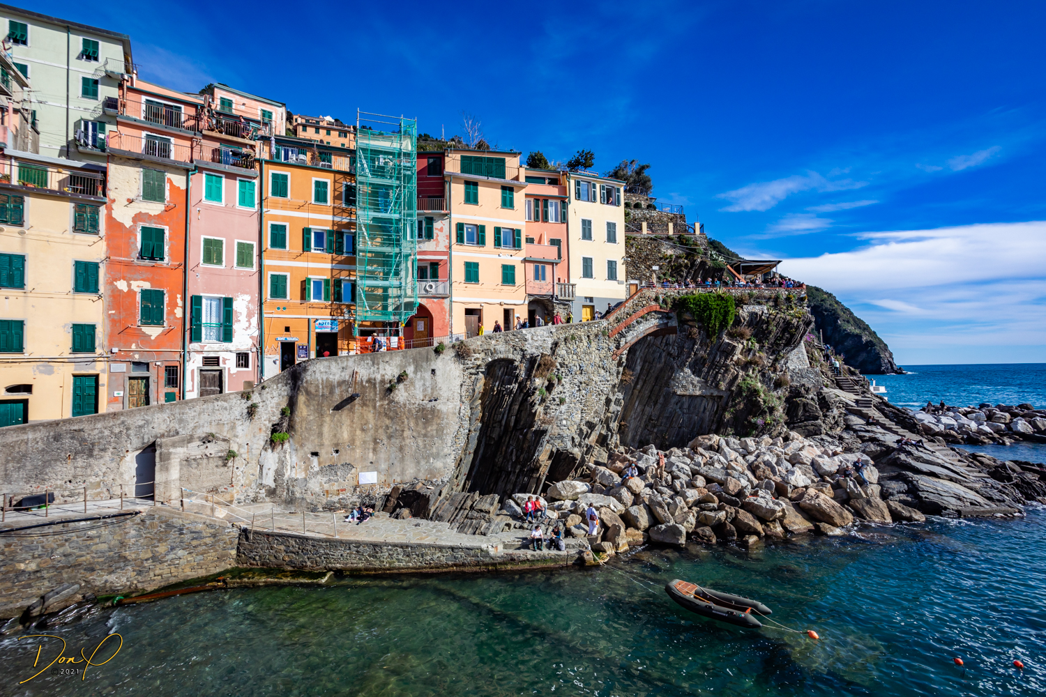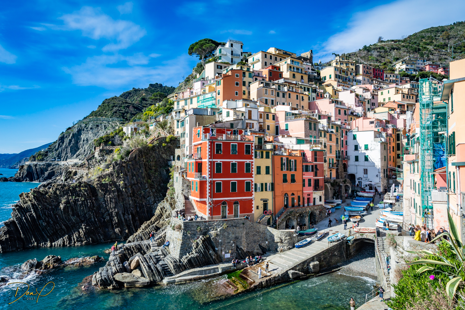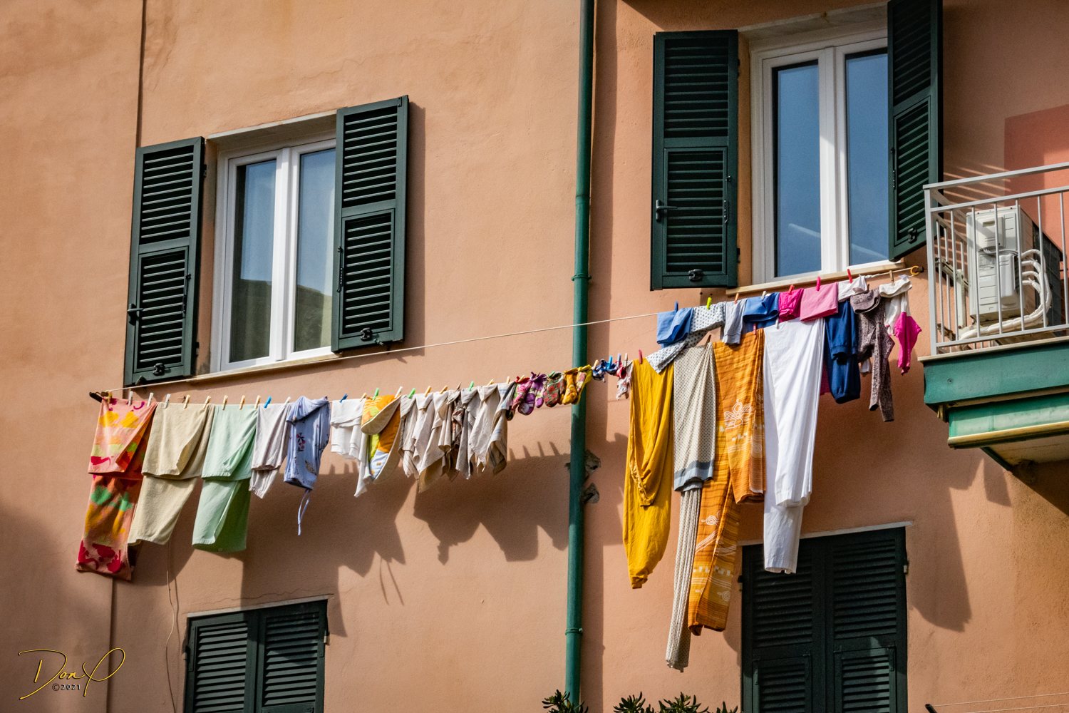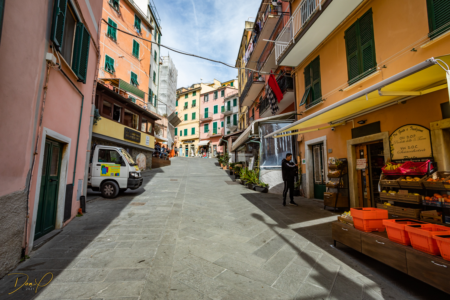 I make my way down and back up to Elee and I take some shots that she has of the other side. Then we work our way out of the Marina and back to the train station. We have the schedule figured out by now and we ride the train to Vernazza next. This is another Village that we are told has good views. We disembark and the trail is clear. Walk downhill. Picturesque buildings all the way! The views are fabulous as we walk down. We take our time to try and help Elee’s knees. I see Tylenol in both of our future evenings!