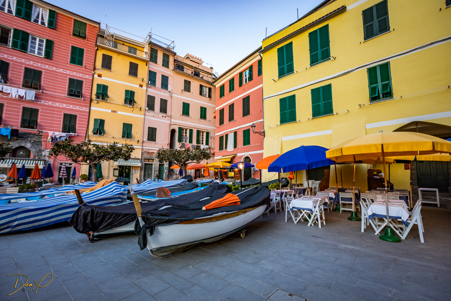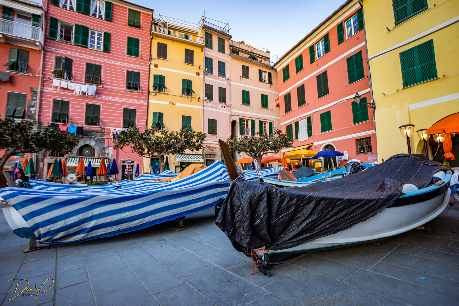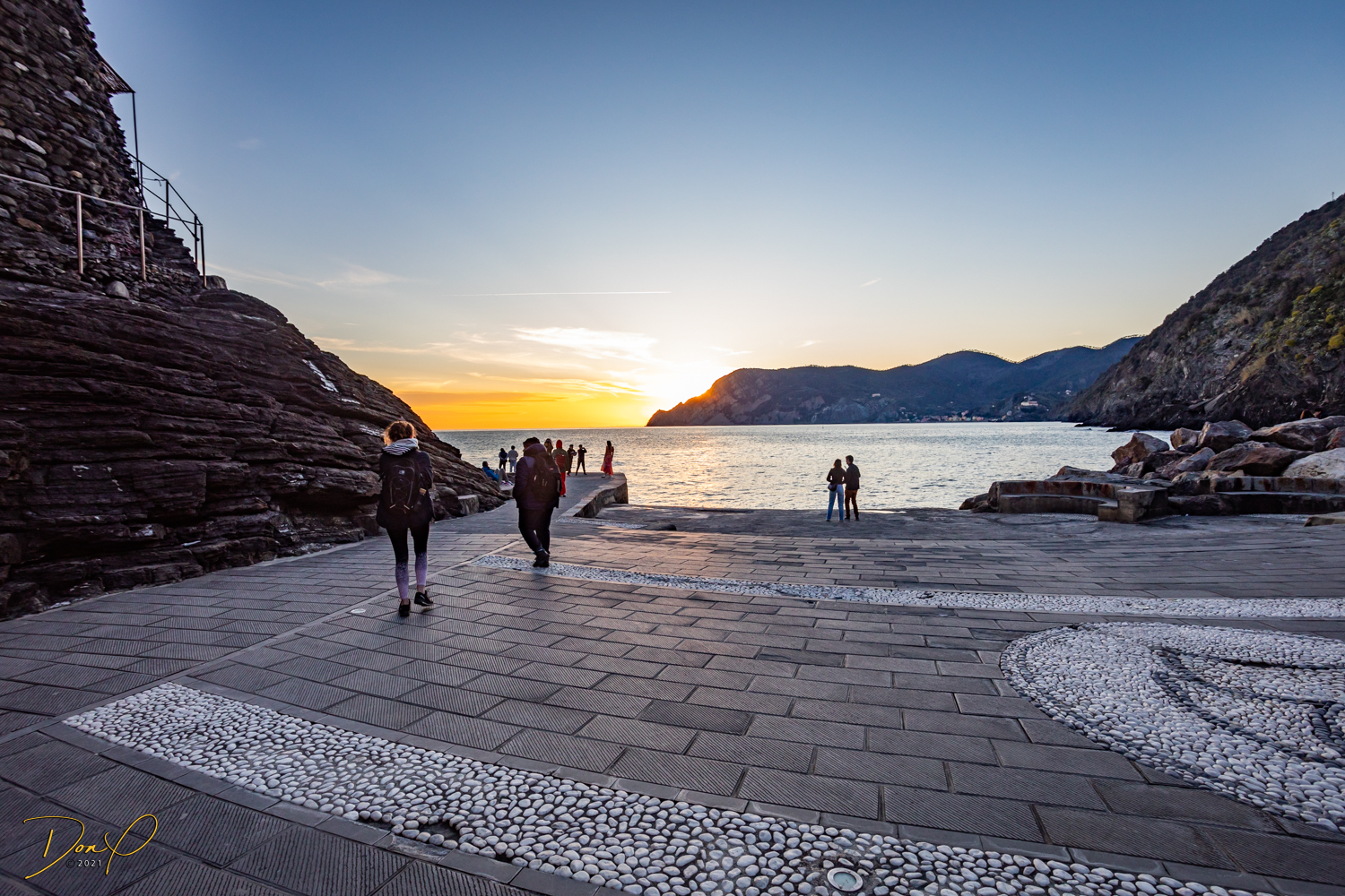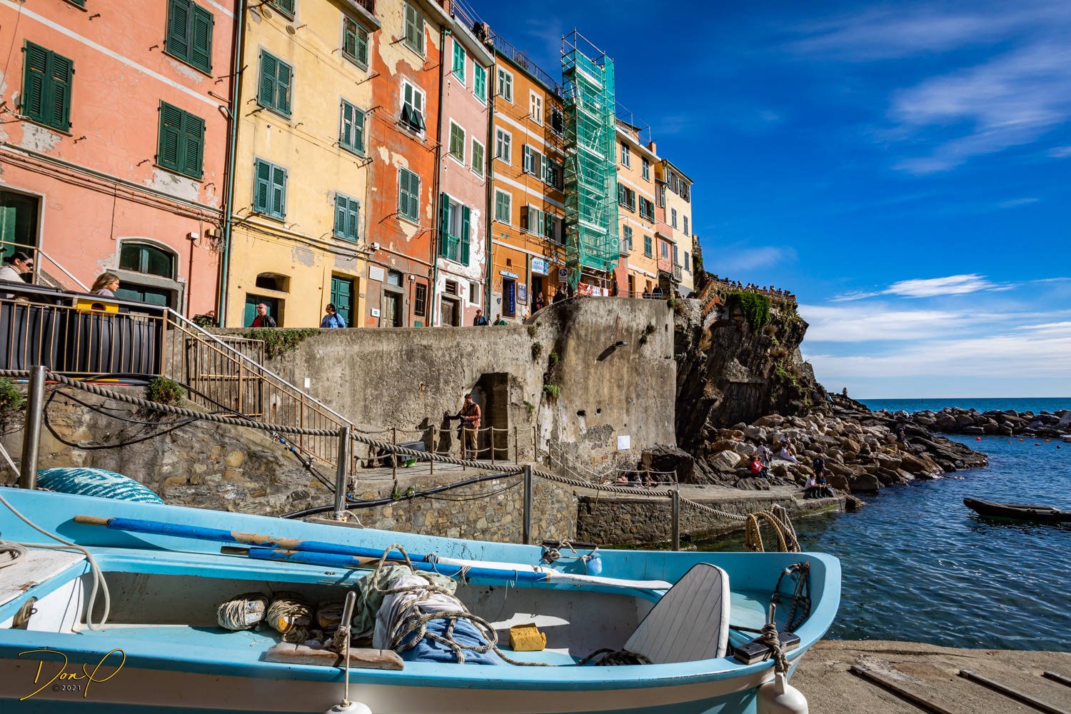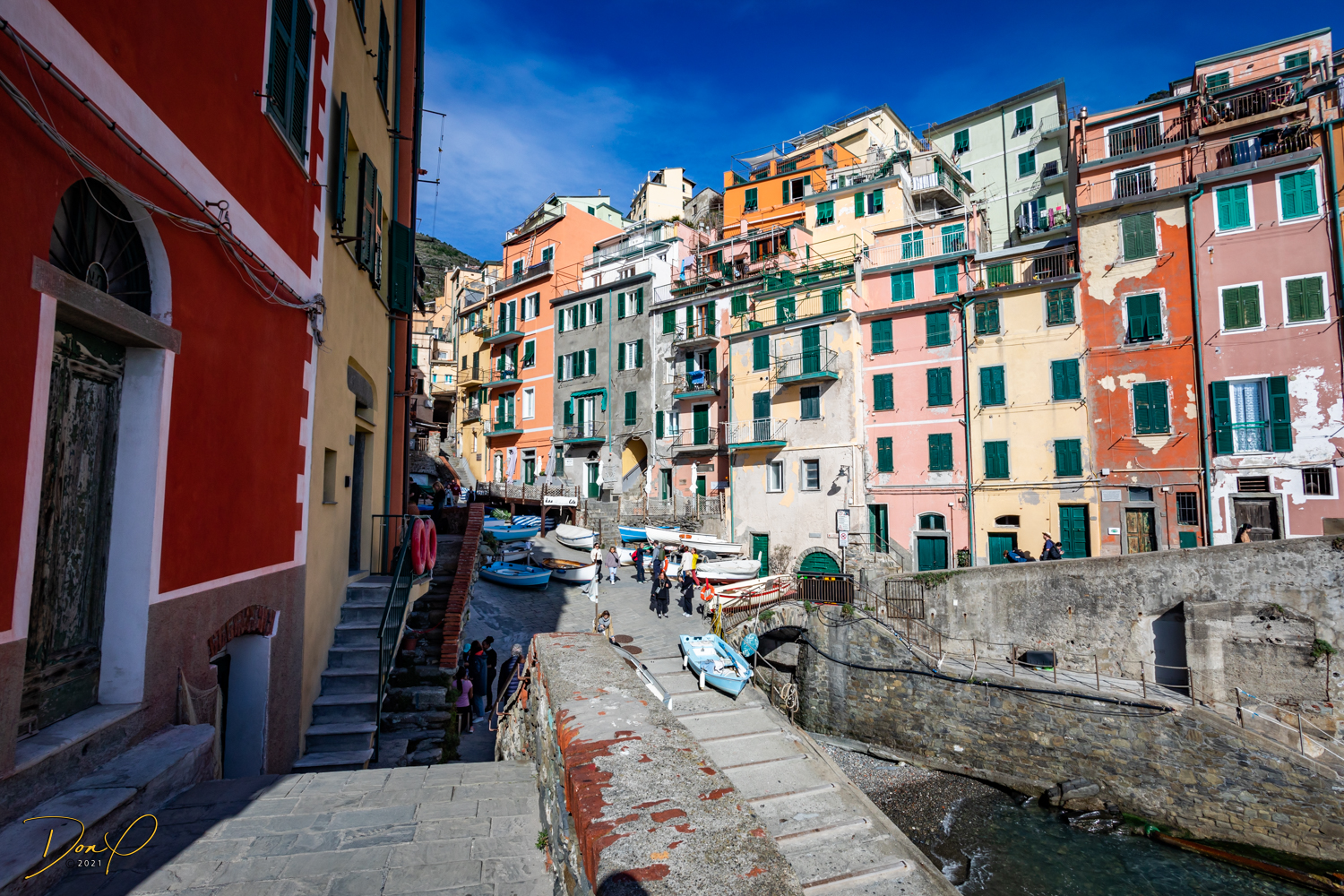 I make my way down and back up to Elee and I take some shots that she has of the other side. Then we work our way out of the Marina and back to the train station. We have the schedule figured out by now and we ride the train to Vernazza next. This is another Village that we are told has good views. We disembark and the trail is clear. Walk downhill. Picturesque buildings all the way! The views are fabulous as we walk down. We take our time to try and help Elee’s knees. I see Tylenol in both of our future evenings!