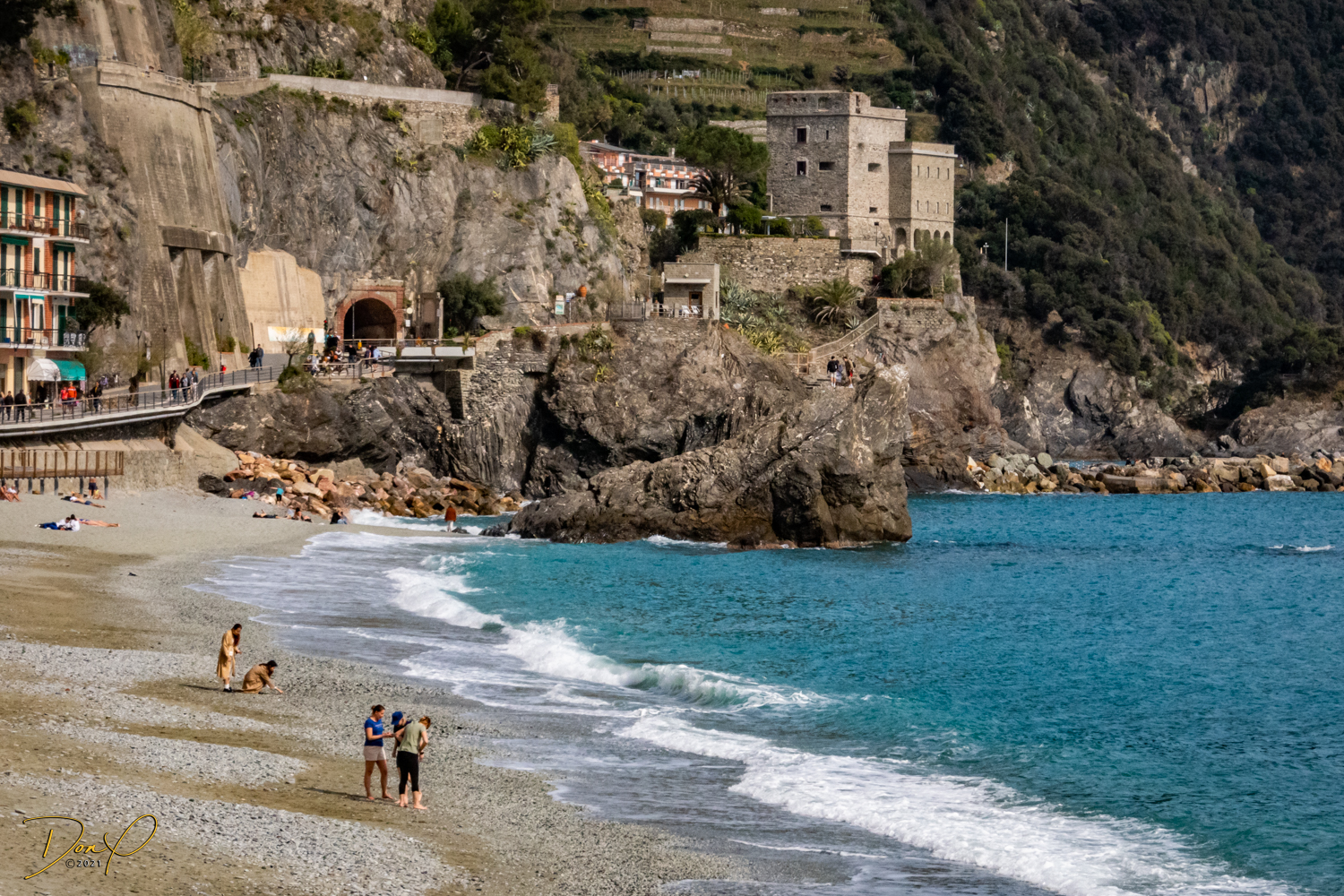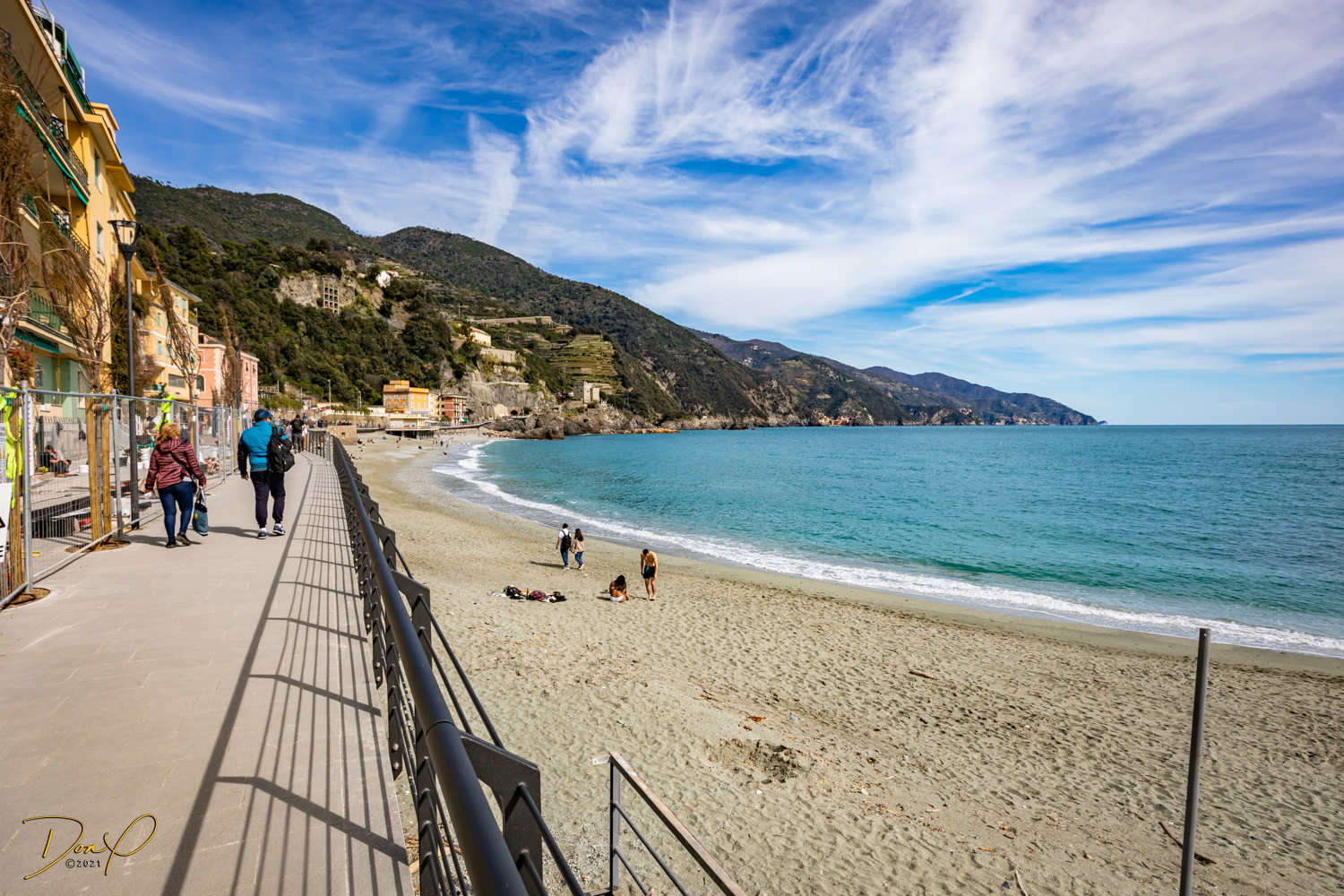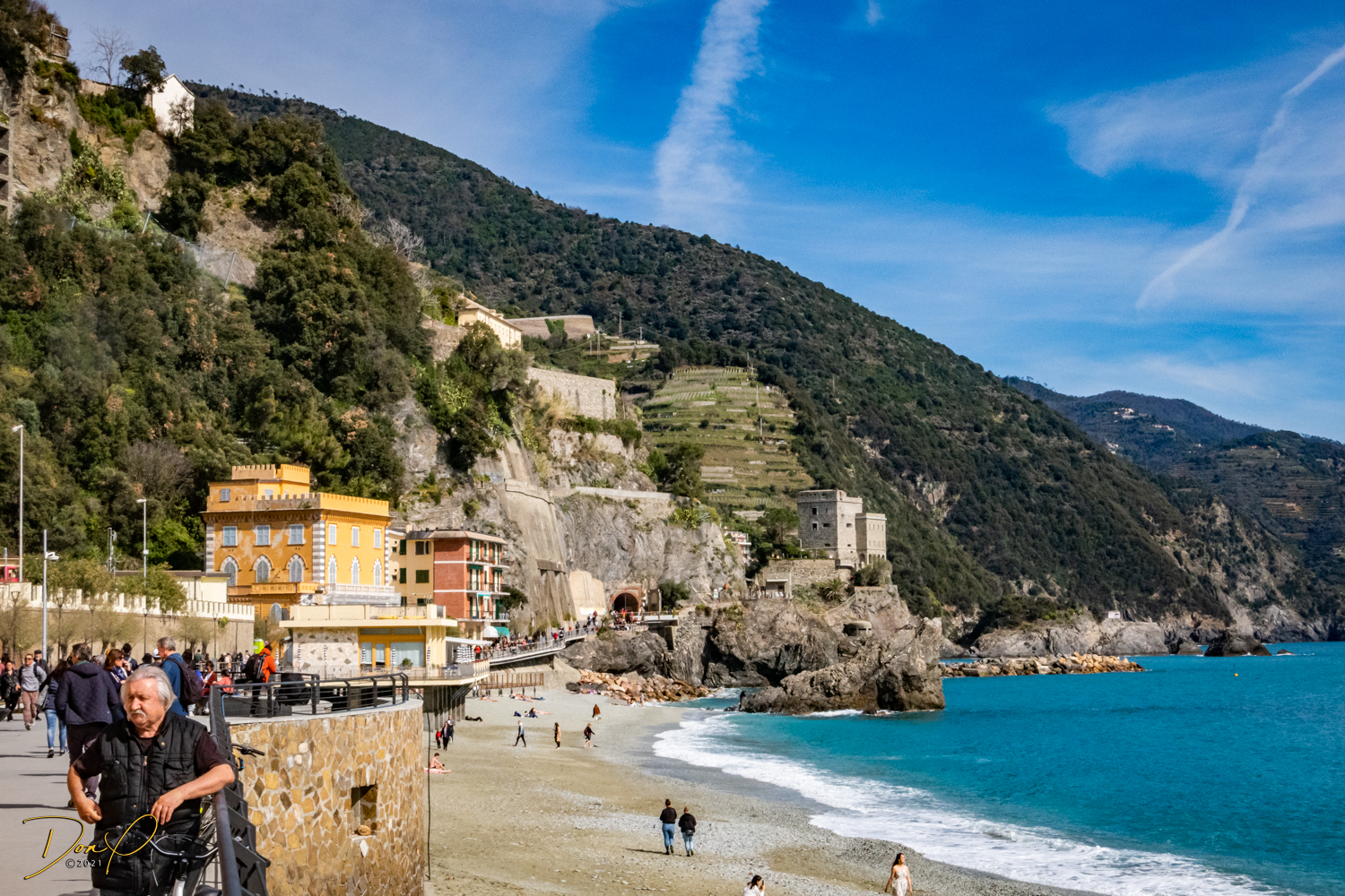 This place is, at first, underwhelming as we decide to ride the train to the furthermost village of 5 and then work our way back, village by village. So we get to the far end in Monterosso and debark the train. We are not impressed as we think we would be. This is least spectacular village but interesting in its own right! It is a beach town and the beaches were photogenic! We met a lovely Brazilian lady who now lives in Dublin (Don’t ask me why, I never got that story) before we ever boarded the train and we chatted while waiting to board. But I digress, this lady meets us on the train and tells us she is intent on swimming at the beach and wants to take photos to show her boyfriend that she went swimming!