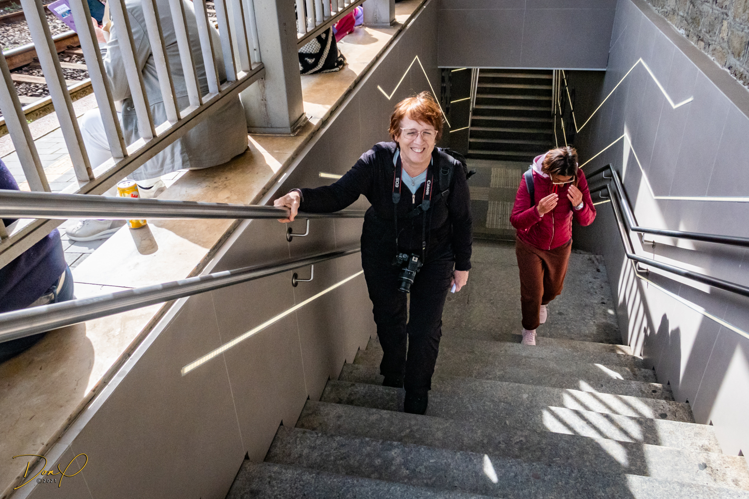 We trudge up the stairs and of course we find the elevator for Elee after we get to the top! We purchase our day tickets for Cinque Terre (pronounced Chen-qua Ter-Ray) and board the train. Over 70% of the ride is in black tunnels so there is nothing to see for the most part. The train stops at all five little cities on the coast that make up Cinque Terre. Now some of you are saying, Chen-qua What? But trust me when I tell you that all of you have seen photos of Cinque Terre. And when you see these photos, you will understand. This area of the Italian coast are some of the most photographed places in the world! And now we will have our own photos of the region!