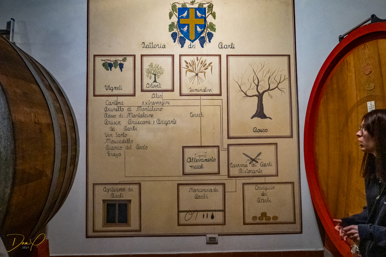 Today we wake, much refreshed from yesterday’s illness scare! What we both thought might be another Covid scare, it turns out we think we had a short bout of food poisoning from some bad ground beef (that we watched being ground just for us!). So we’re back in good shape and we have breakfast and head off in search of adventure! We find Pienza and tour a little bit of the city and end up in Montalcino for a wine tasting and tour that came with our current lodging. Another old winery and we are very amazed at what we see in their cellars. Fattoria dei Barbi!